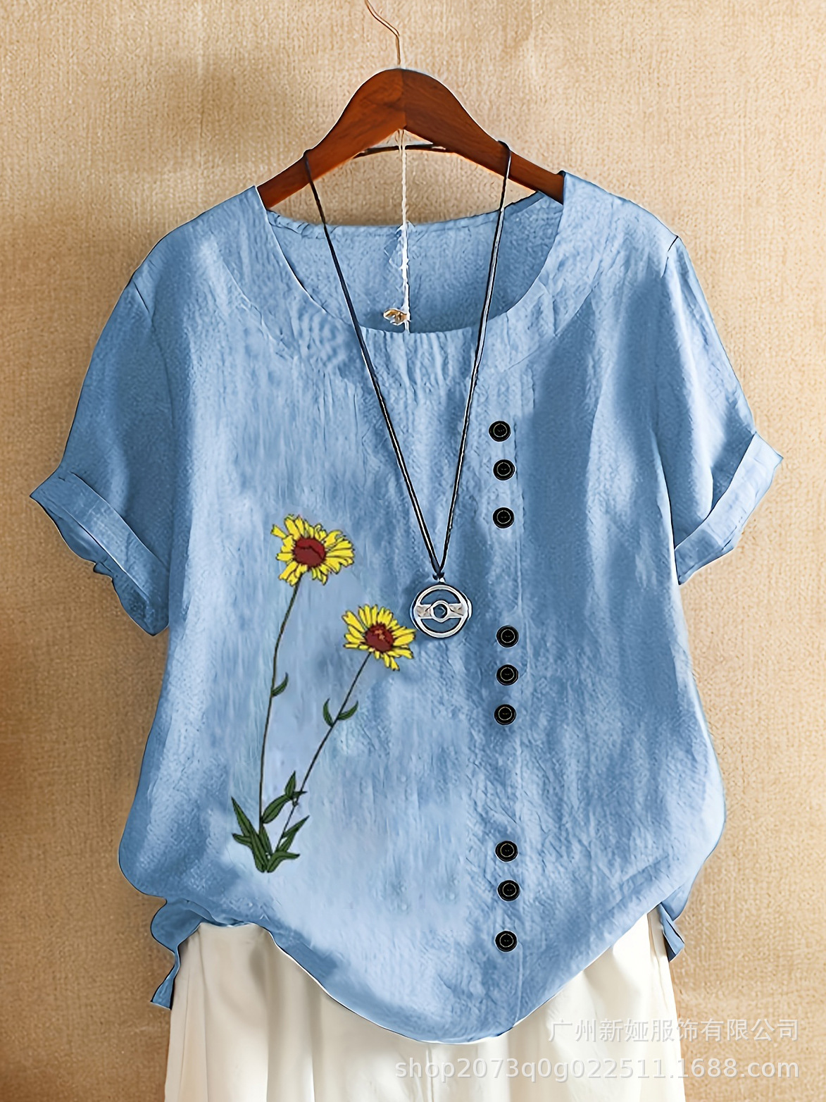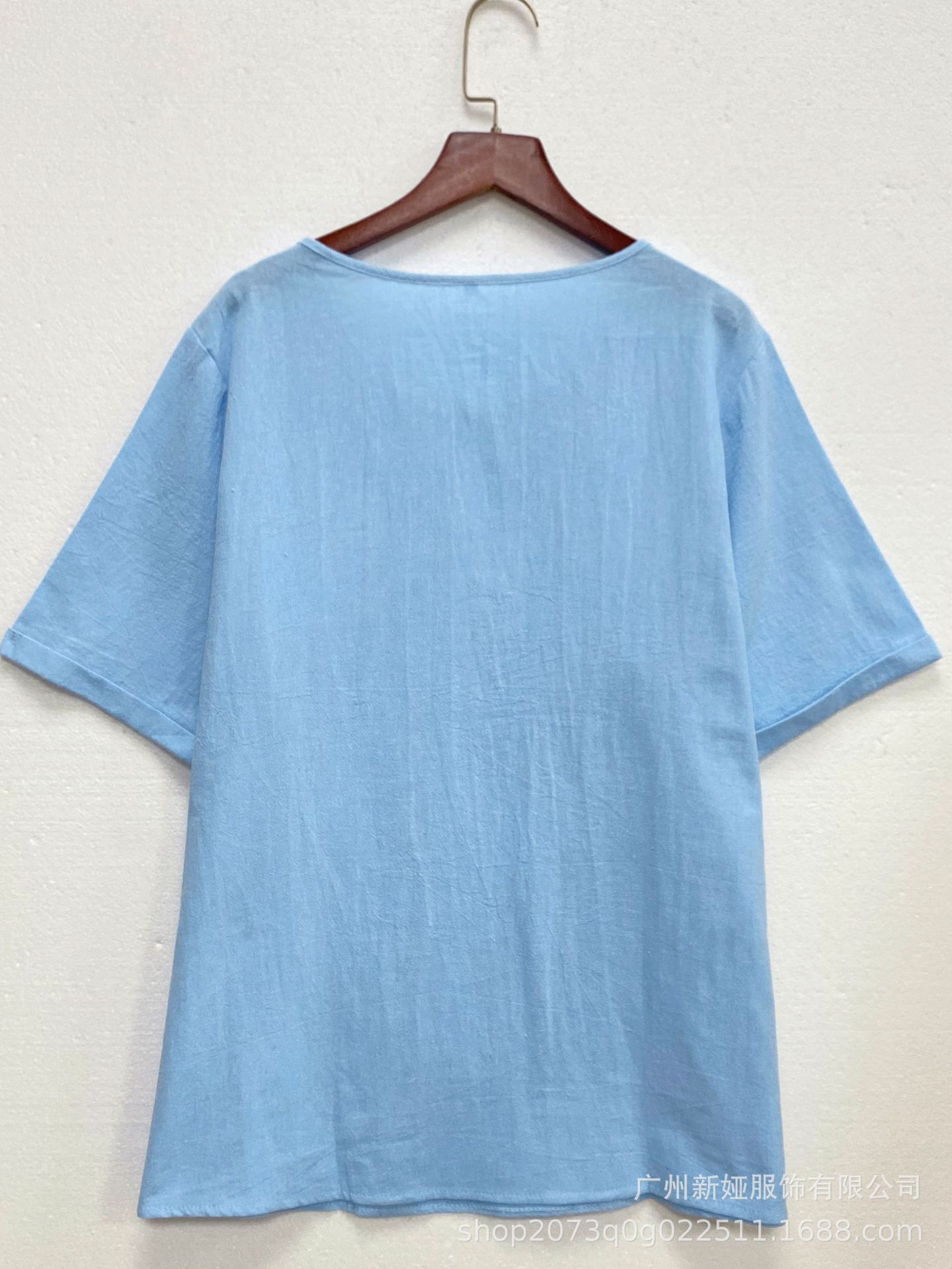 Летняя новая модель большого размера повседневная свободная хлопчатобумажная футболка с короткими рукавами