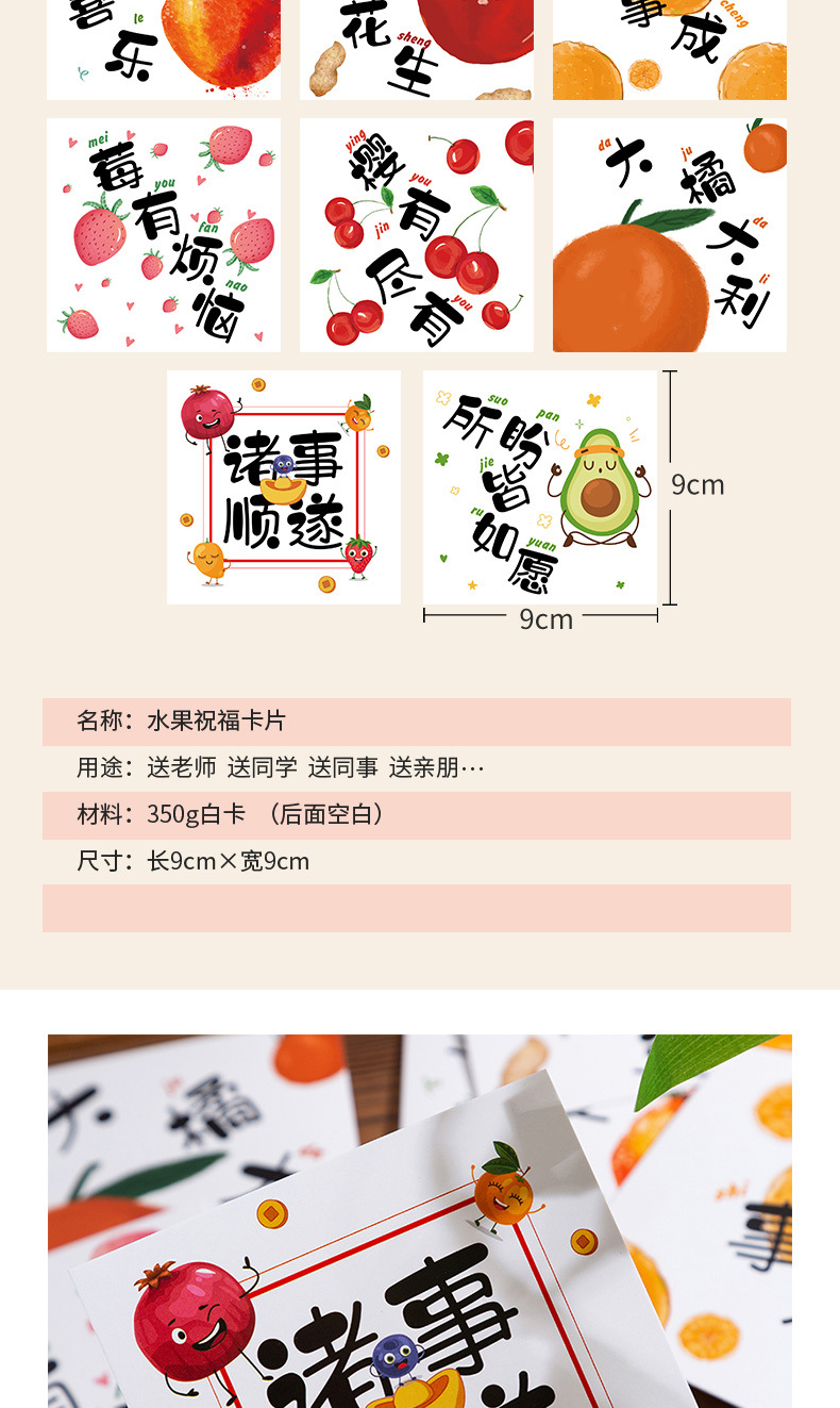 Оптовая продажа фруктовых текстовых благословений открытки Литературный аксессуар diy сообщение маленькая открытка Праздничная поздравительная открытка