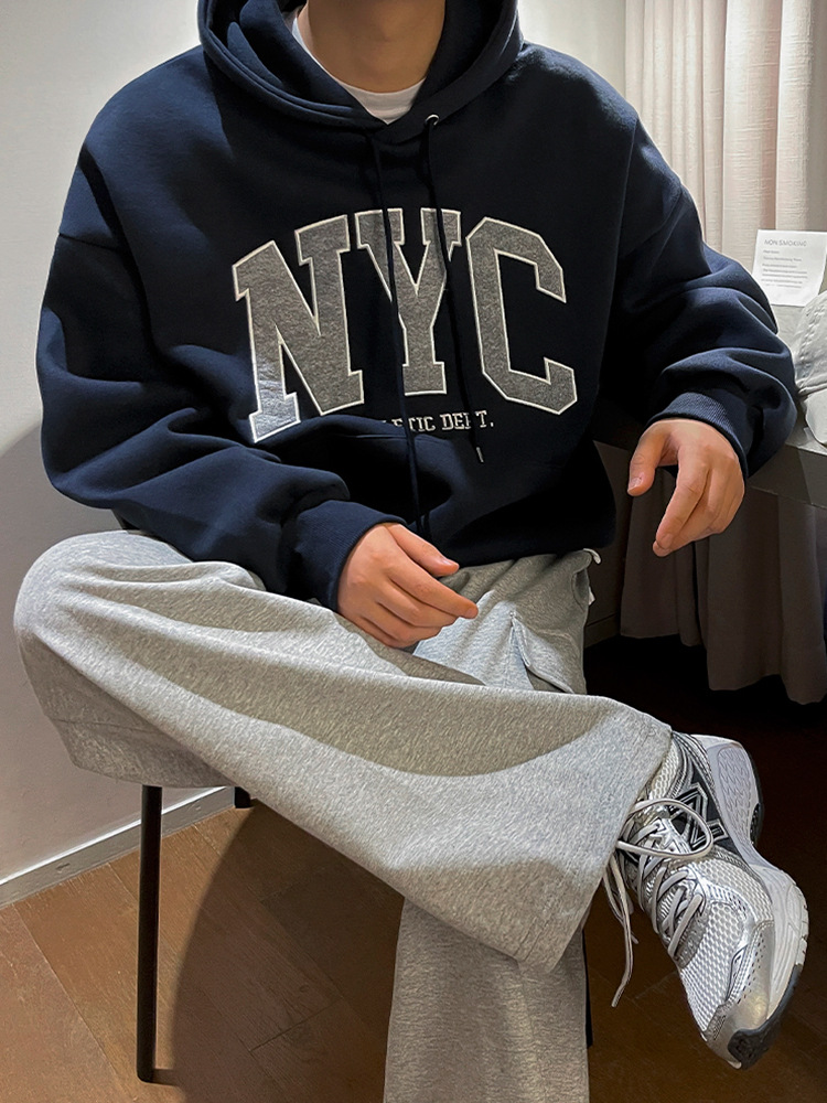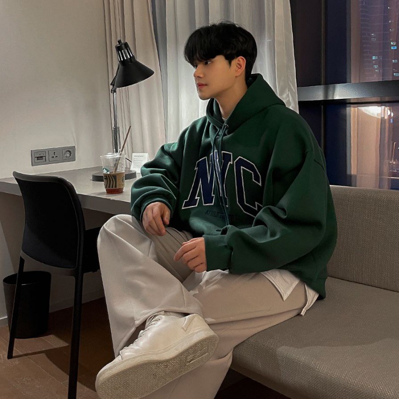 MYQ ретро вышитый свитер с капюшоном мужской осень новый свободный хлопковый топ
