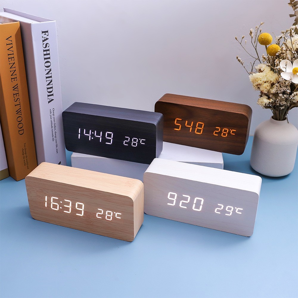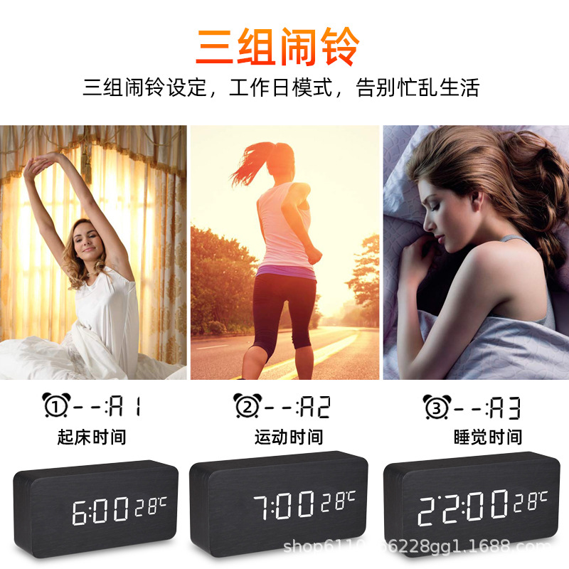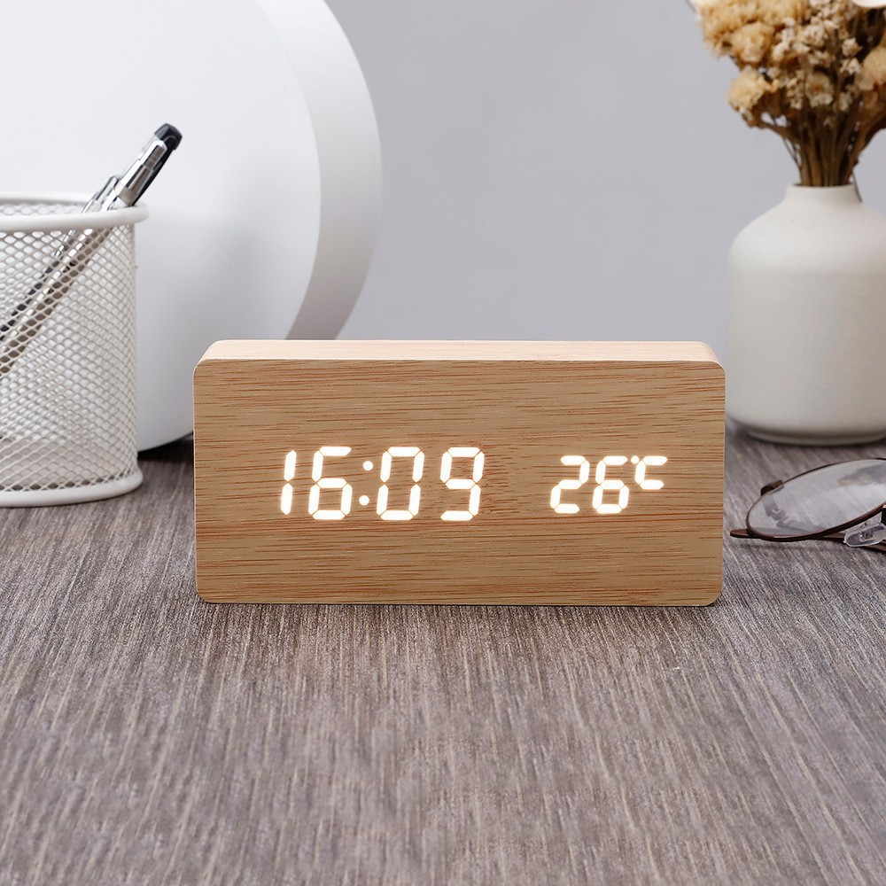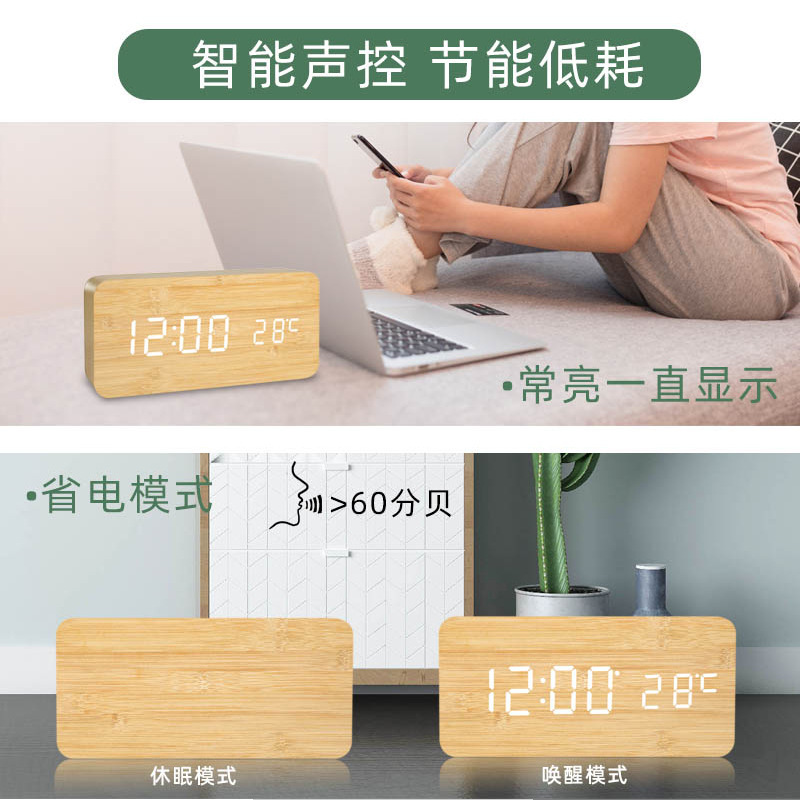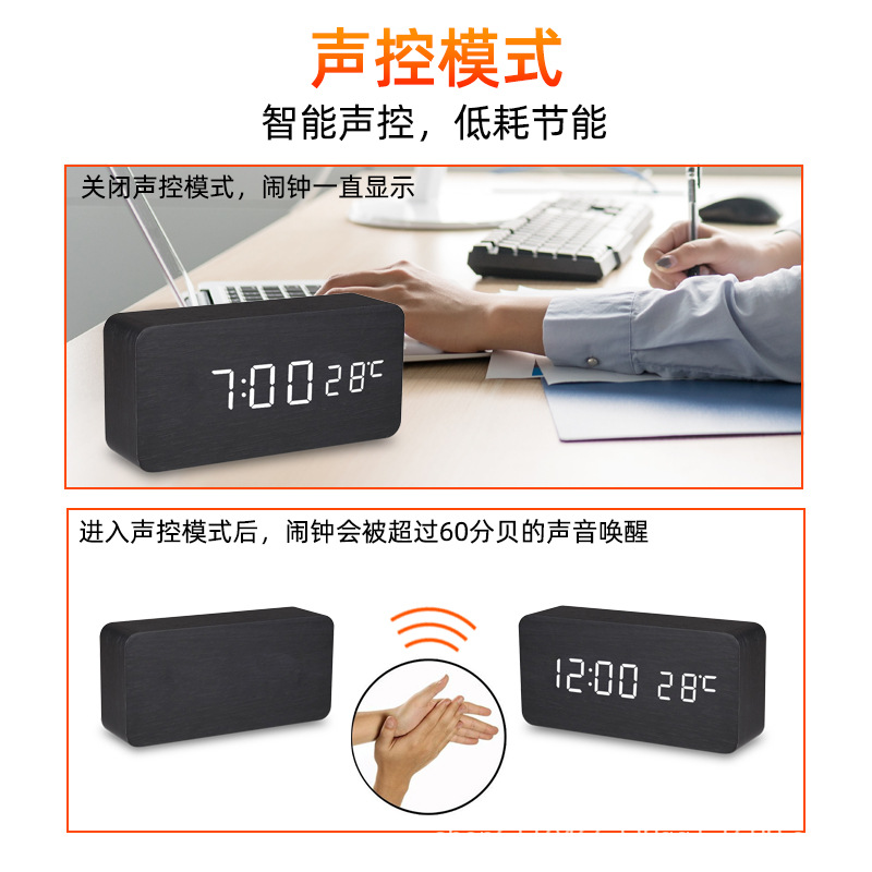 Деревянный светодиодный будильник, цифровые часы, настольные многофункциональные цифровые часы с голосовым управлением, USB, деревянные часы для студентов