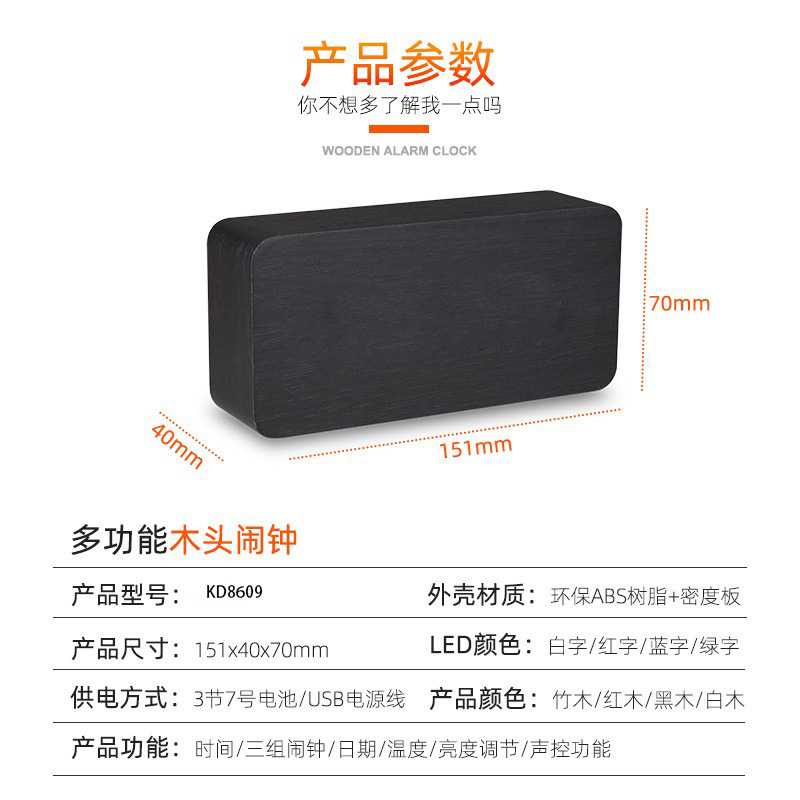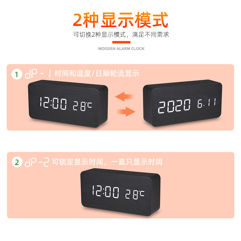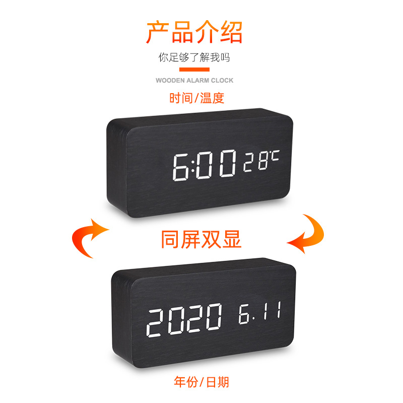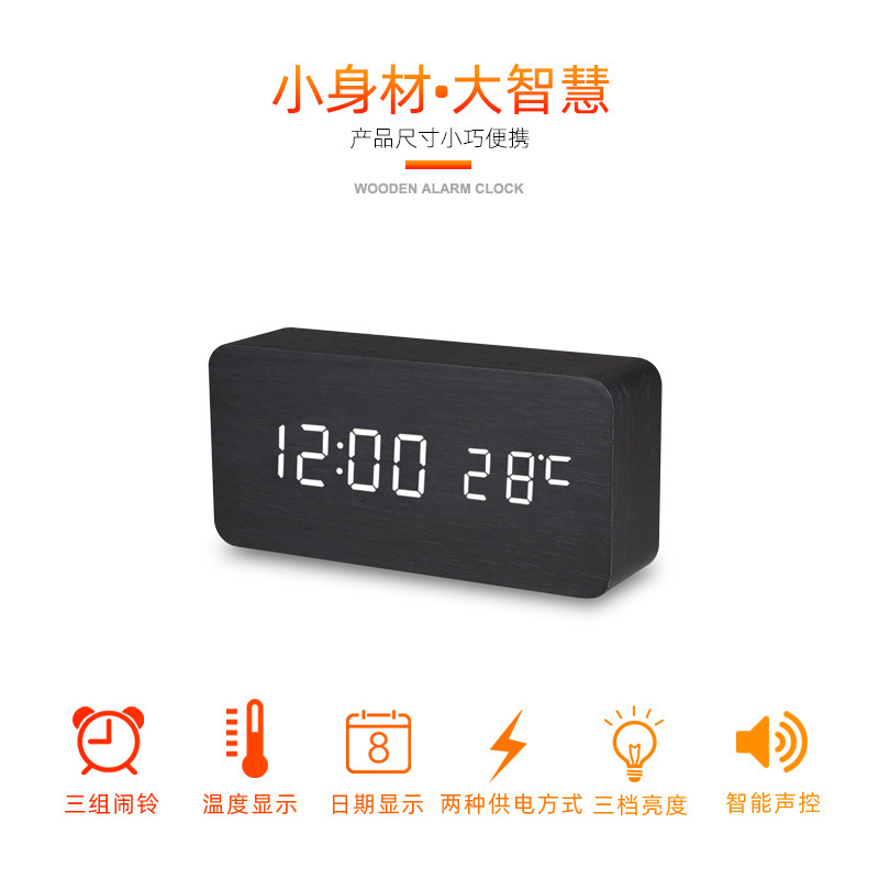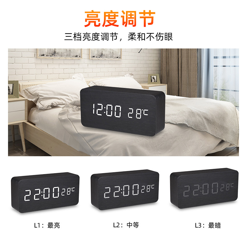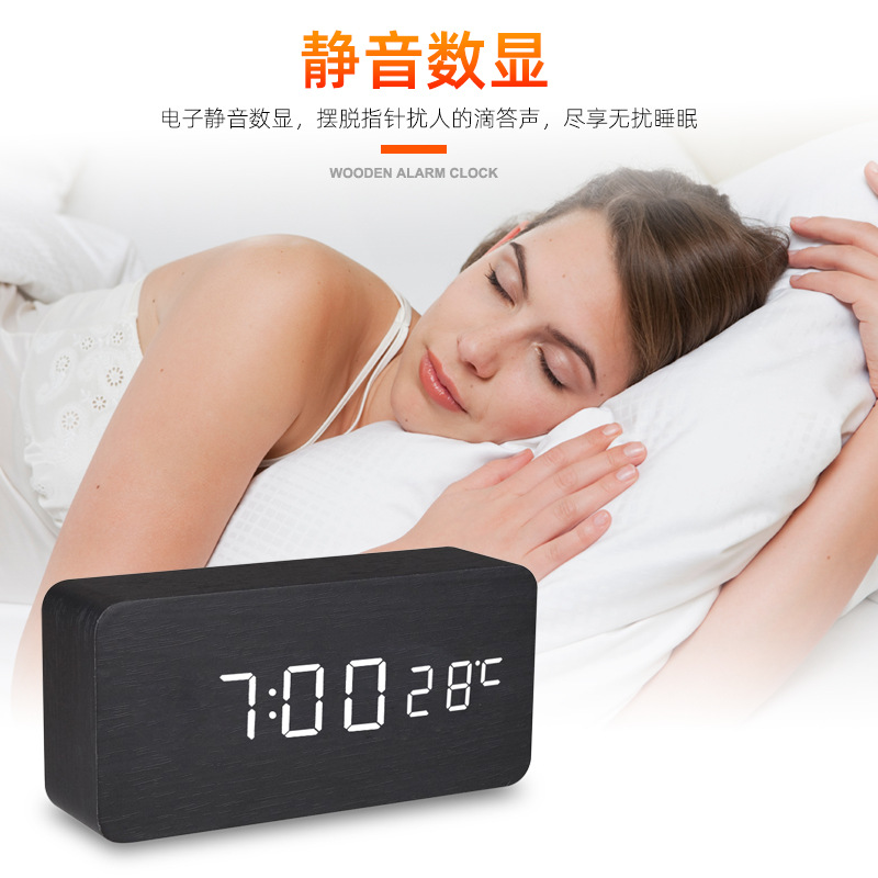 Деревянный светодиодный будильник, цифровые часы, настольные многофункциональные цифровые часы с голосовым управлением, USB, деревянные часы для студентов