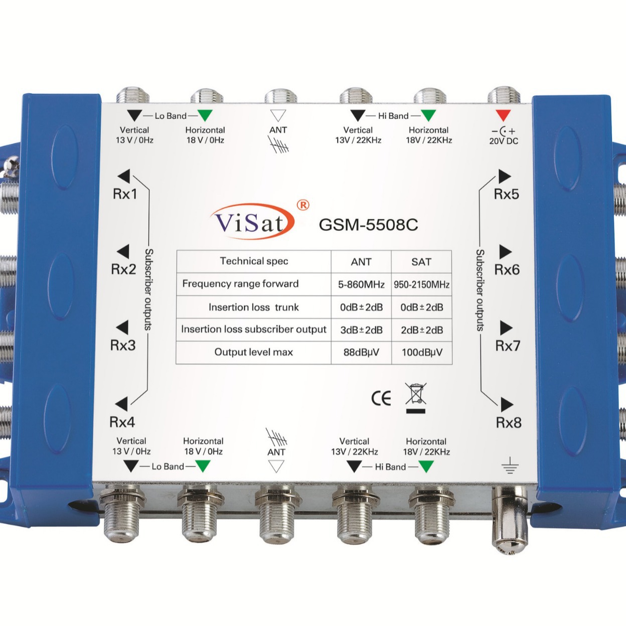 能同时接入四路卫星电视信号,通过13/18V 、0/22KHz切换其中的一路