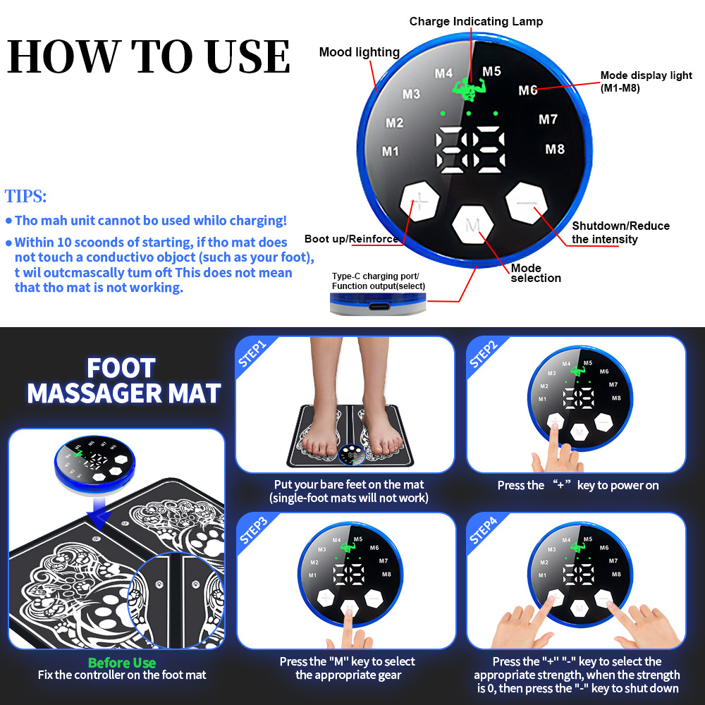 Smart EMS подошва массажер для ног Микроток педикюрная машина для домашнего использования портативный импульсный массаж ножных подушек
