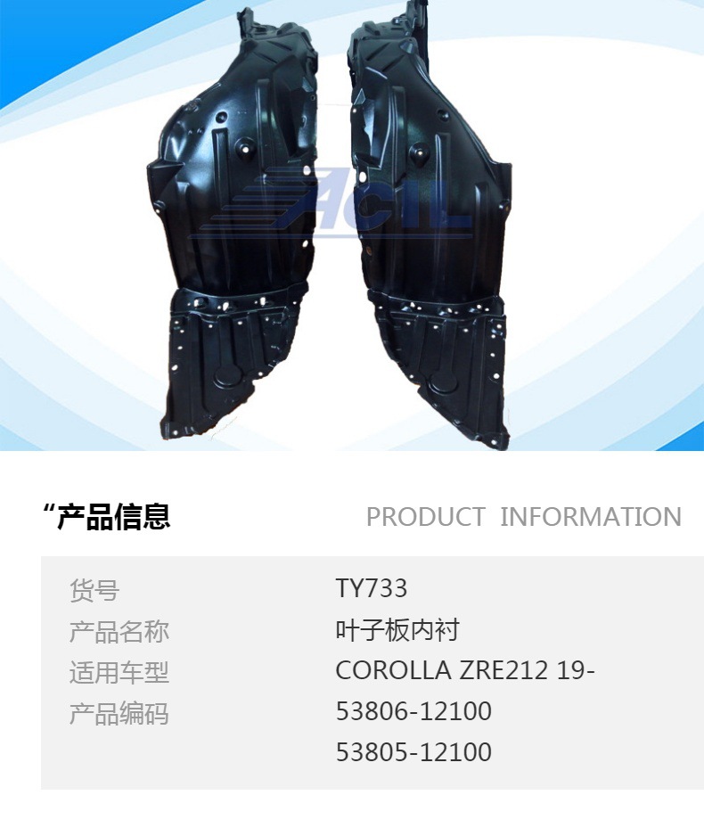 Производитель прямой лист лист лист подкладка крыло для COROLLA 19-Год OE53806-12100