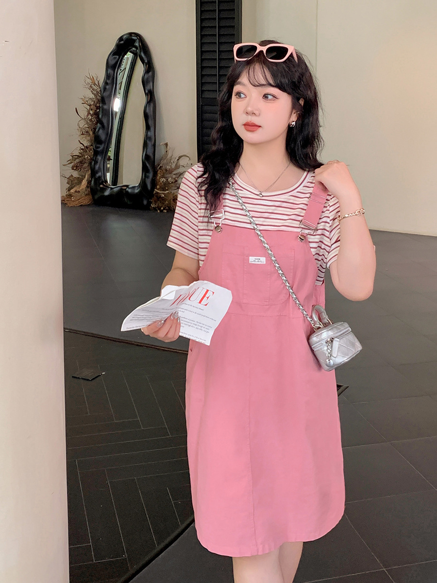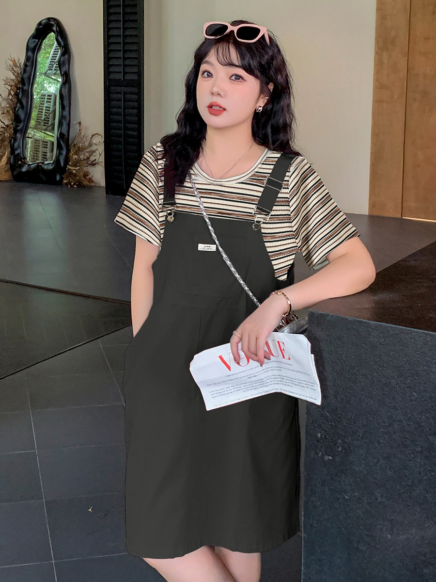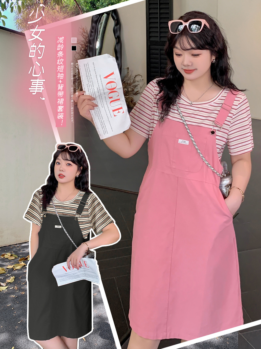 Inno большие размеры, женская полосатая юбка на подтяжках, состоящая из двух частей, летний новый возрастной костюм, закрывающий тело, 281541
