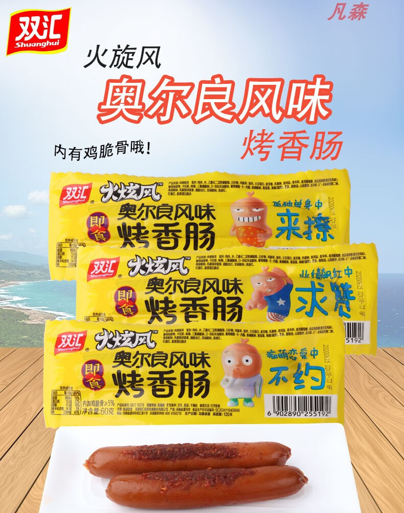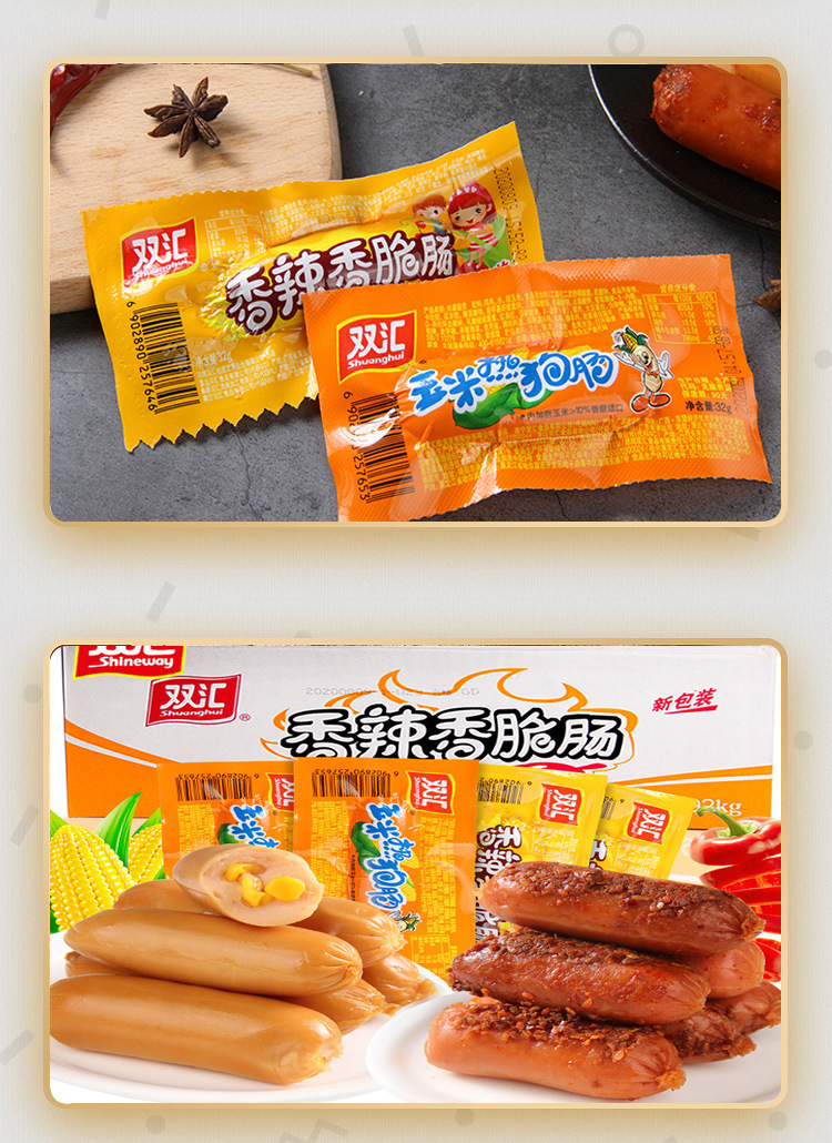 Shuanghui [Пикантная хрустящая колбаса] 32 г (одиночный) [заказывайте 60 штук на всю коробку]; Shuanghui [Кукурузная колбаса для собак] 32 г (одиночный) [заказывайте 60 штук на всю коробку]; Shuanghui [Партнерская колбаса из лапши быстрого приготовления] 35 г (одиночный) [заказывайте 60 штук на всю коробку]; Shuanghui [Runkou Sweet King] 38 г (одиночный) [взять 60 штук за всю коробку]; Shuanghui [Тайваньская колбаса на гриле] 38 г (одиночная) [заказывайте 60 штук на всю коробку]; Shuanghui [Куриная колбаса] 58 г (одиночная) [взять 50 штук за всю коробку]; Shuanghui [Колбаса на гриле в орлеанском стиле] 60 г (одиночно) [заказывайте 50 штук за всю коробку]; Shuanghui [Пикантная хрустящая колбаса] 60 г (один шт.) [заказывайте 40 штук на всю коробку]; Shuanghui Qqu'er [Колбаса со вкусом тмина] 70 г (одиночная) [заказывайте 40 штук на всю коробку]; Shuanghui Qqu'er [Колбаса со вкусом кукурузы, 70 г (одна штука) [заказывайте 40 штук для всей коробки]; Shuanghui Qqu'er [Колбаса с грибным вкусом] 70 г (одиночный) [заказывайте 40 штук на всю коробку]; Shuanghui Qqu'er [Пикантная колбаса] 70 г (одиночный) [заказывайте 40 штук на всю коробку]; Партнер для лапши быстрого приготовления Shuanghui [70 г] (одиночный) [заказывайте 50 штук на всю коробку]; Shuanghui Run Sweet King [75 г] (одиночный) [возьмите 40 штук за всю коробку]; Shuanghui Run Sweet King [90 г] (одиночный) [возьмите 40 штук за всю коробку]