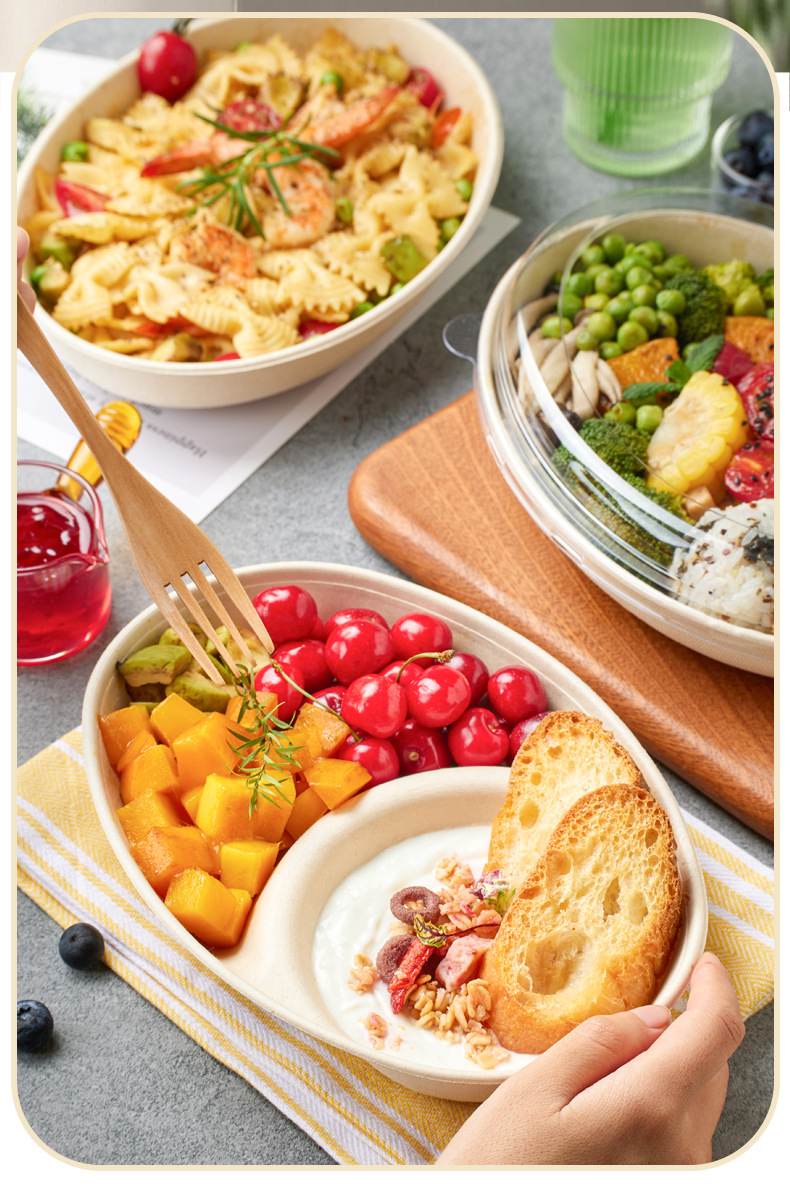 Легкая пищевая коробка для похудения одноразовая овальная коробка для салатников с крышкой