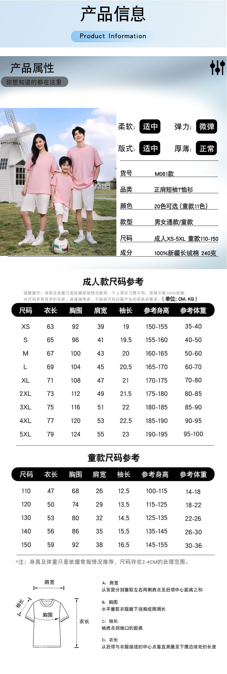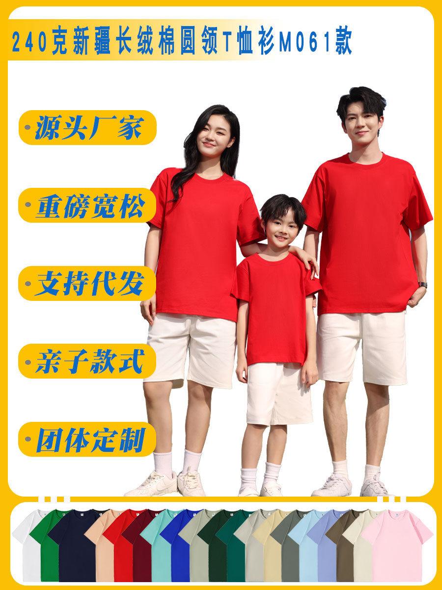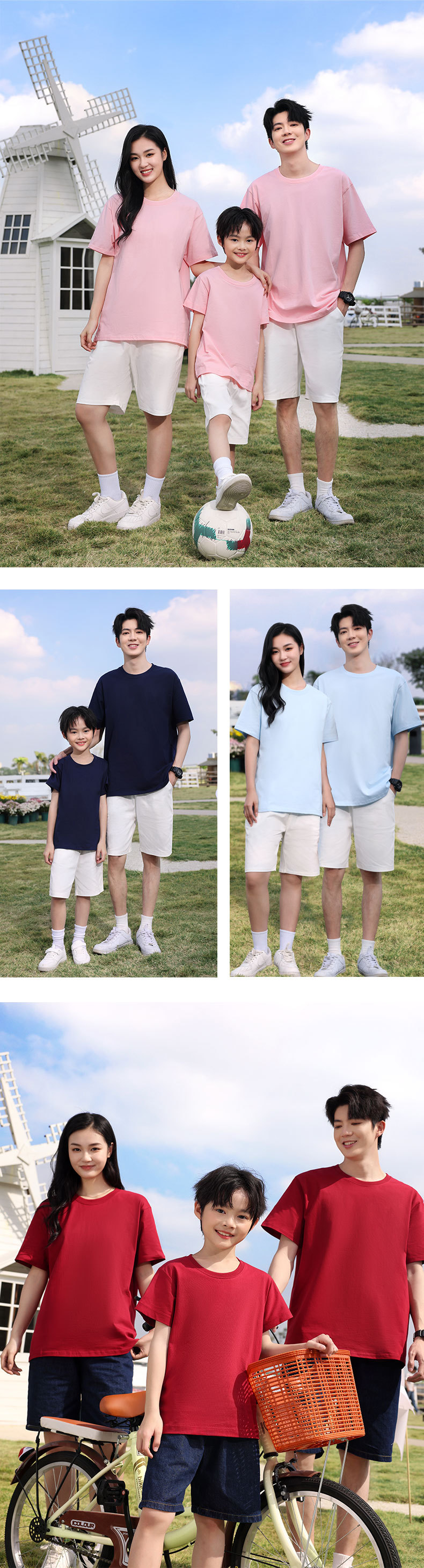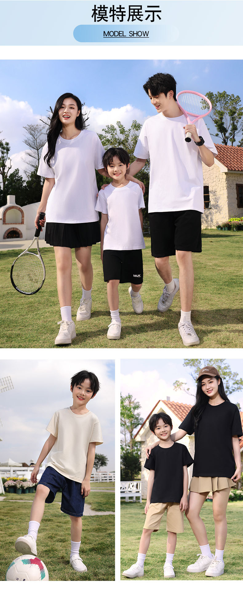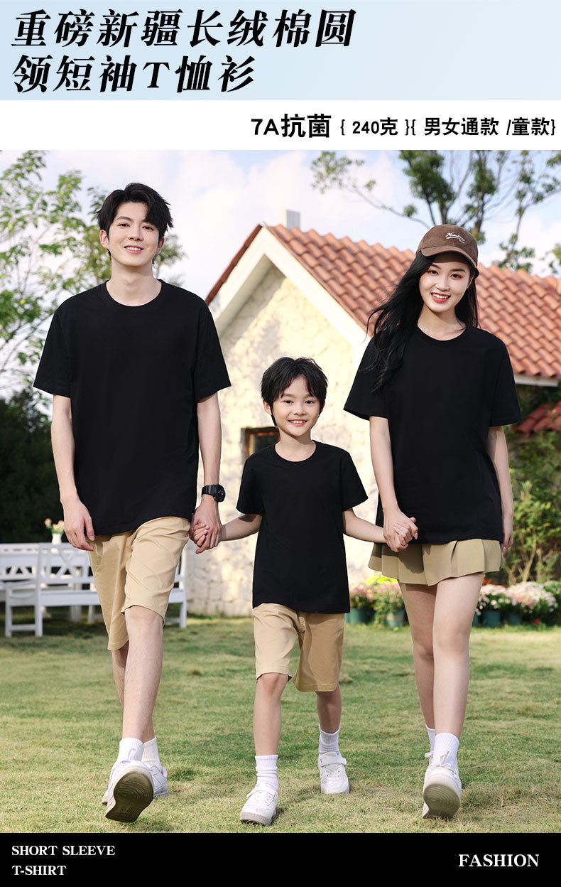 240 г тяжелый 7А антибактериальный Синьцзян длинный бархатный хлопок с круглым вырезом с короткими рукавами футболка для родителей и детей