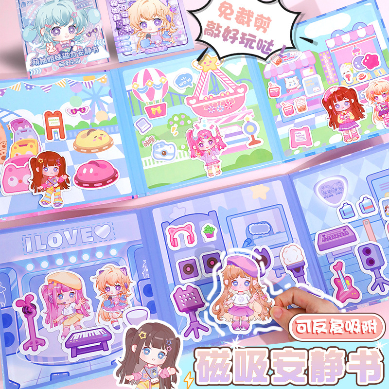 Мэн грейпфрут сестры магнетизм тихая книга девушка DIY одеваются магнитные наклейки детские развивающие игрушки ручной резки