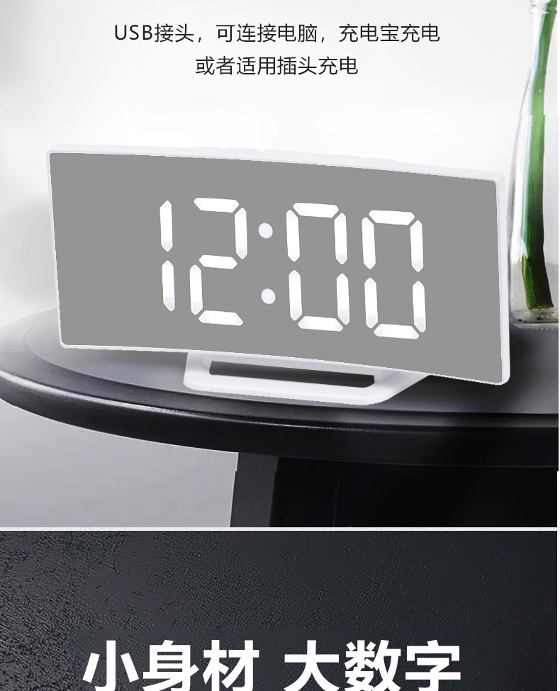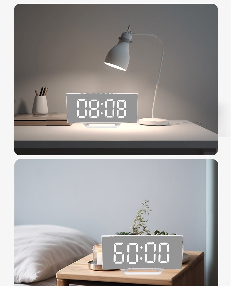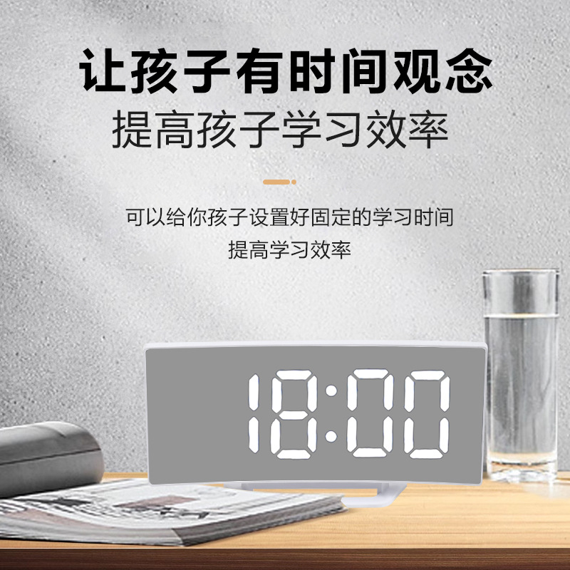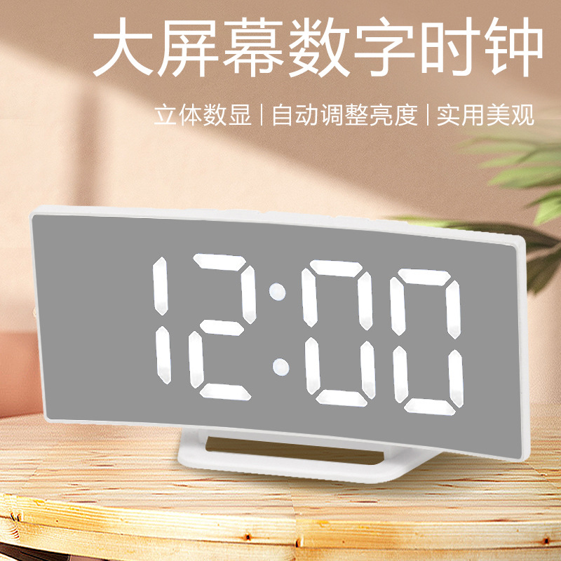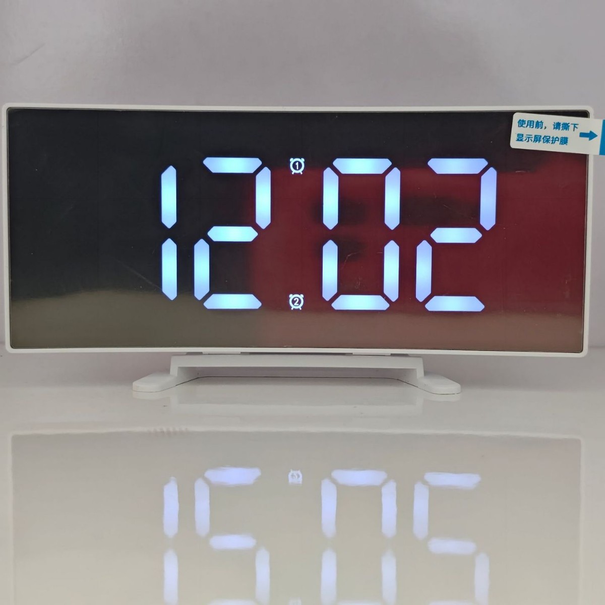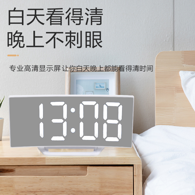 Электронные часы с изогнутой поверхностью, будильник для студентов, изогнутое светодиодное цифровое зеркало, защита для глаз, многофункциональные цифровые часы
