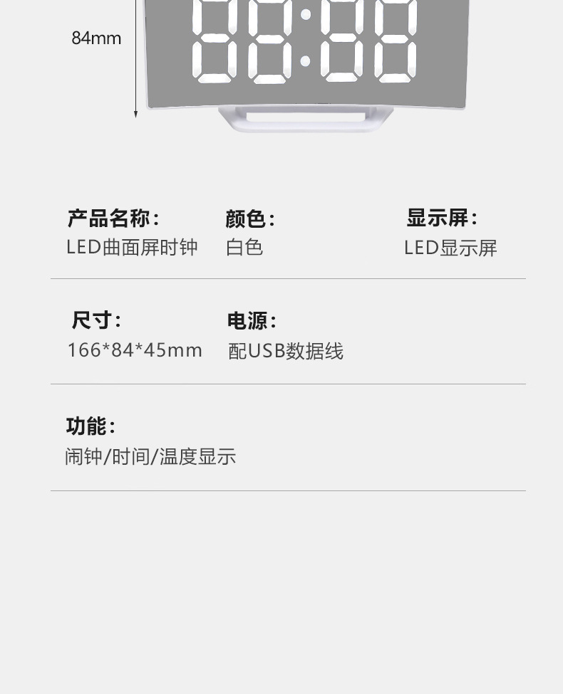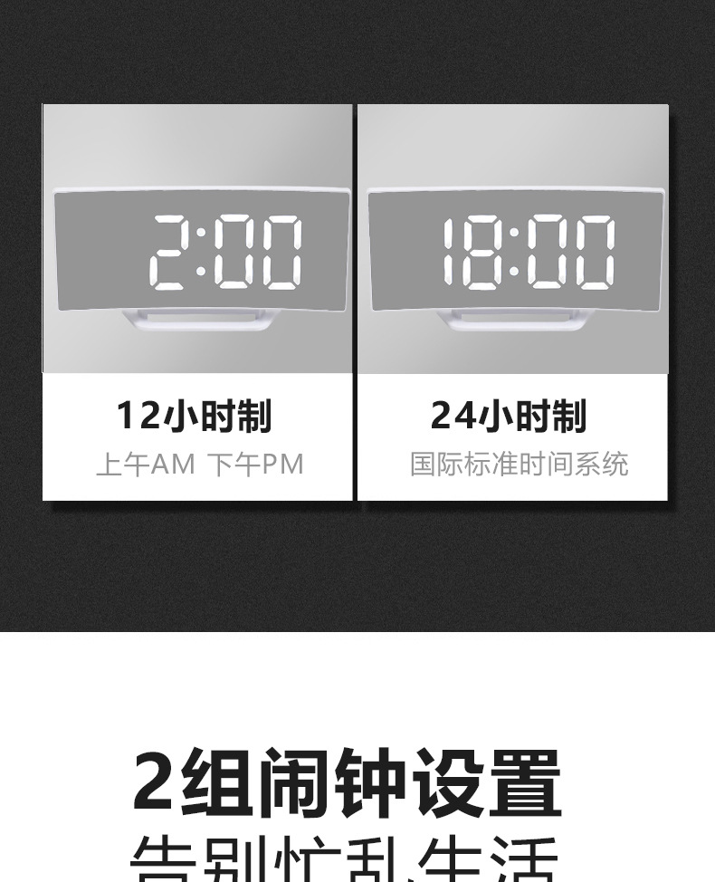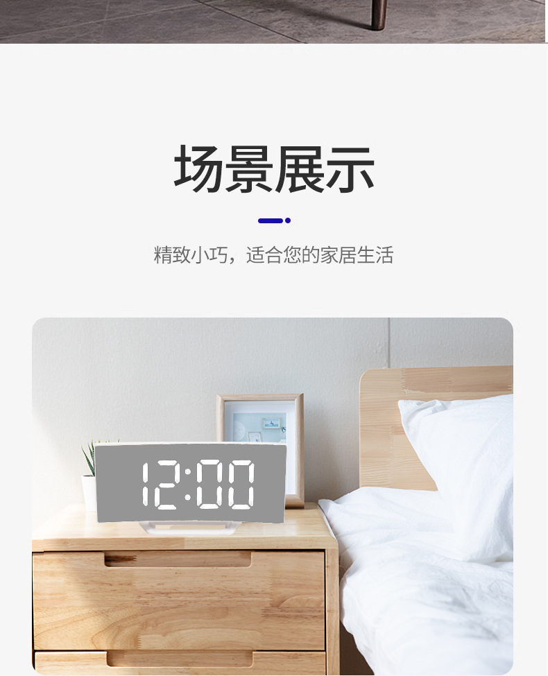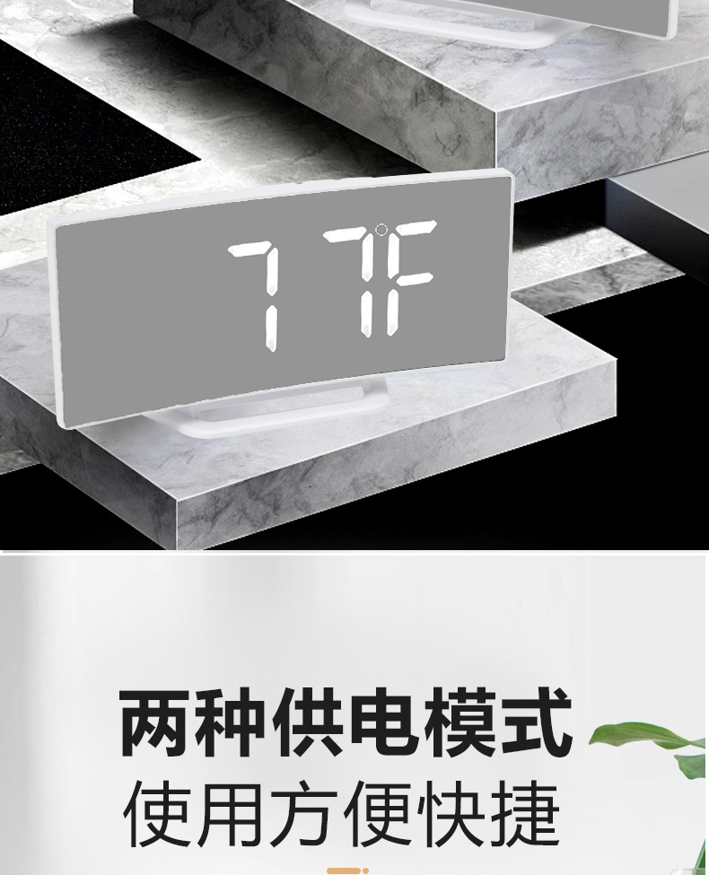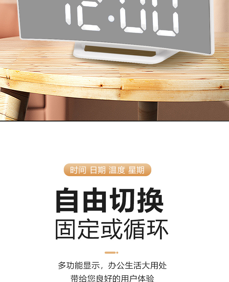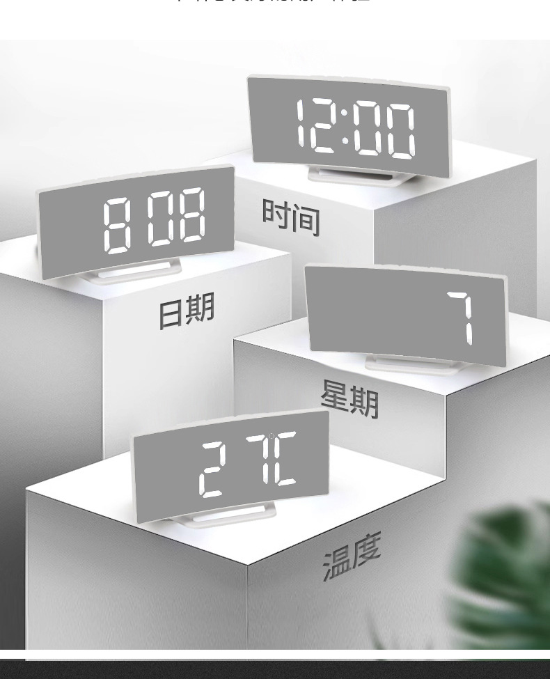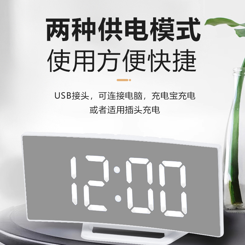 Электронные часы с изогнутой поверхностью, будильник для студентов, изогнутое светодиодное цифровое зеркало, защита для глаз, многофункциональные цифровые часы