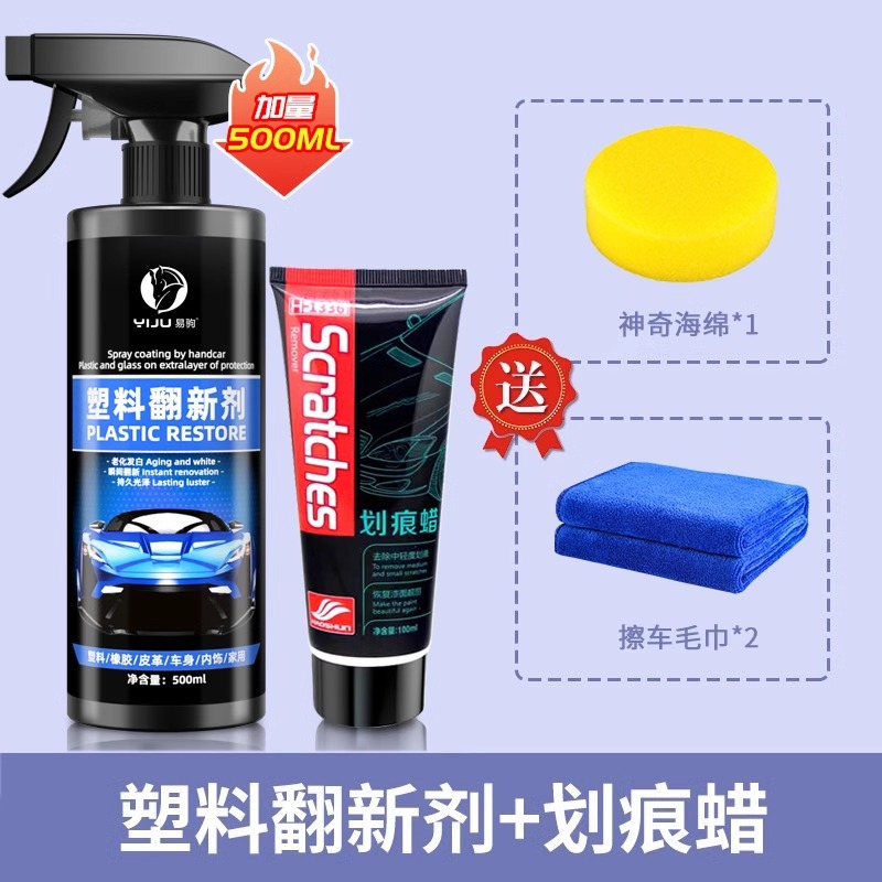 Бутылка пластикового ремонта.; Одна бутылка пластикового ремонта + губчатое полотенце.; Две бутылки пластикового ремонта + губчатое полотенце.; Ремонт пластика + средство для чистки салона + полотенце-губка; Средство для ремонта пластика + воск для царапин на автомобильной краске + полотенце-губка