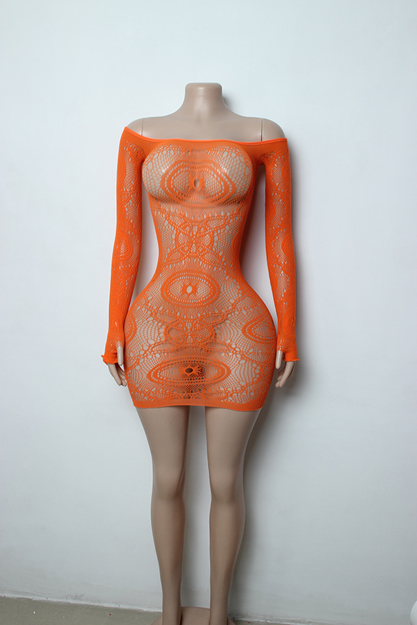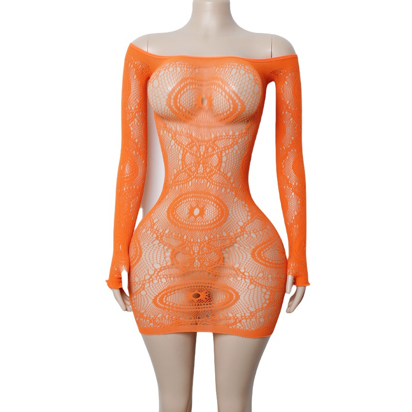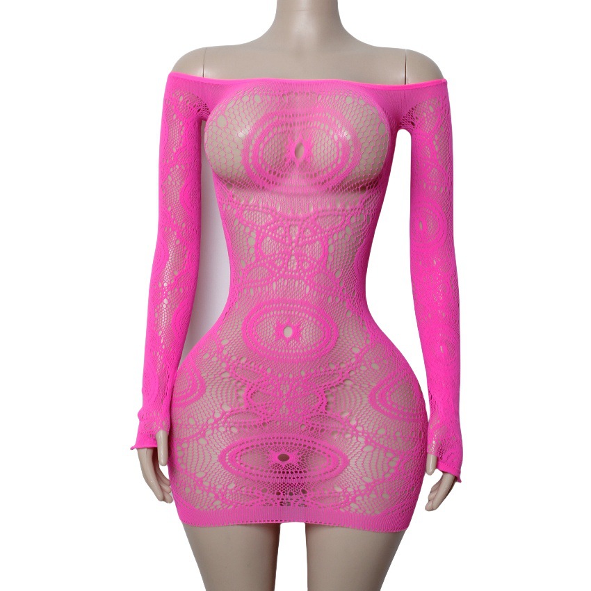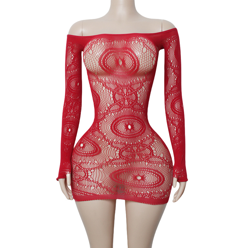Amazon трансграничный оптовый сплошной цвет сексуальный жаккардовый сетчатый костюм с открытыми плечами