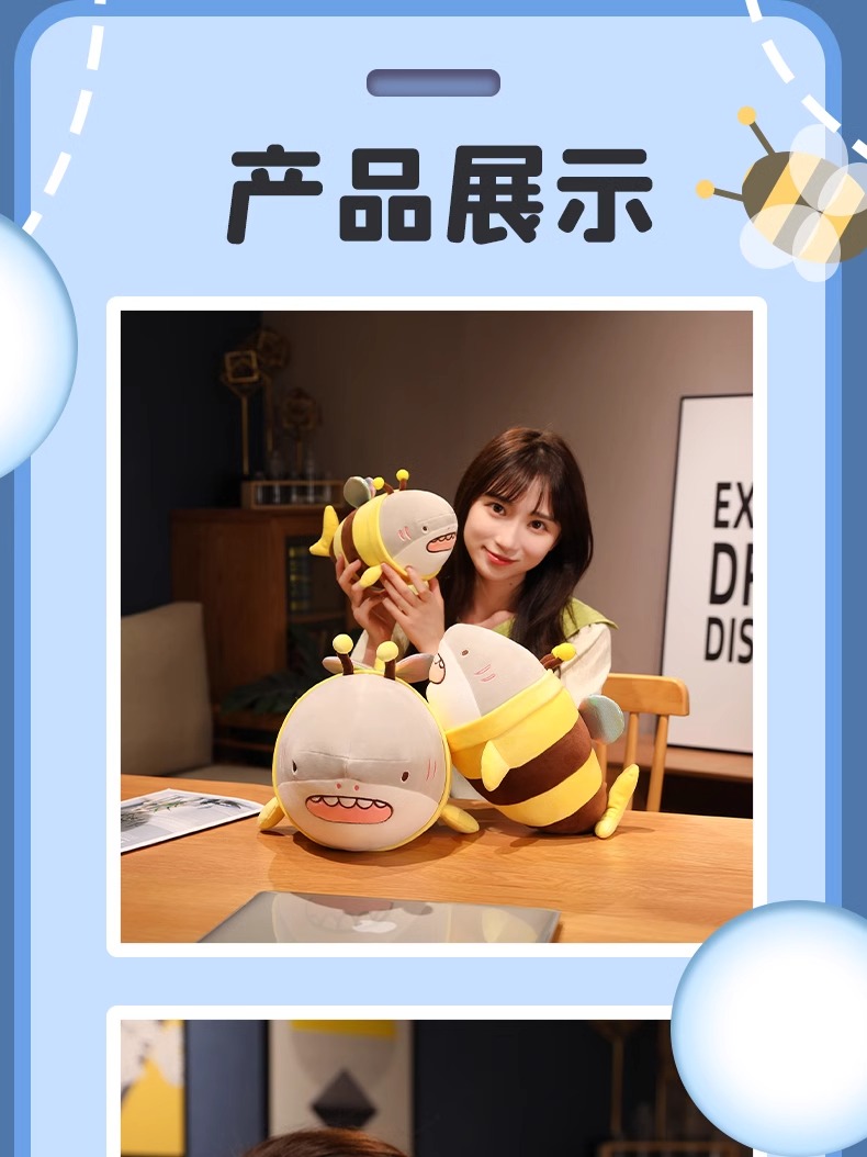 Сетка красная акула bee подушка смешная креативная плюшевая игрушка кукла акула пчела кукла мальчик подарок
