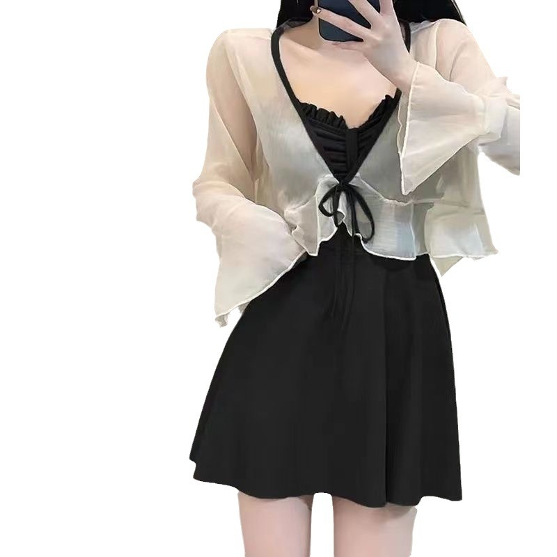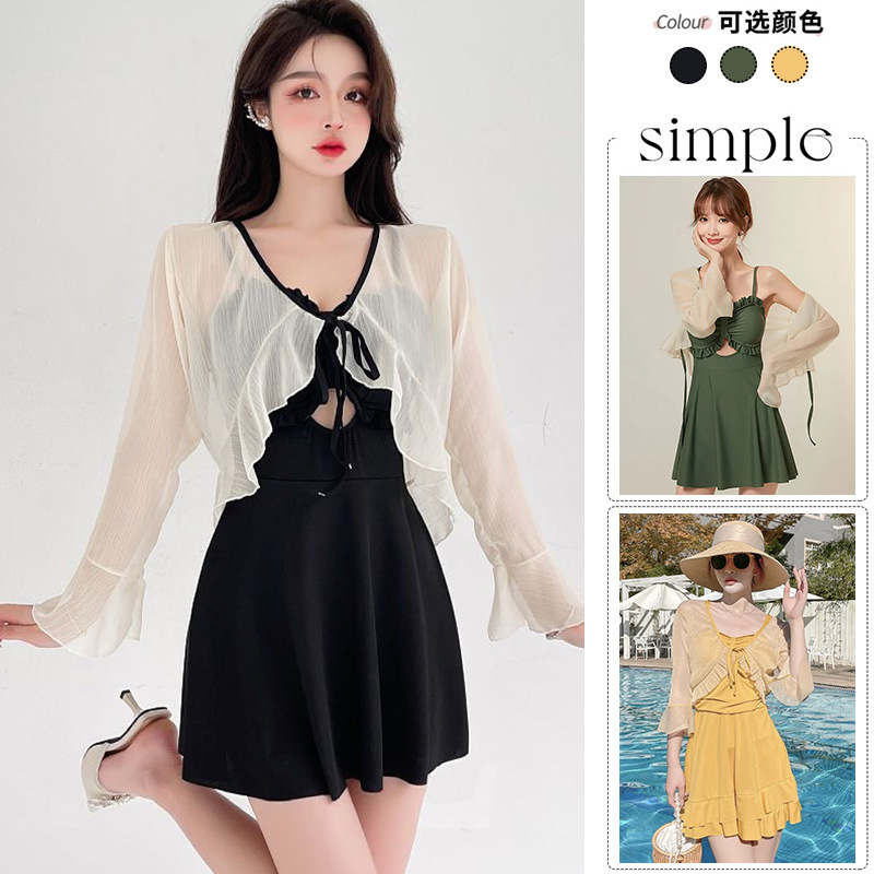 2025 новое летнее модное платье в стиле ins, цельное платье, блузка, защита от солнца, утягивающий консервативный купальник, закрывающий живот