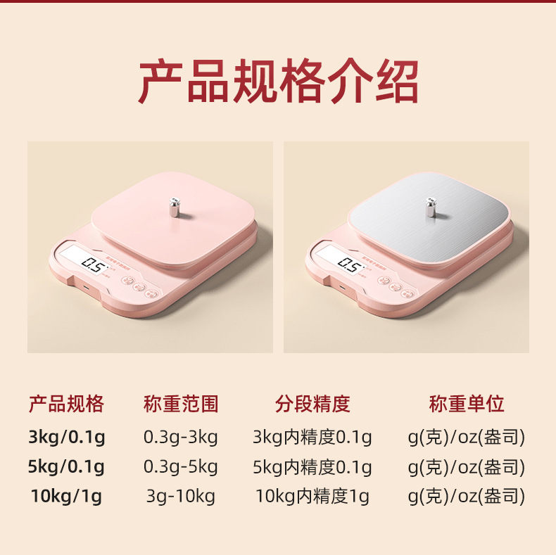 Кухонные весы для дома, розовые электронные весы, платформа из нержавеющей стали, точность до 0,1 г, для взвешивания продуктов, в стиле легкой роскоши.