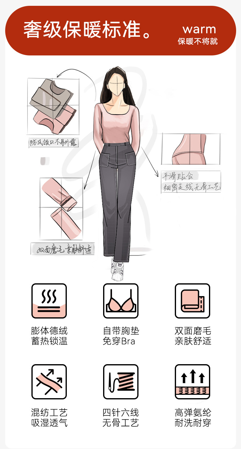 【Антибактериальное средство 10А】Женское термобелье с подушечками для груди, из расширенного немецкого велюра, осенне-зимний топ с длинными рукавами, самонагревающаяся базовая рубашка