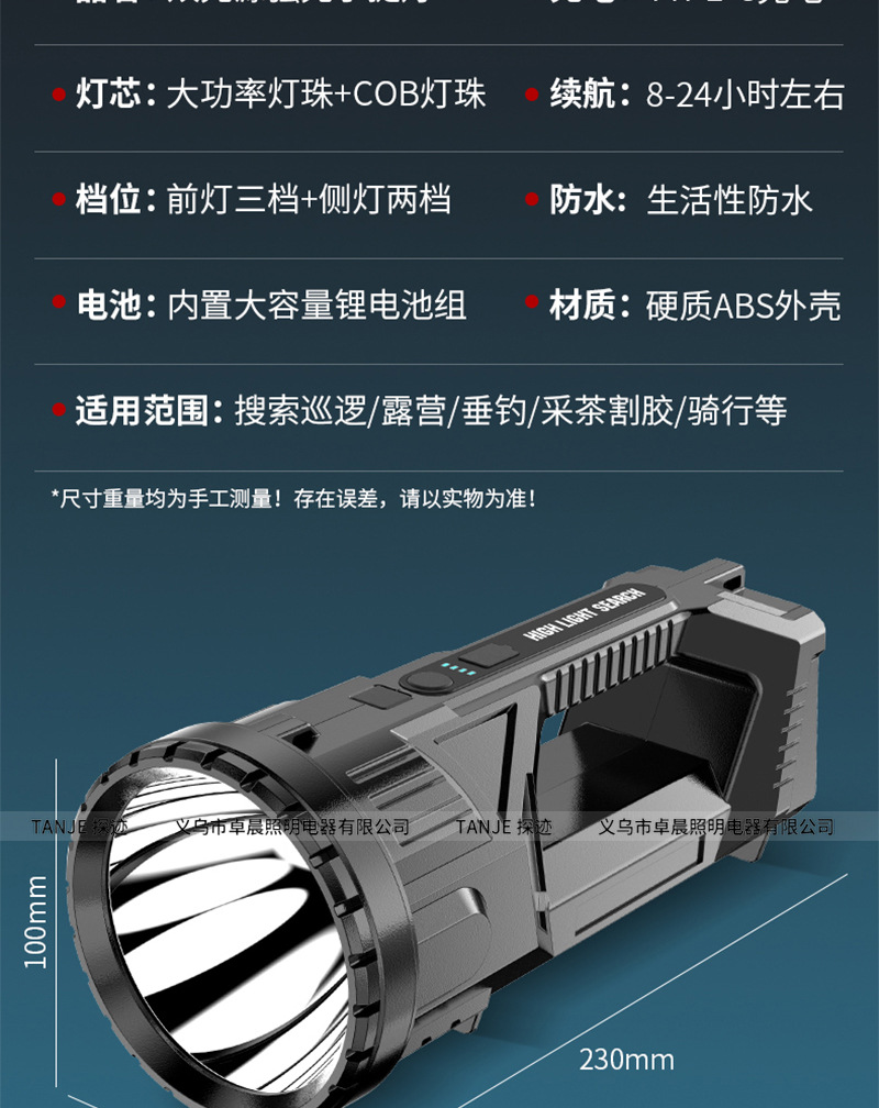Трансграничный светодиодный взрывозащищенный прожектор с COB боковые огни на открытом воздухе водонепроницаемый аварийный сильный свет портативный фонарик высокой мощности