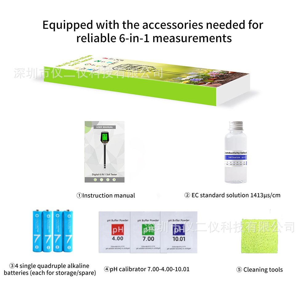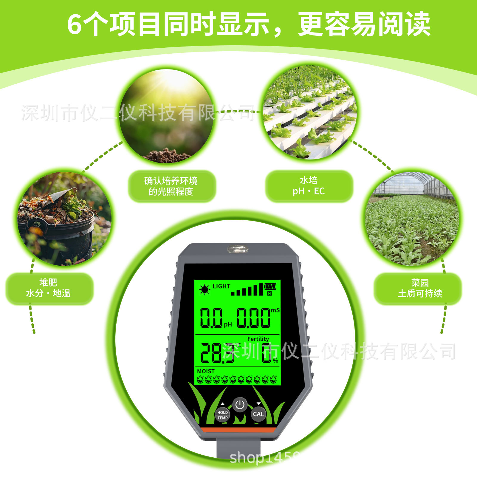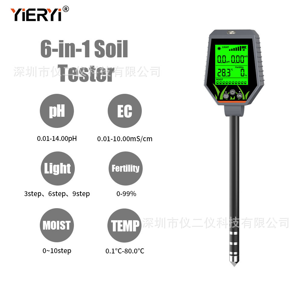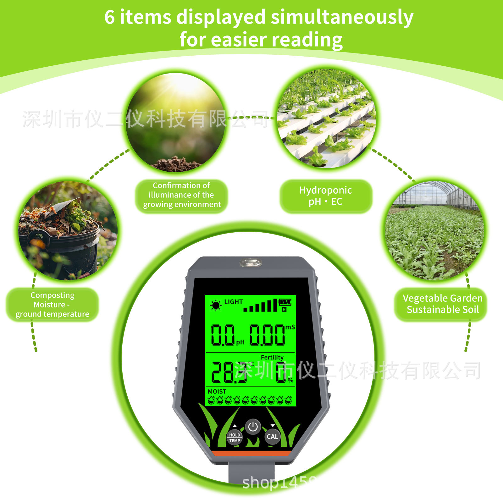 6 в 1 Детектор почвы Сад Тестер PH плодородия почвы в горшке EC Измеритель температуры