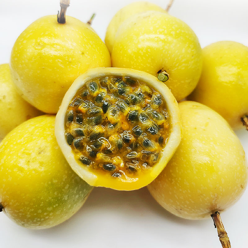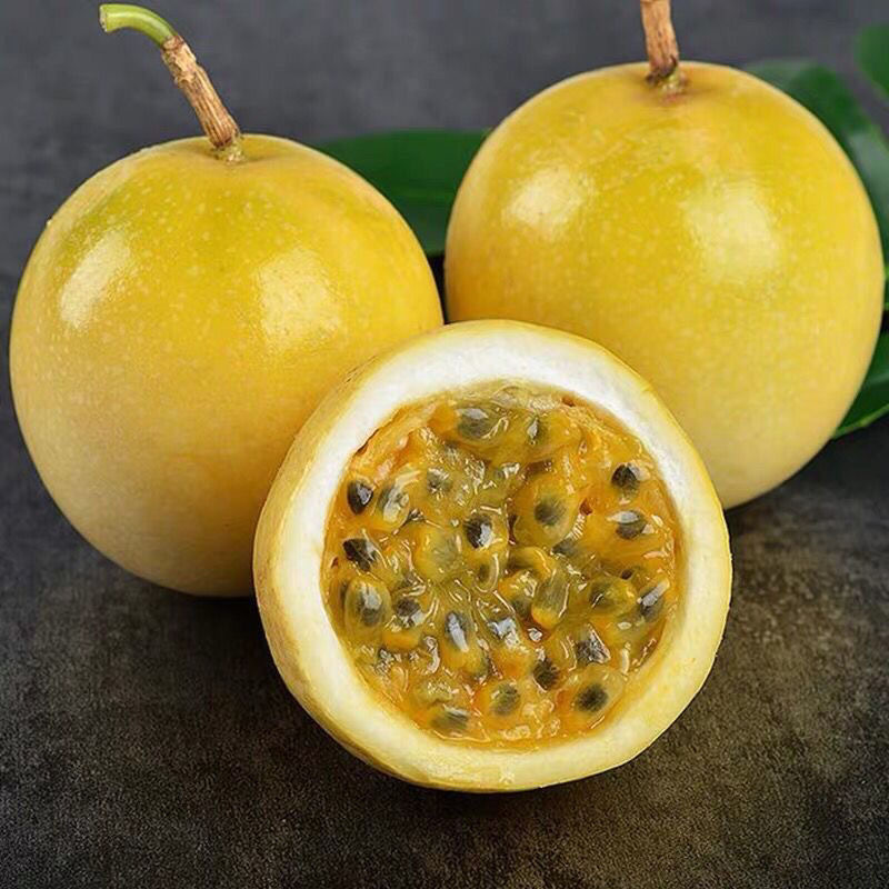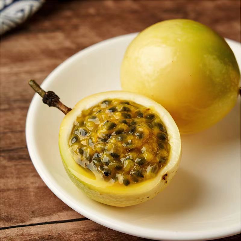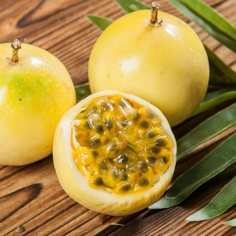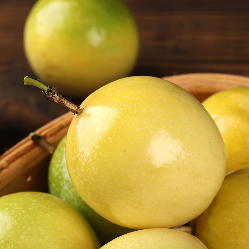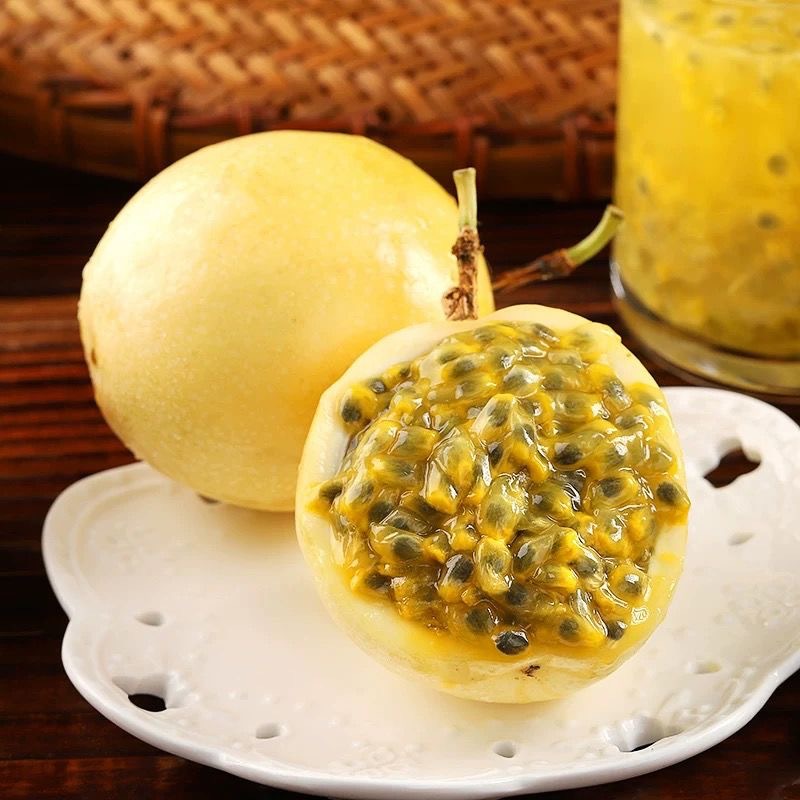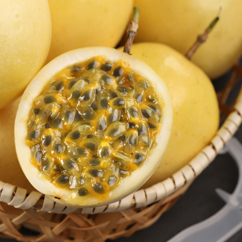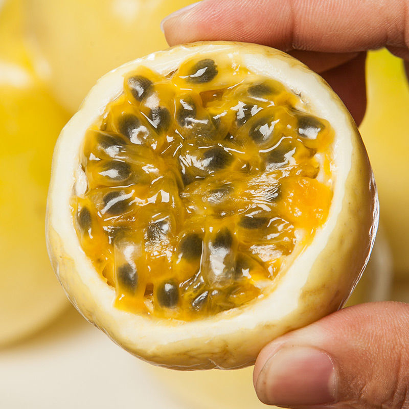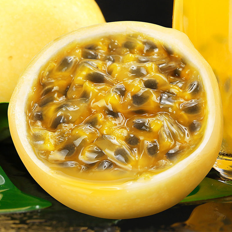 【产品亮点】黄金百香果,果肉新鲜嫩滑,果香浓郁,芳香四溢。黄金百香果比紫红色百香果果汁要多,黄金百香果果汁为百分之四十五,而紫色百香果果汁为百分之三十五。紫色百香果大部分是酸的,而黄色的比较甜非常适合当水果食用,需求量较大,产量比紫色少,所以售价自然会比紫色高!