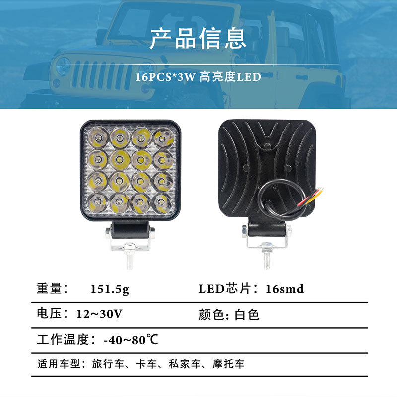 Источник производителя алюминиевый светодиодный рабочий фонарь квадратный модифицированный светильник на крыше внедорожный прожекционный свет на открытом воздухе подсвеченный водонепроницаемый фары