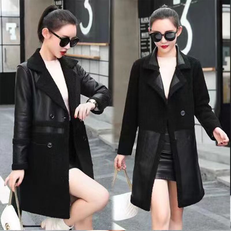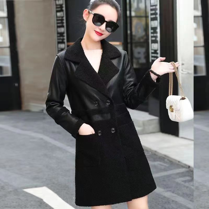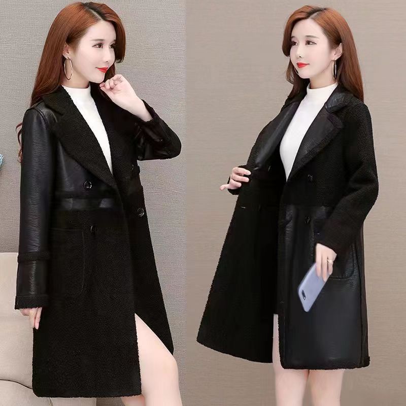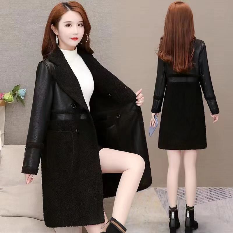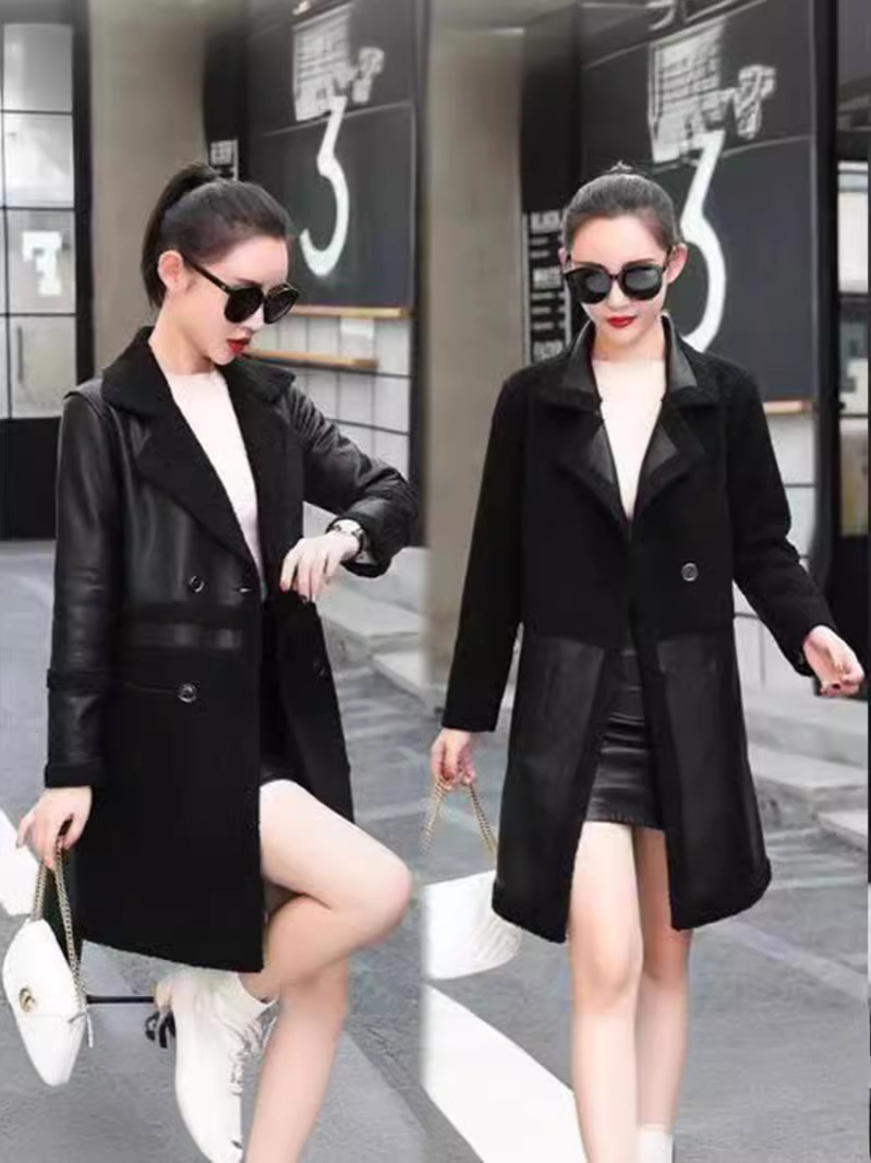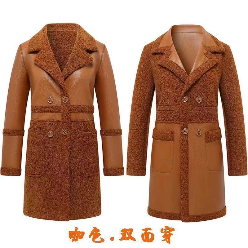 2024 осень и зима новая женская овечья шерсть Haining кожаная куртка женская средняя длинная повседневная тедди бархат двусторонняя одежда