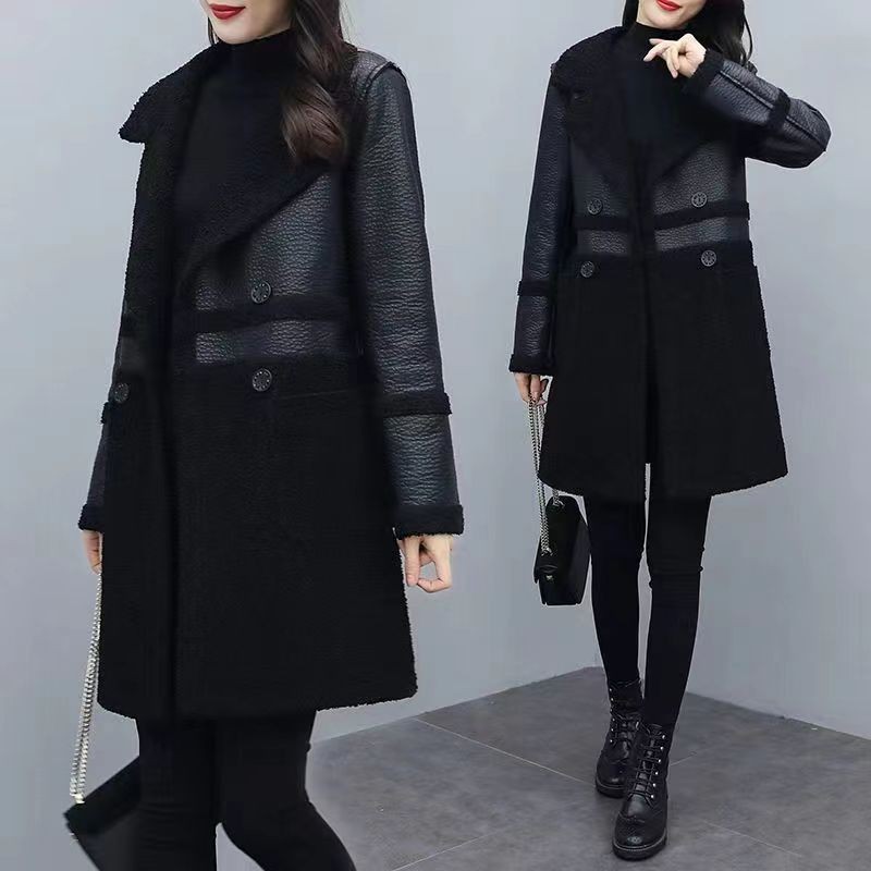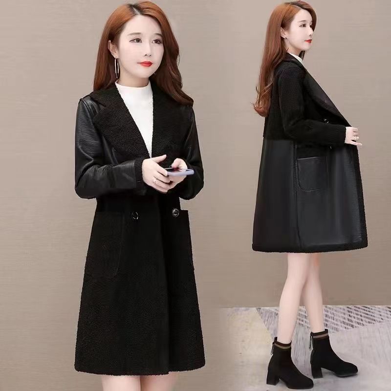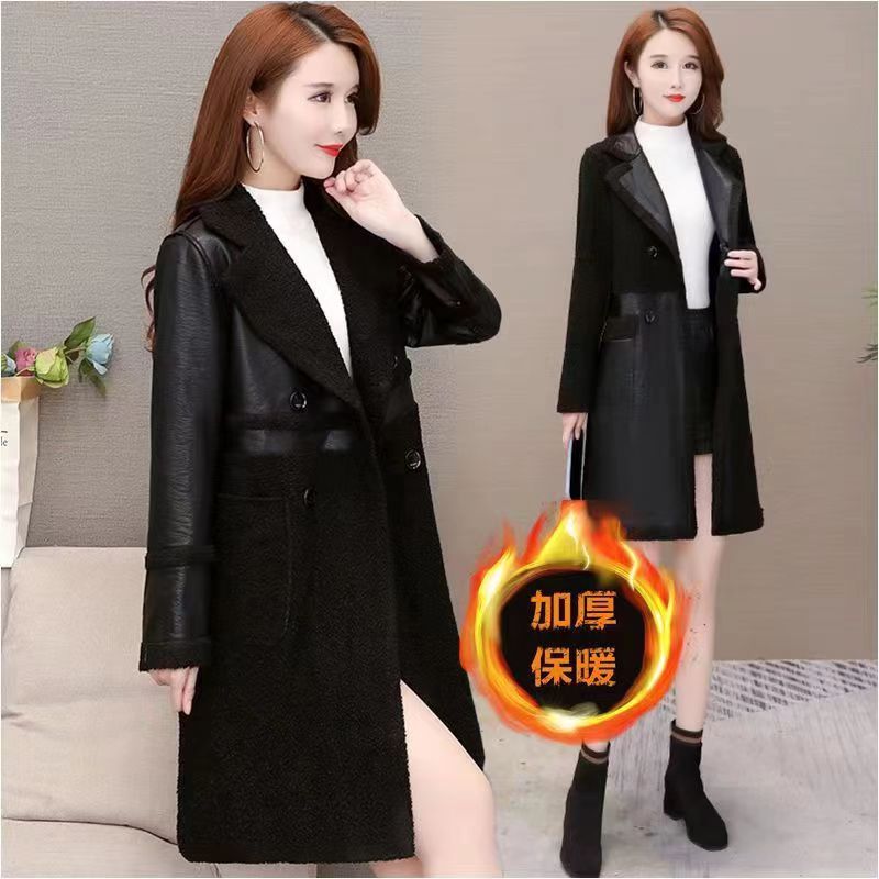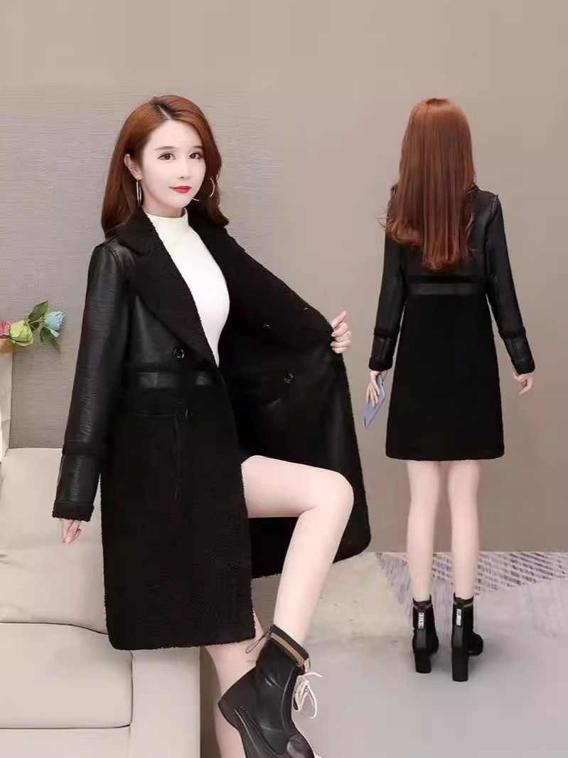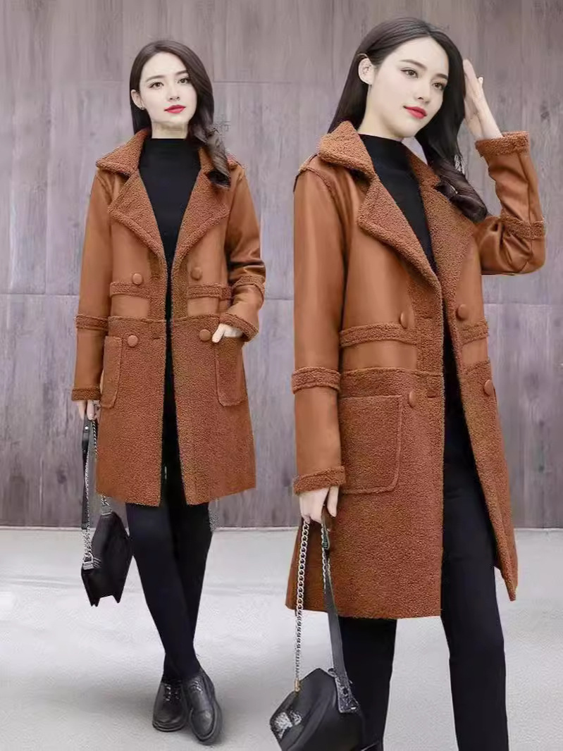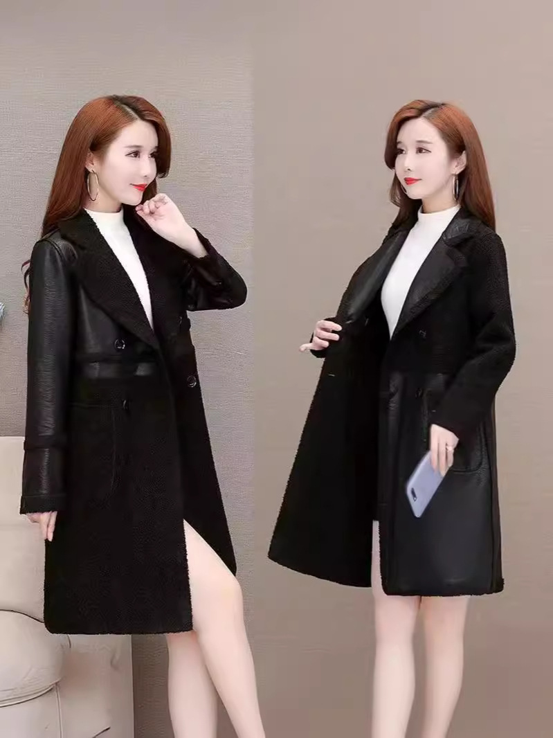 2024 осень и зима новая женская овечья шерсть Haining кожаная куртка женская средняя длинная повседневная тедди бархат двусторонняя одежда