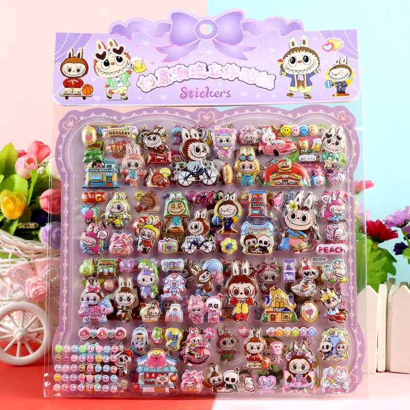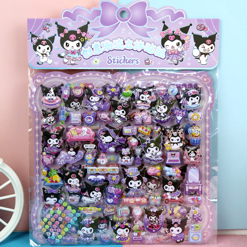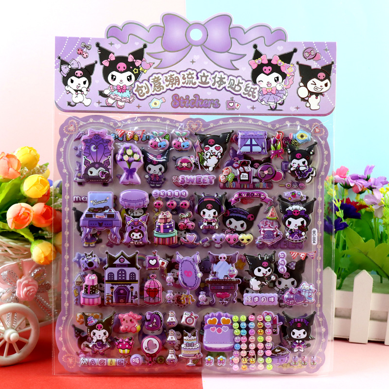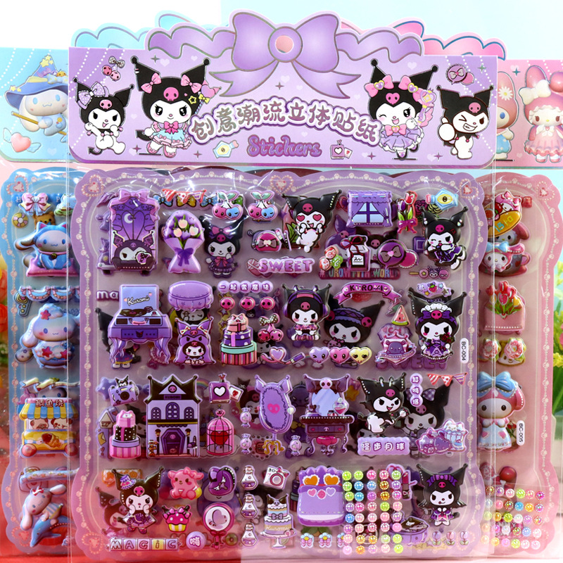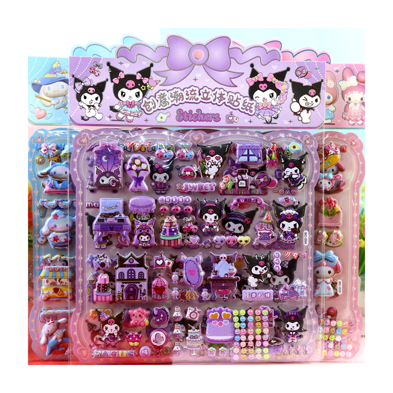 Детские объемные двухслойные наклейки Sanrio Kuromi Mountain and Sea Classic Stitch Labubu, большие пузырчатые наклейки
