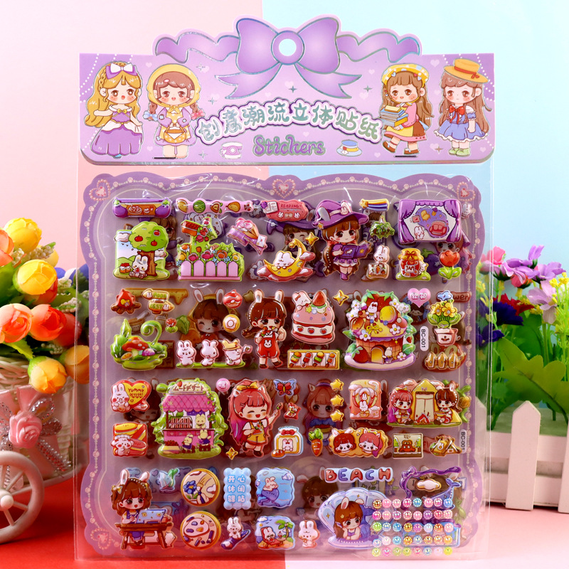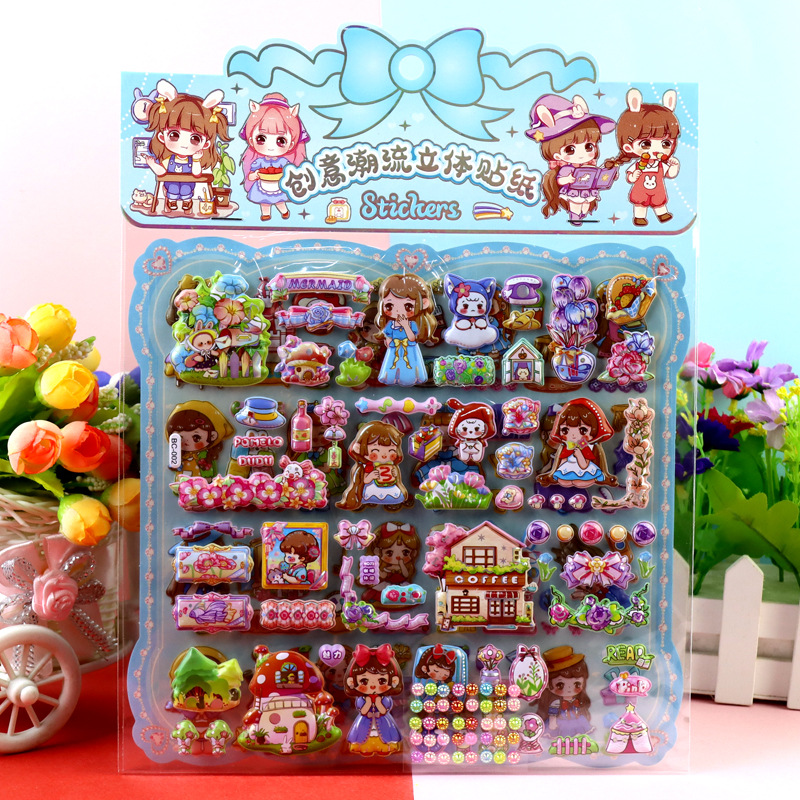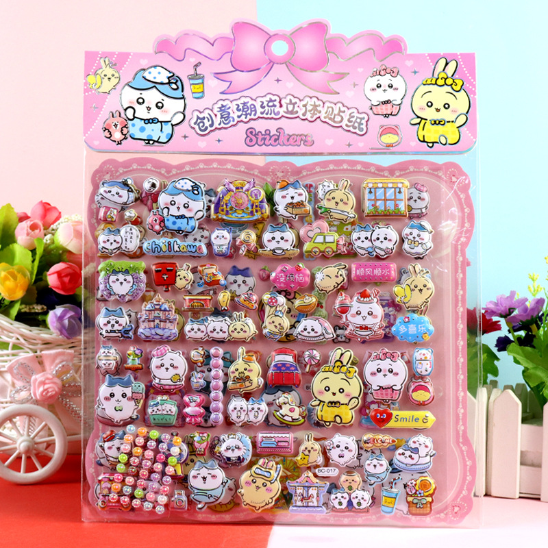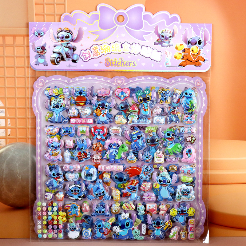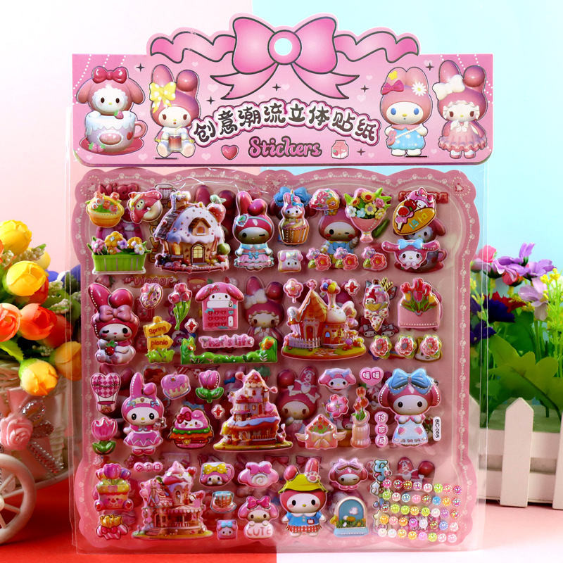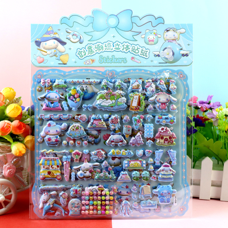 Детские объемные двухслойные наклейки Sanrio Kuromi Mountain and Sea Classic Stitch Labubu, большие пузырчатые наклейки