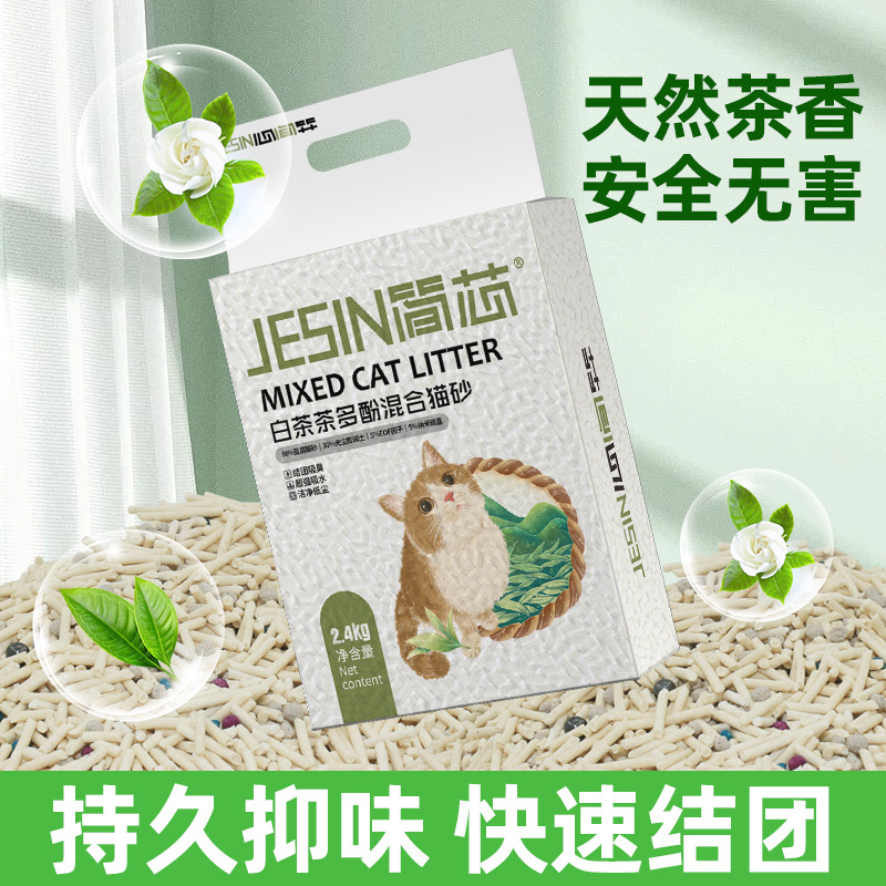 Простая сердцевина взрывного белого чая кошачий бентонит дезодорант с низкой пылью смешанный кошачий песок тофу кошачий песок кошачий песок 2,4 kg