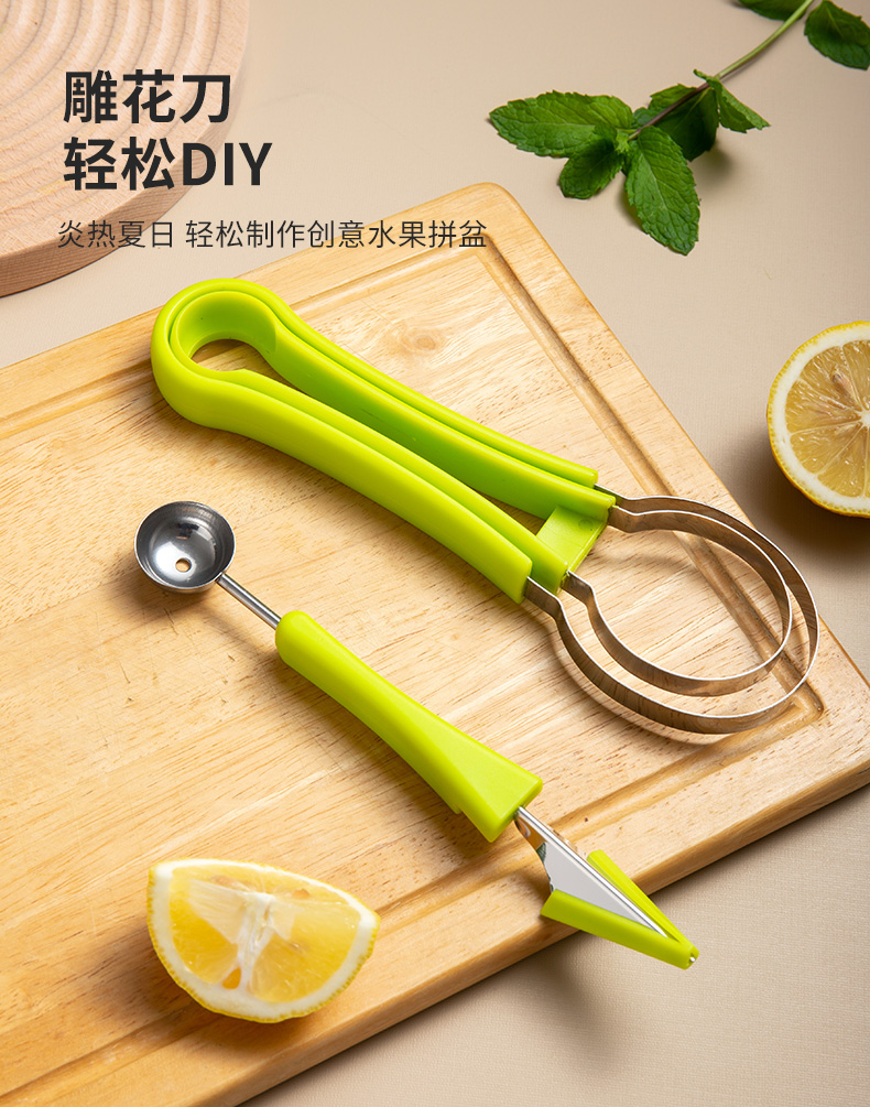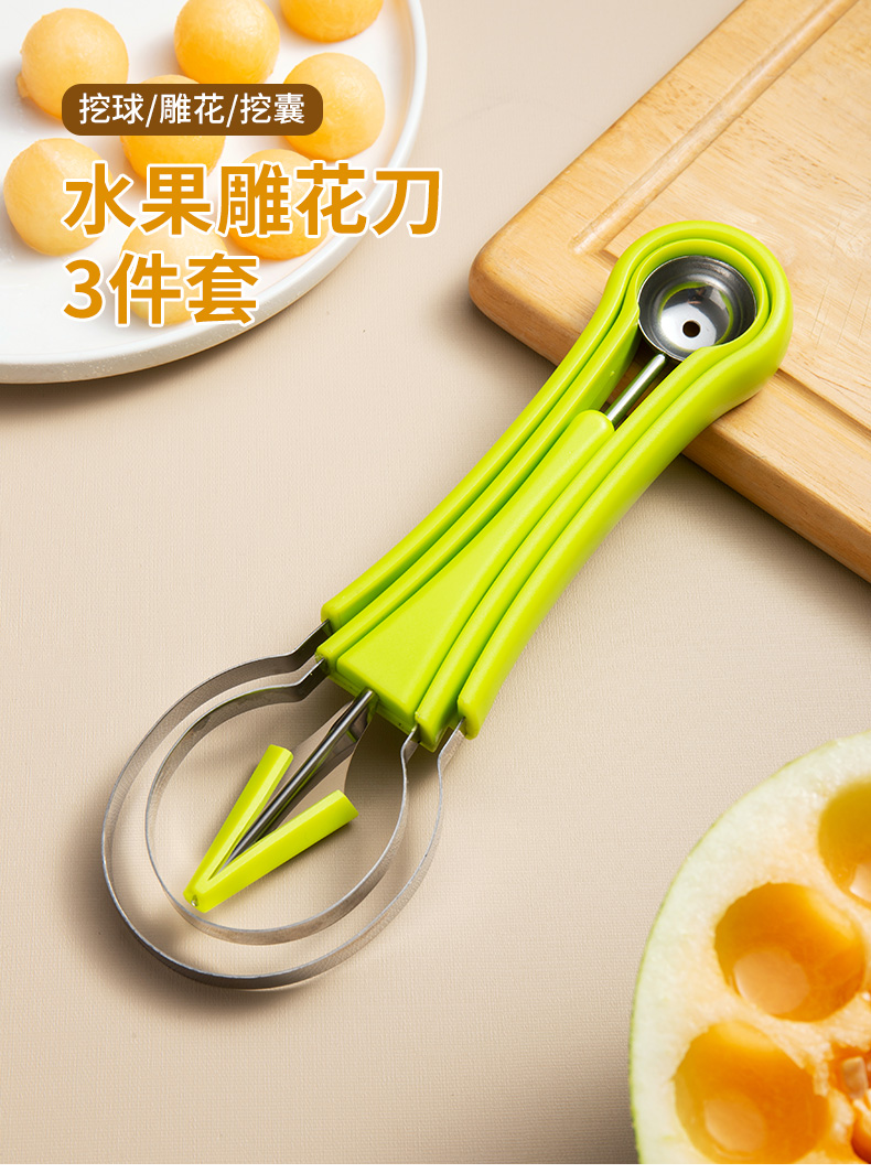 Фруктовый набор ножей для тарелки шарика, резная дыня, ложка три в одном
