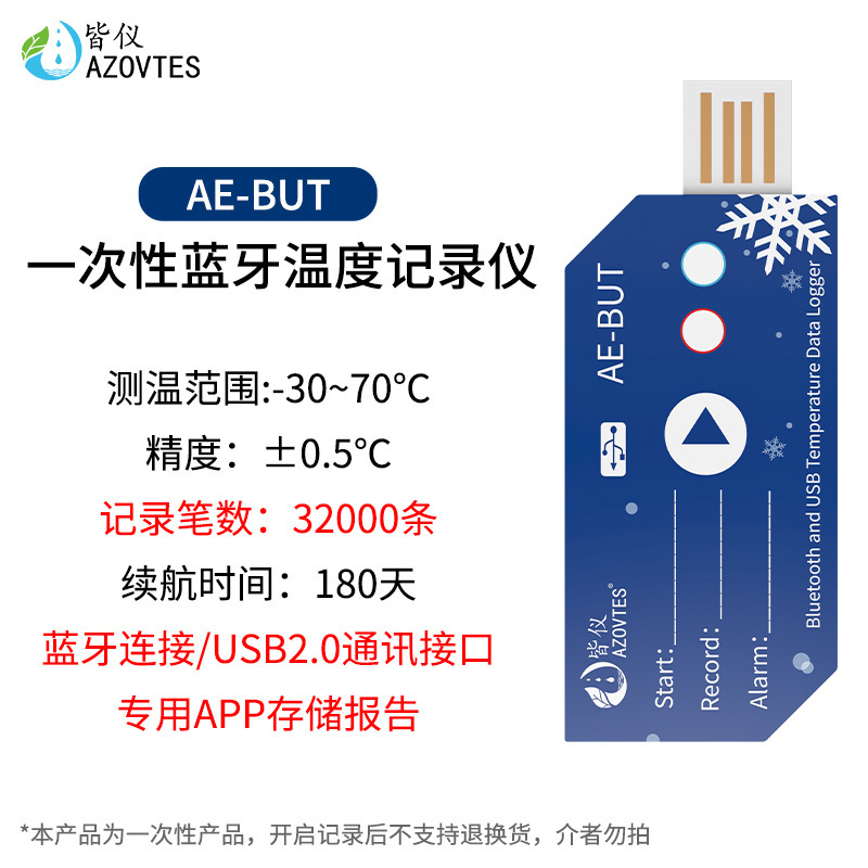 注:此仪表为一次性不支持退货。一次性USB蓝牙温度记录仪存储180天PDF报告药品水果生鲜冷链运输蓝牙温湿度表