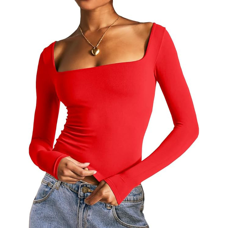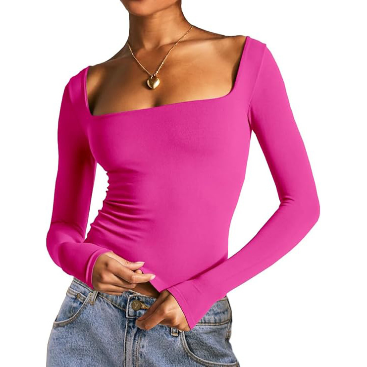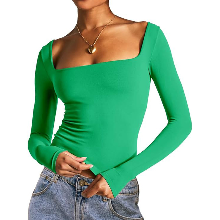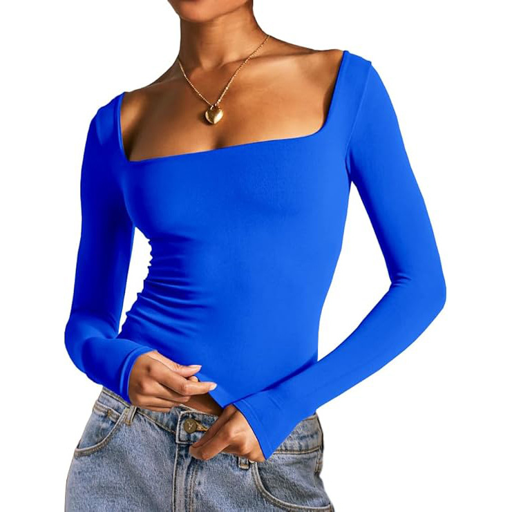 Новая женская одежда из Европы и Америки, Amazon AliExpress, пуловер, одежда с длинными рукавами, обнажающий пупок, квадратный воротник, топ из молочного шелка для женщин