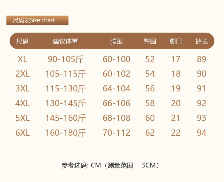 XL (рекомендуется в пределах 90 кг); 2XL (рекомендуется 90-105 кг); 3XL (рекомендуется 105-120 кг); 4XL (рекомендуется 120-135 кг); 5XL (рекомендуется 135-150 кг); 6XL (рекомендуется 150-165 кг)