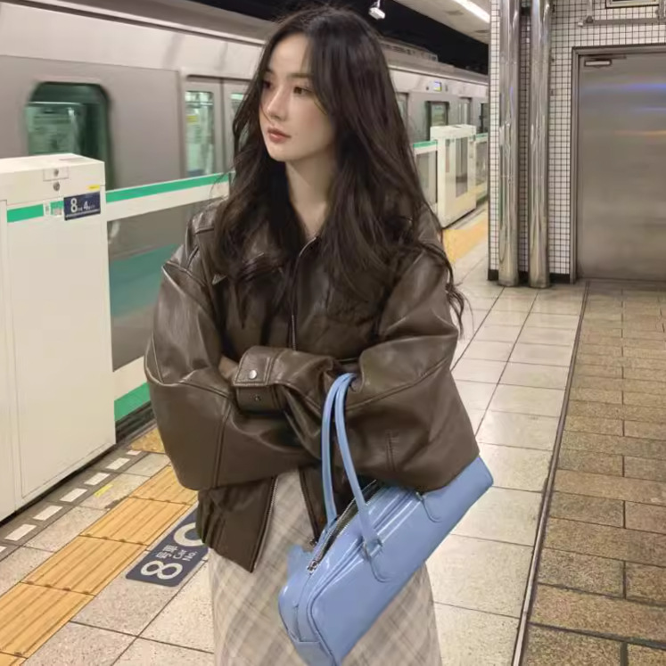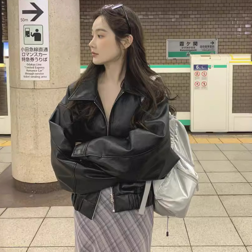Корейский стиль chic20204, новинка ранней осени и зимы, ретро-стиль в гонконгском стиле, стильная куртка из искусственной кожи, свободное пальто для женщин.