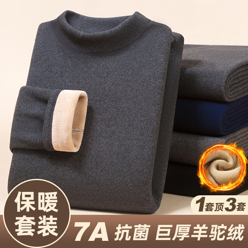[Горбатый бархат] Осеннее и зимнее термобелье с половинным вырезом мужские и женские костюмы с бархатным толстым холодом осенняя одежда осенние брюки