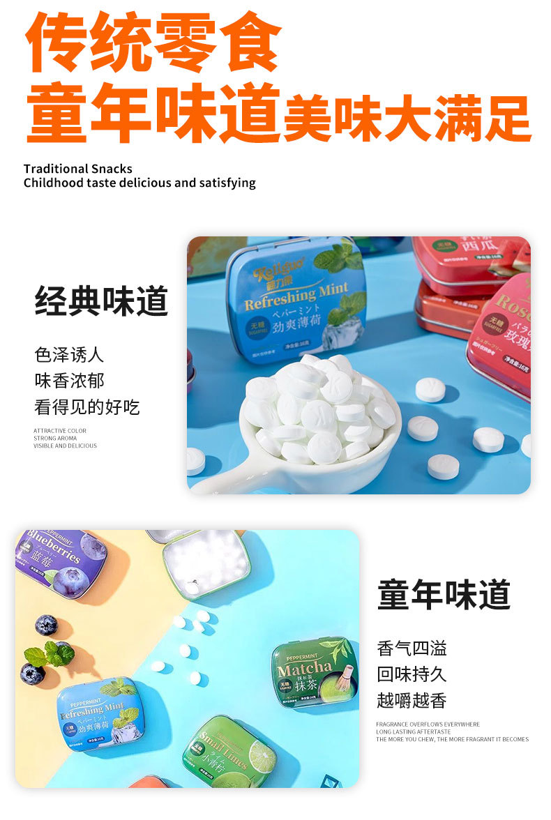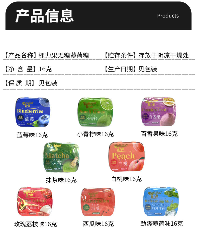 Келикора без сахара Мятная конфета 16 г Железная коробка черника арбуз белый персик без сахара Мятная конфета 16 г * 12 оптовая продажа