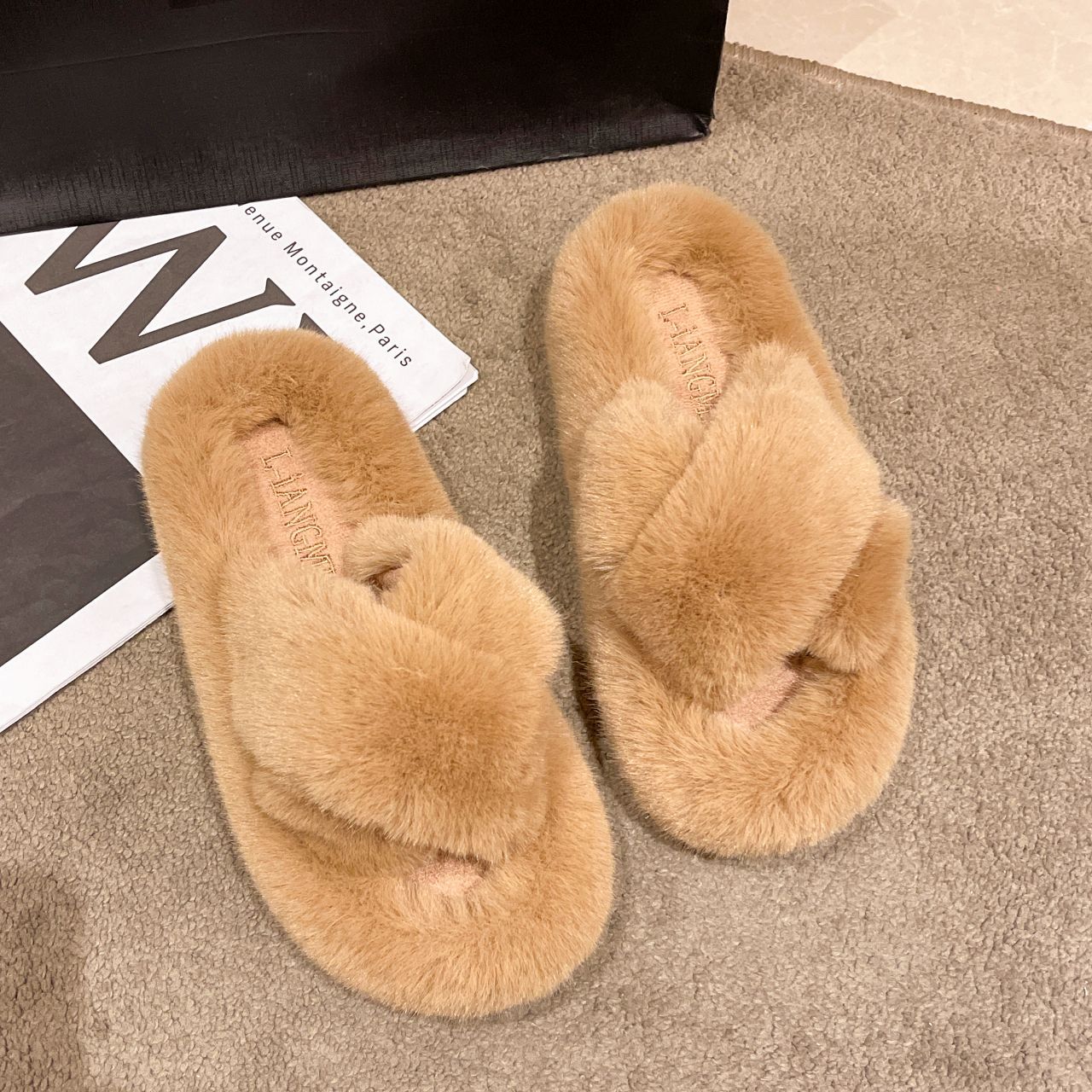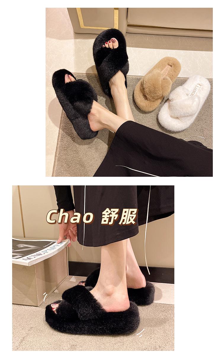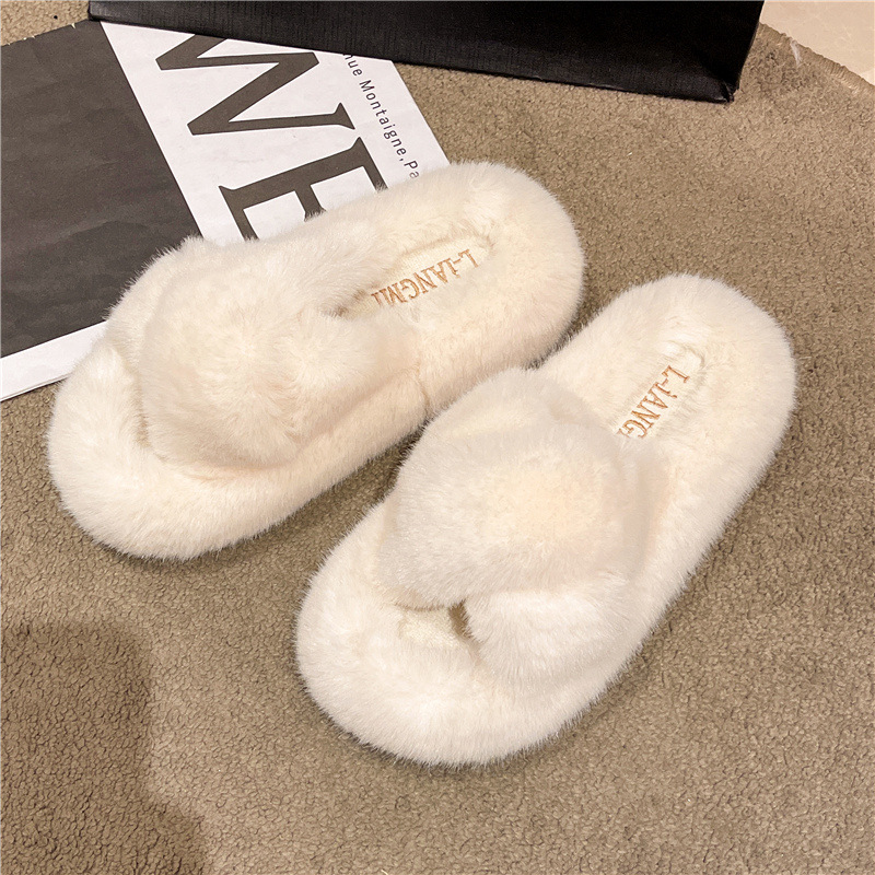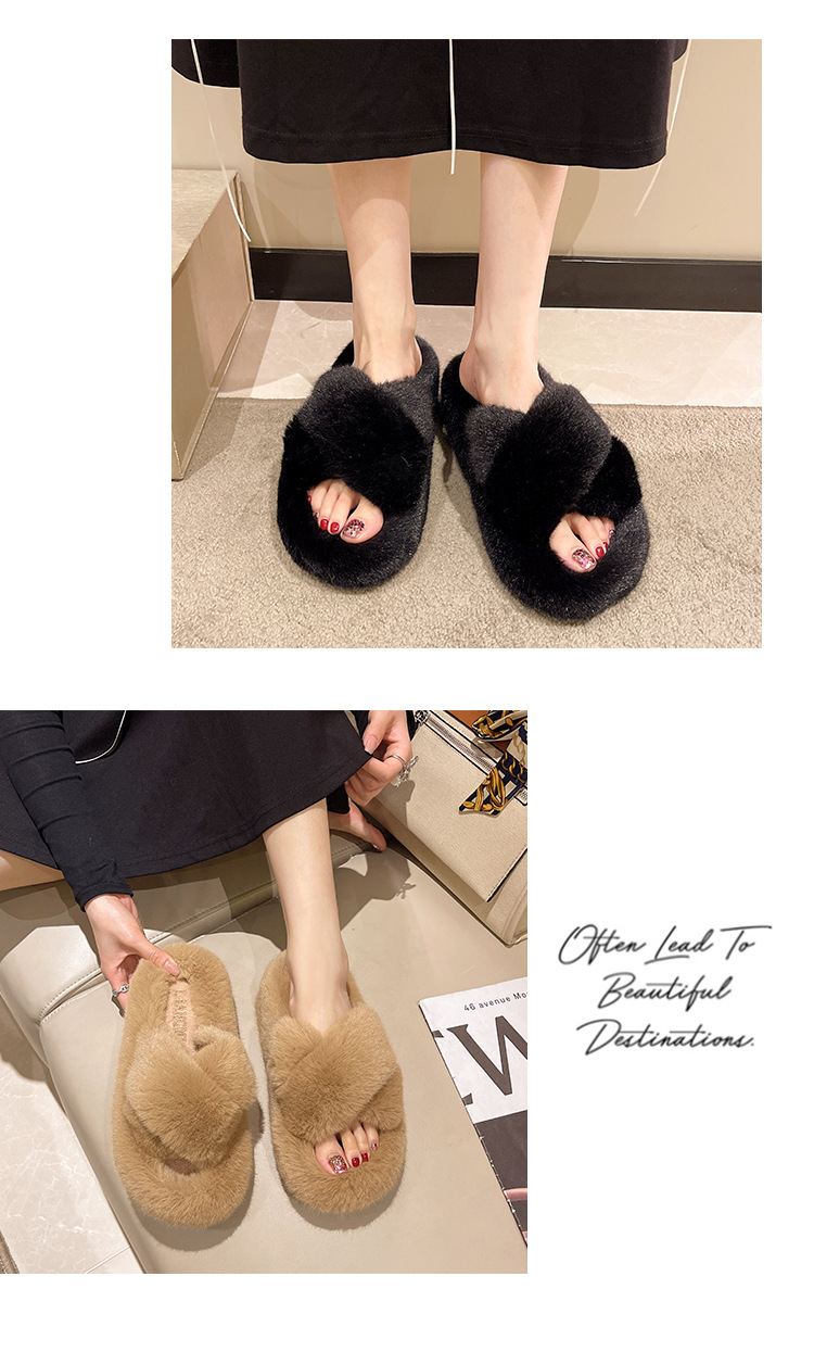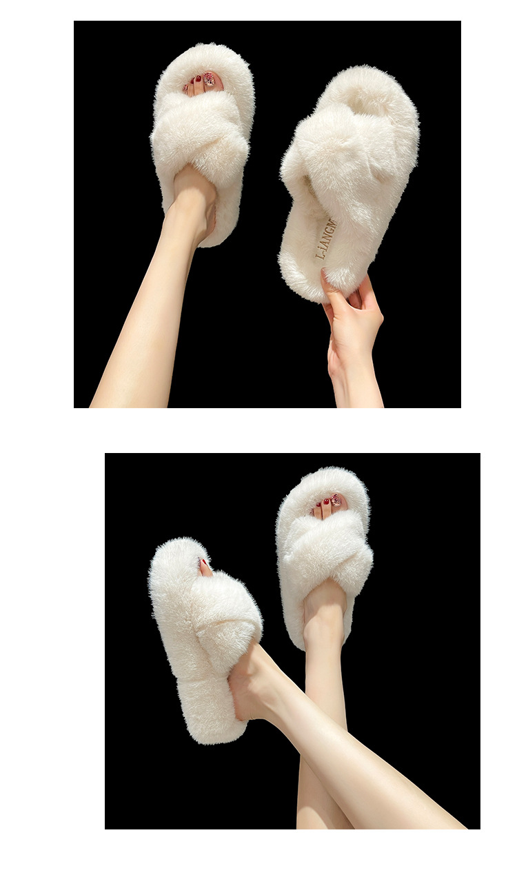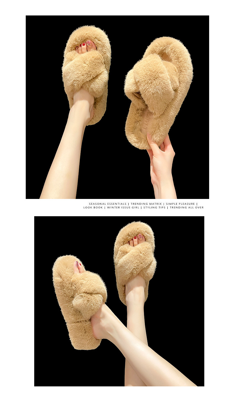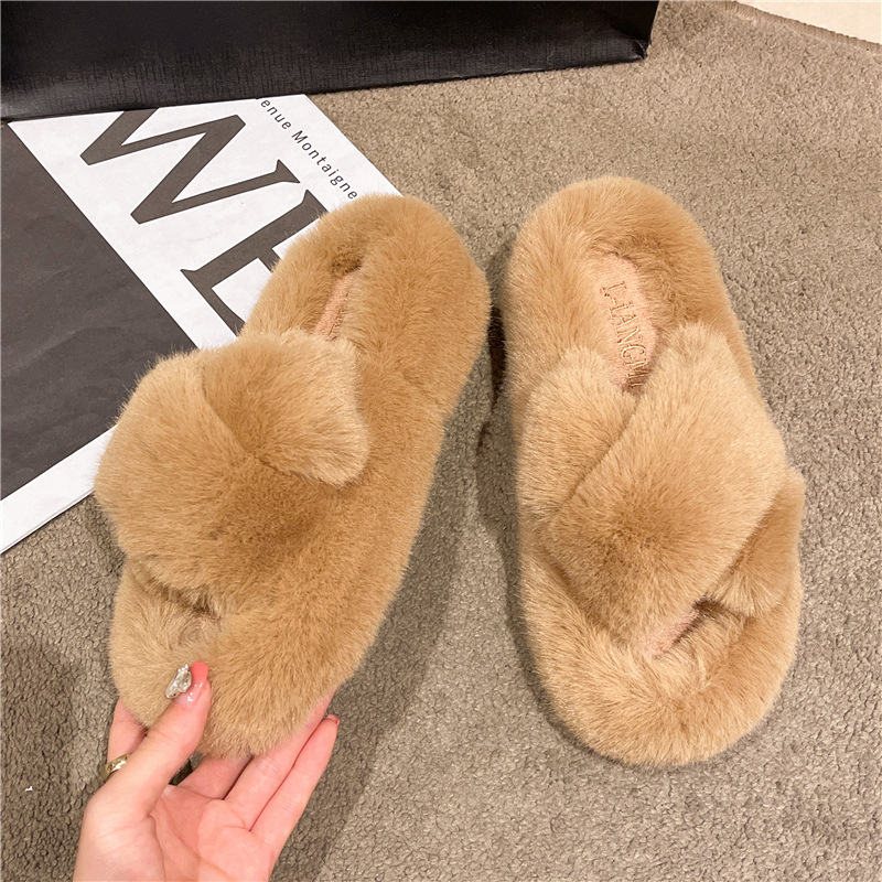 Перекрестные шерстяные тапочки женские осень-зима новый сплошной цвет модный внешний вид тапочки домашние теплые плюшевые тапочки