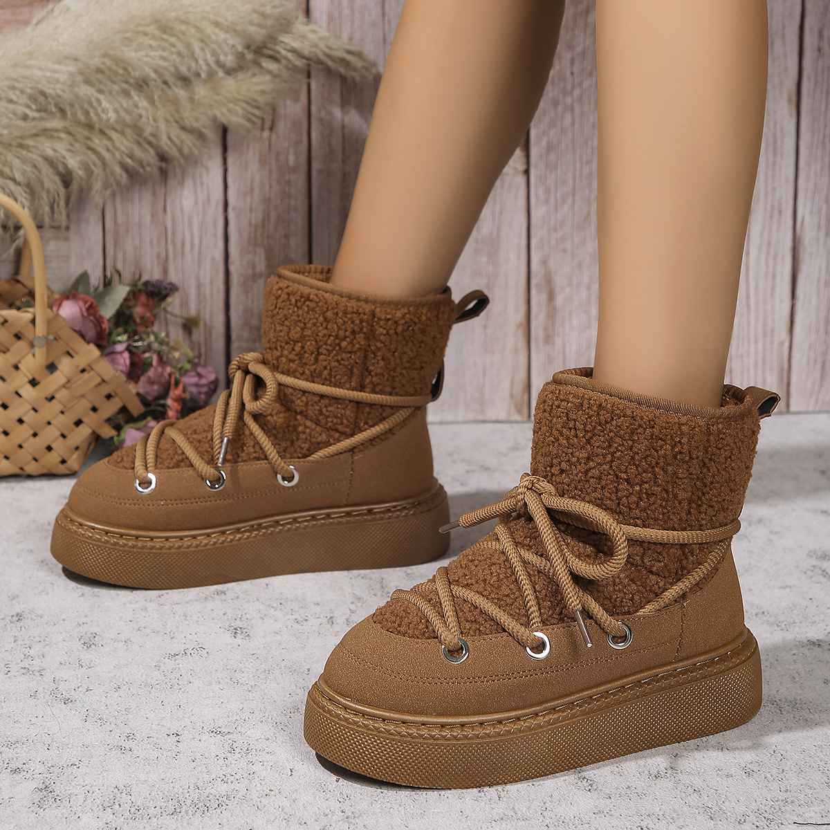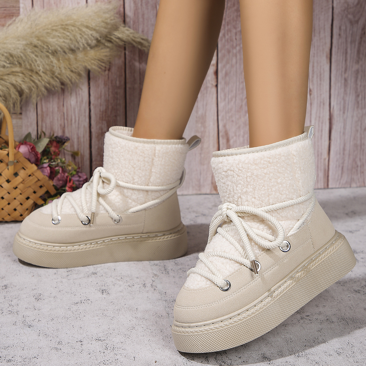 Женские зимние ботинки, увеличивающие рост и утолщенные, новый стиль 2024 года, теплые стильные универсальные женские зимние хлопковые ботинки с толстым плюшем в северо-восточном стиле
