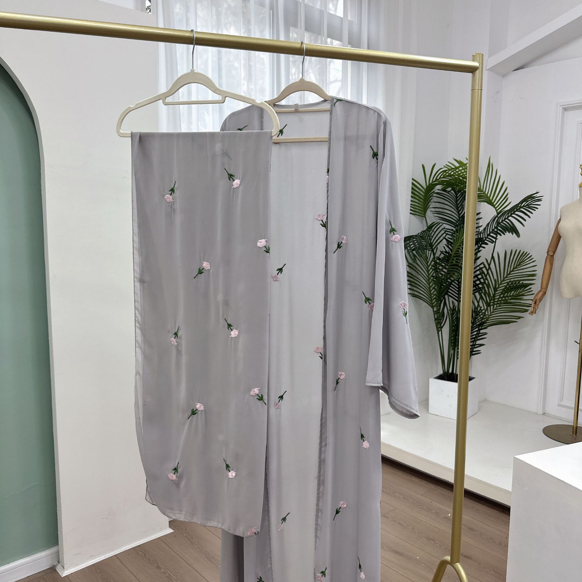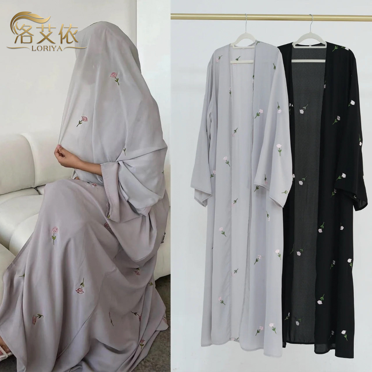 Loriya2024速卖通迪拜中东土耳其迪拜花朵刺绣优雅开衫abayaLR818