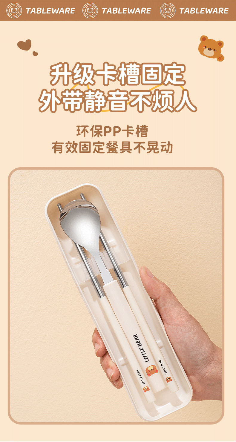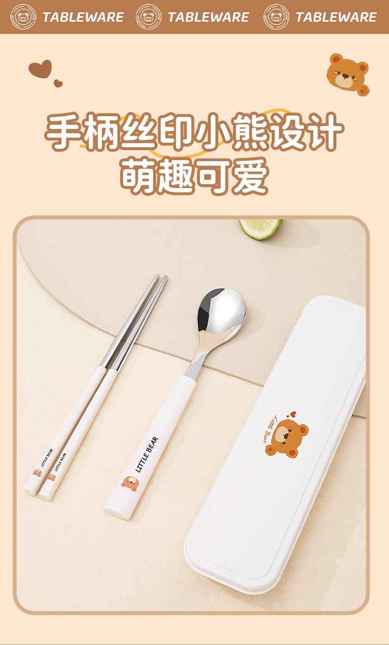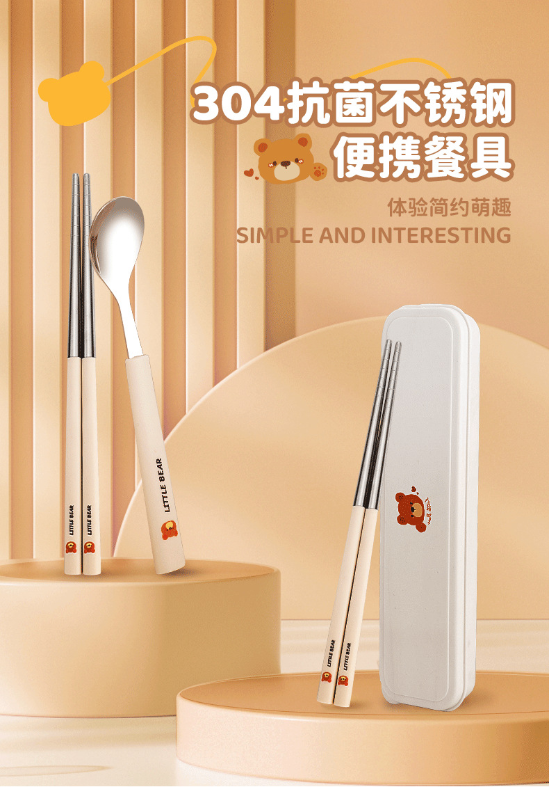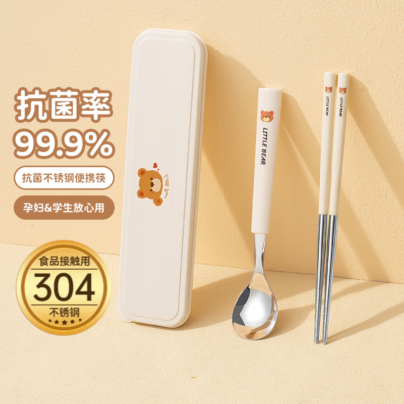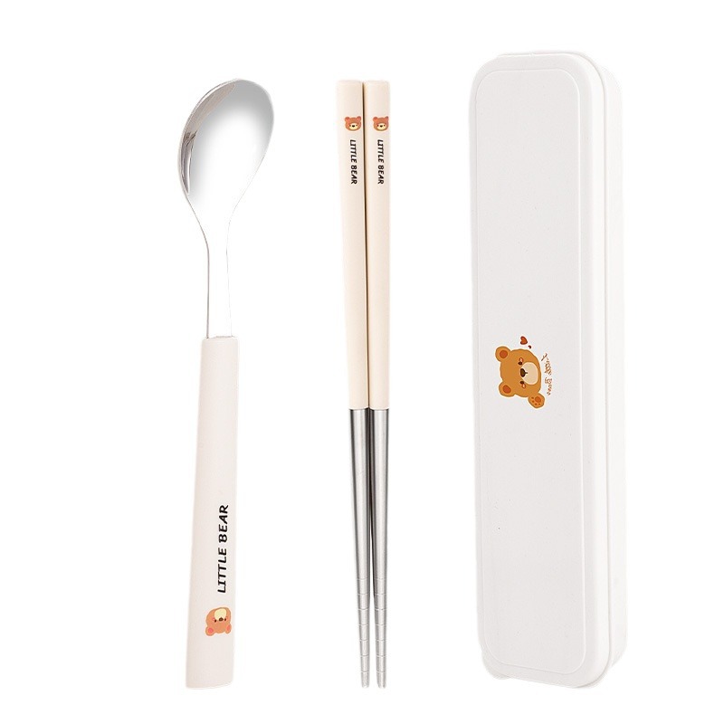 304 из нержавеющей стали палочки для еды вилка ложка набор мультфильм портативная коробка набор из трех частей для хранения посуды для студентов на открытом воздухе