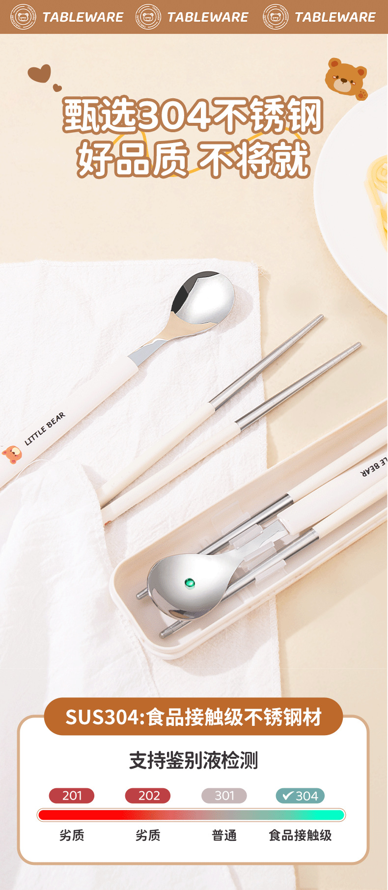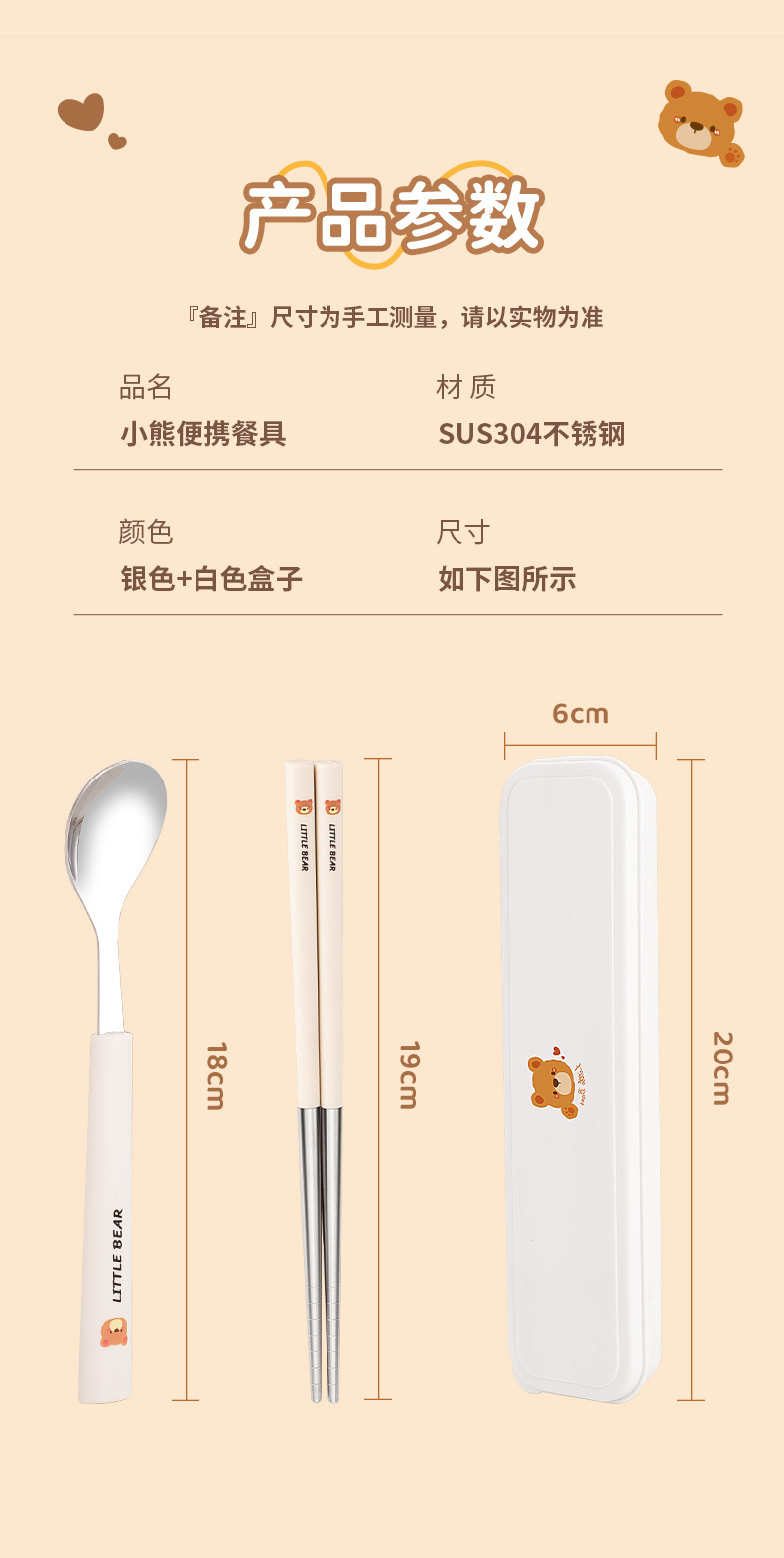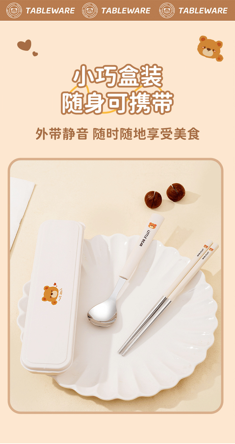 304 из нержавеющей стали палочки для еды вилка ложка набор мультфильм портативная коробка набор из трех частей для хранения посуды для студентов на открытом воздухе