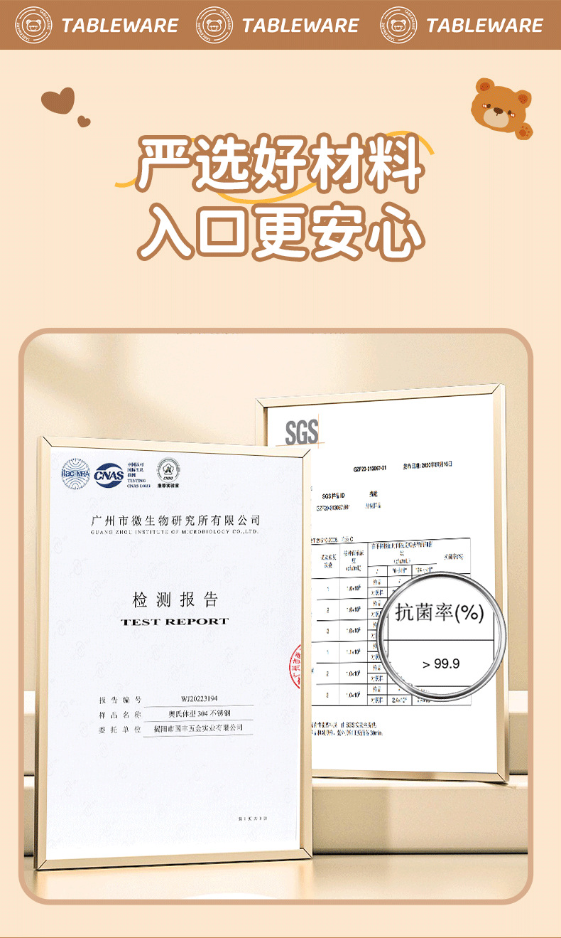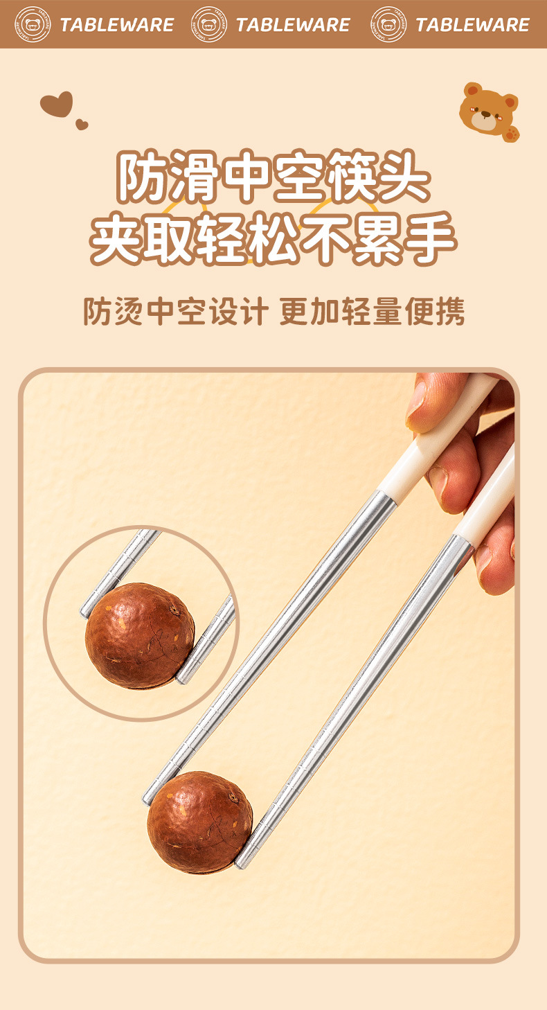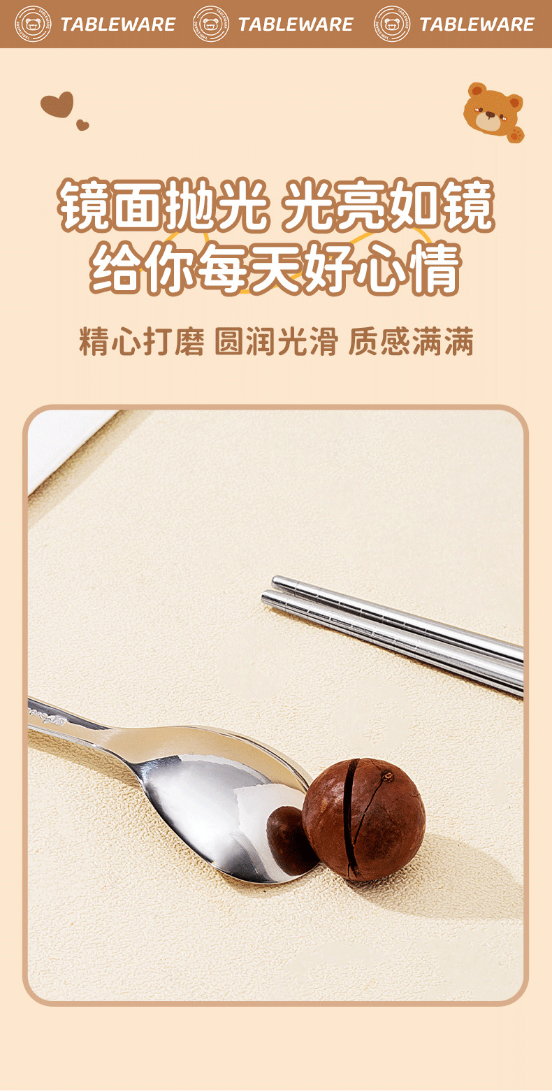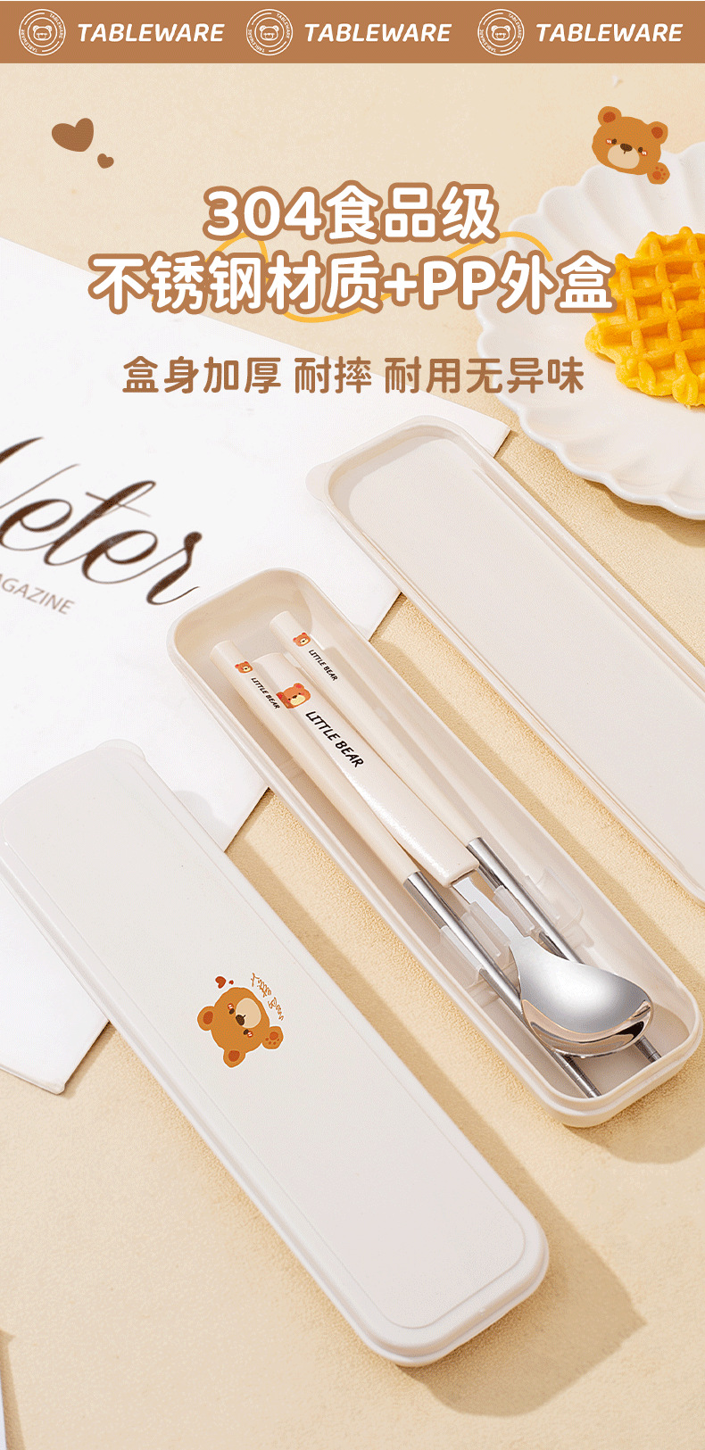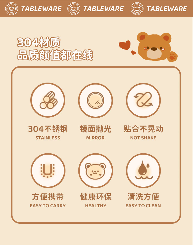 Портативный набор посуды с мультяшным медведем 304 + наклейки