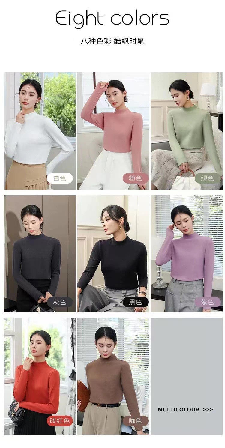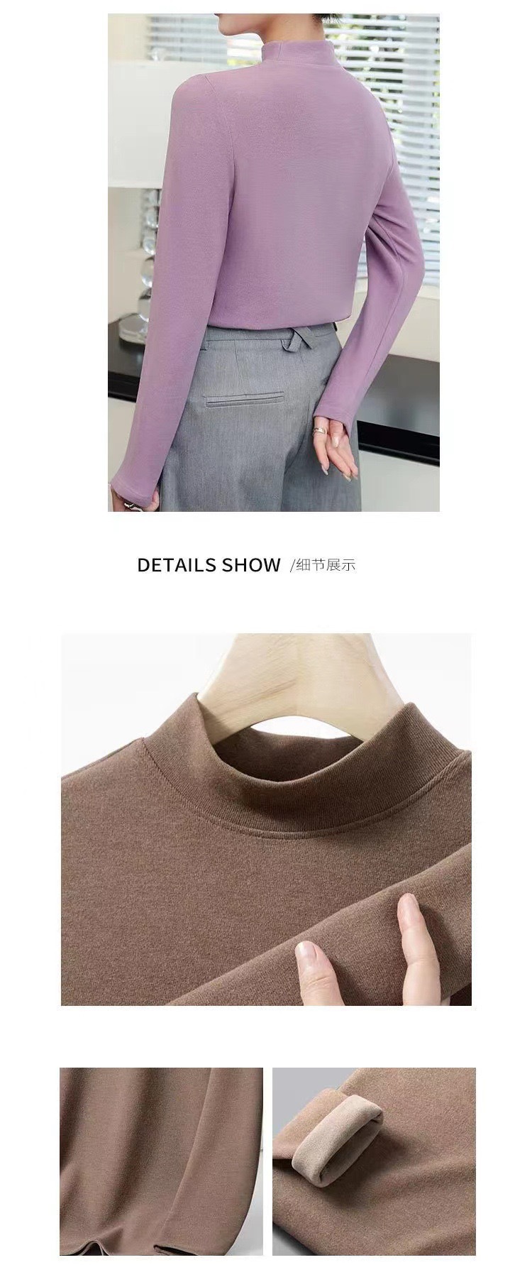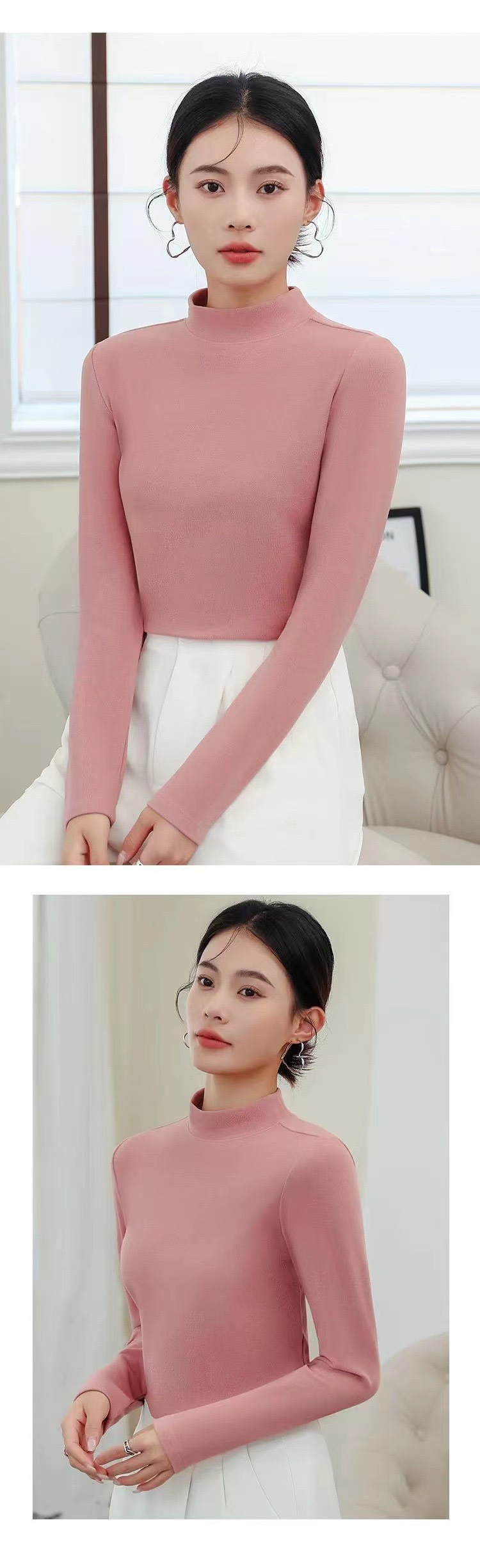 Осенне-зимняя женская термобельевая футболка с высоким воротником, на флисовой подкладке, утолщенная, однотонная, с длинным рукавом, для защиты от холода