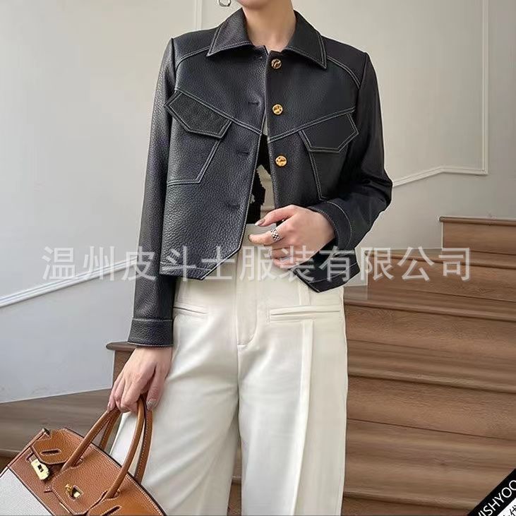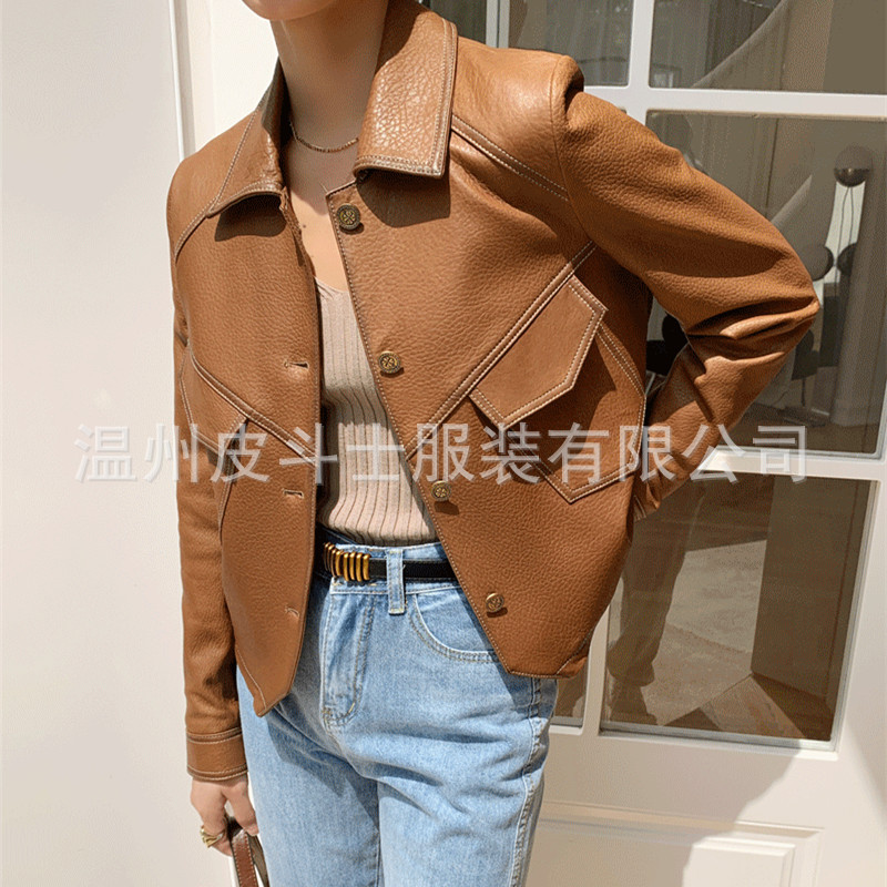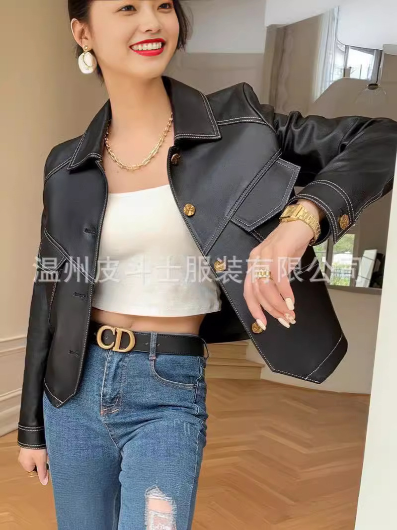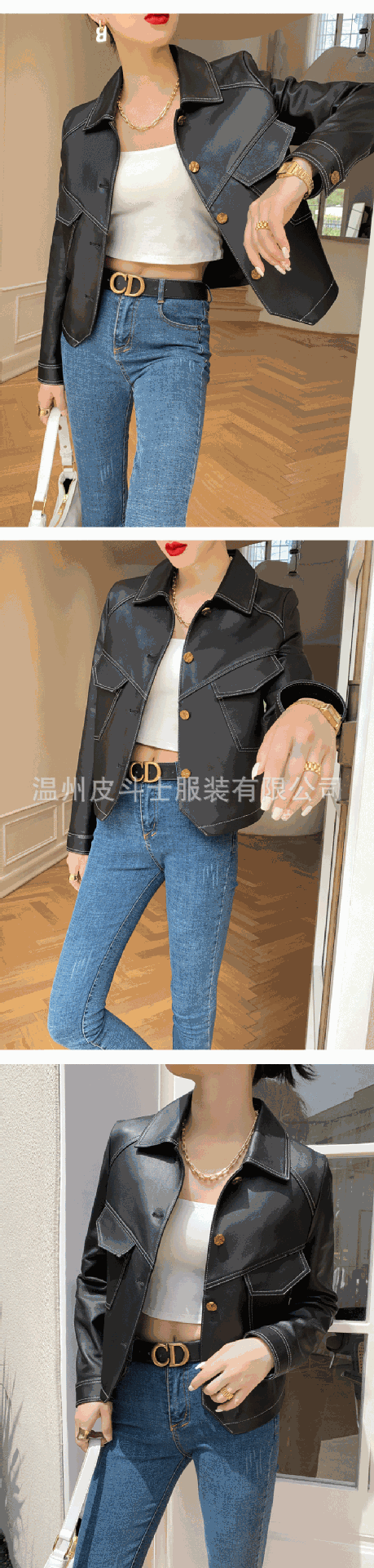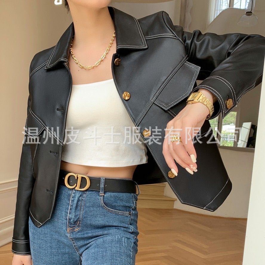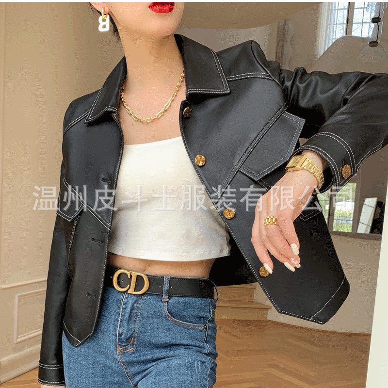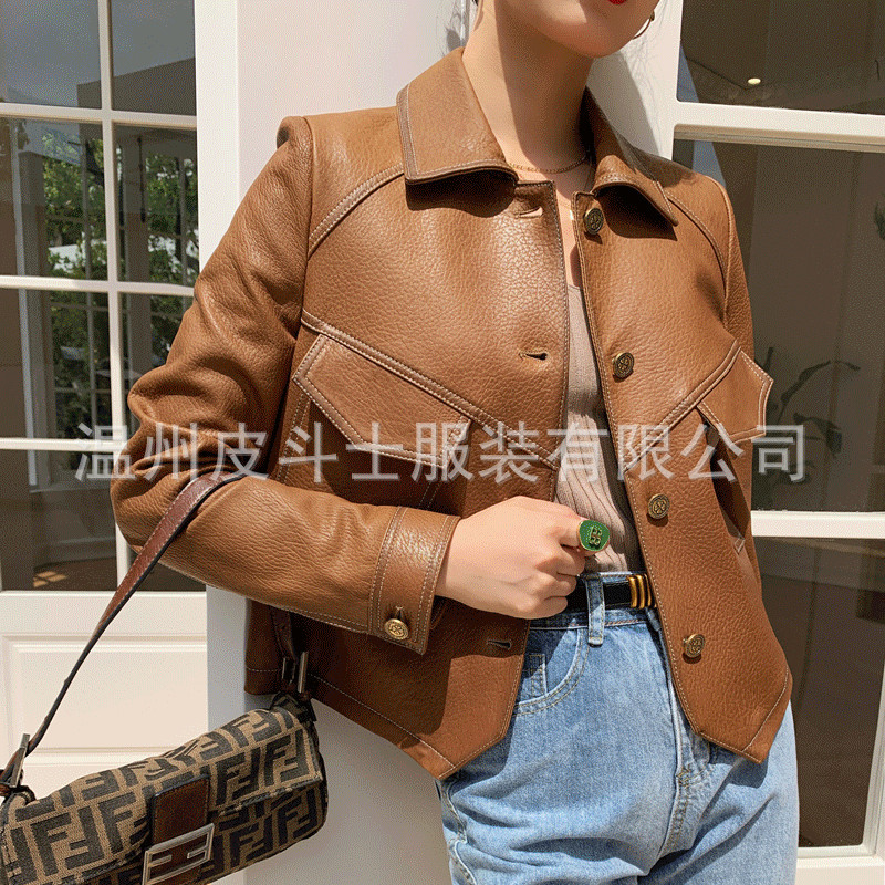 Кожаная одежда Haining короткая женская локомотивная стройная кожа