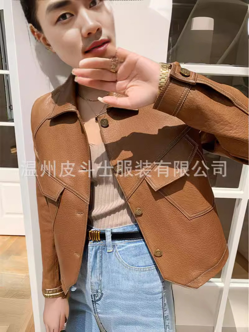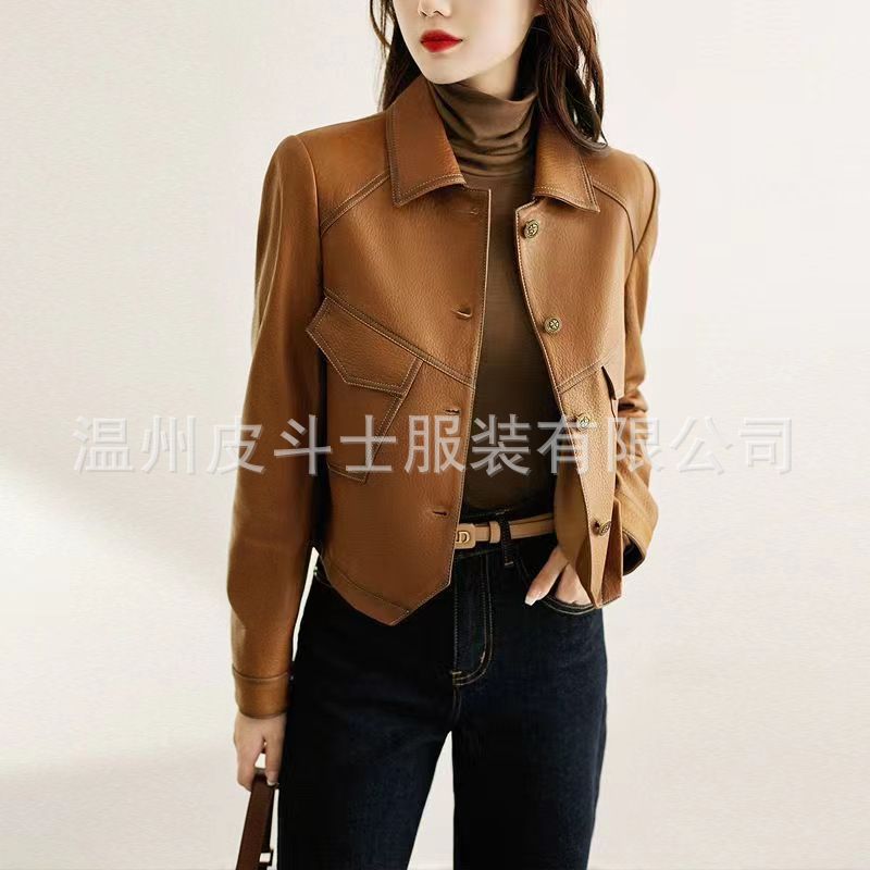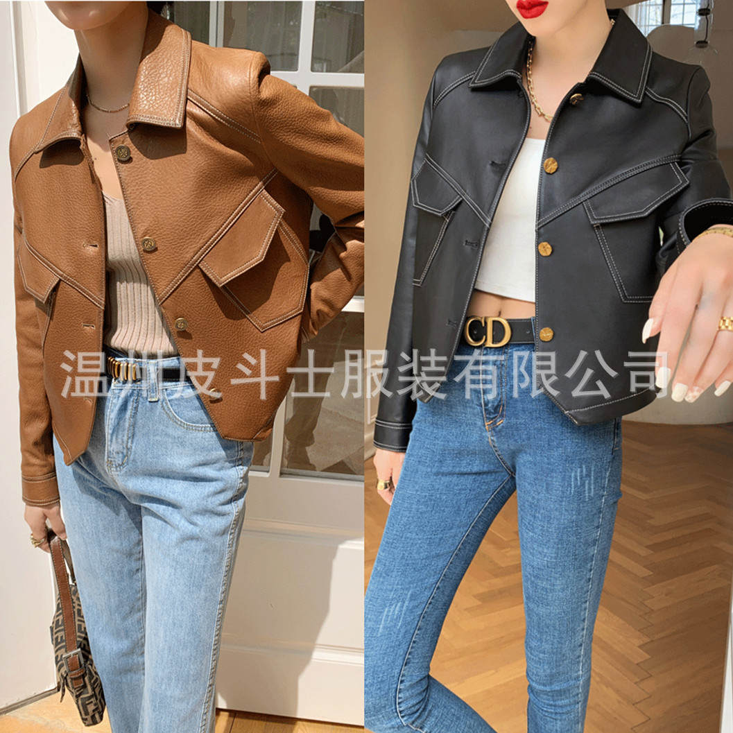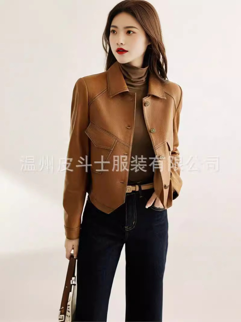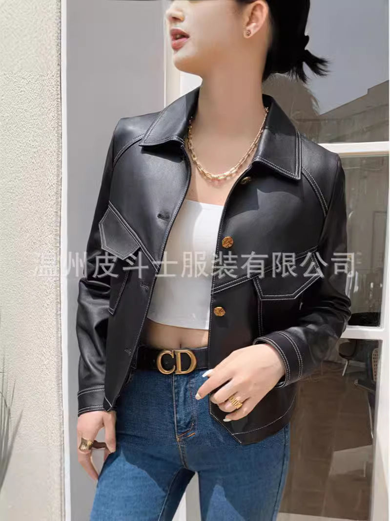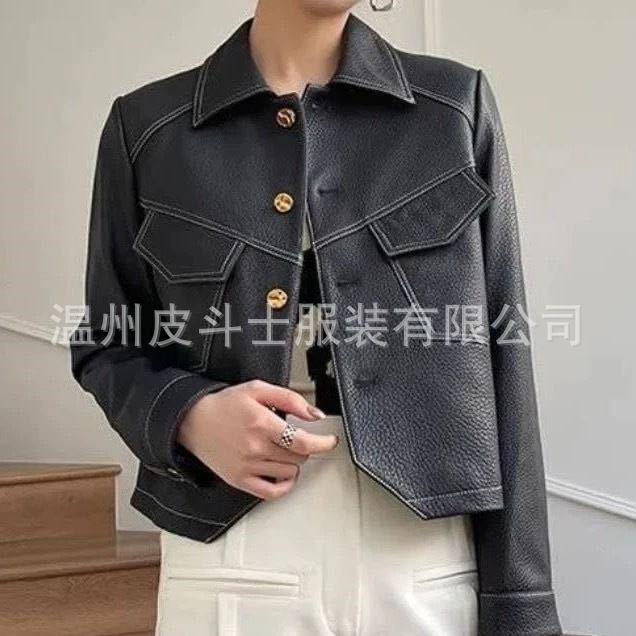 Кожаная одежда Haining короткая женская локомотивная стройная кожа