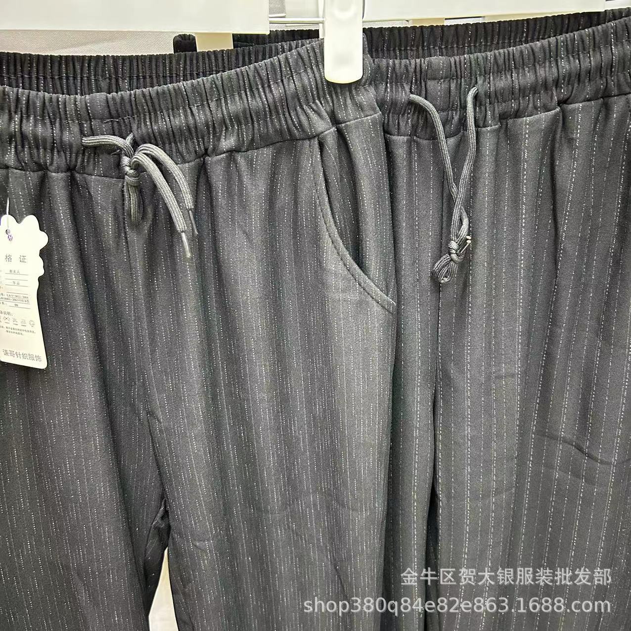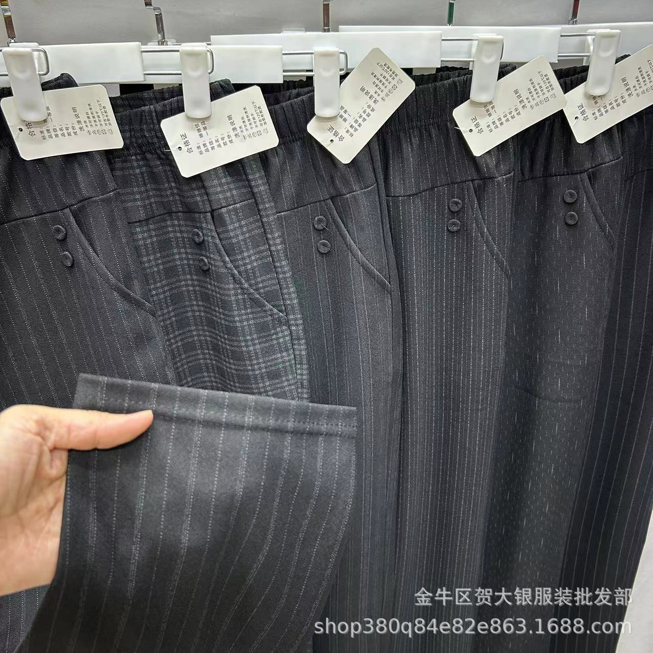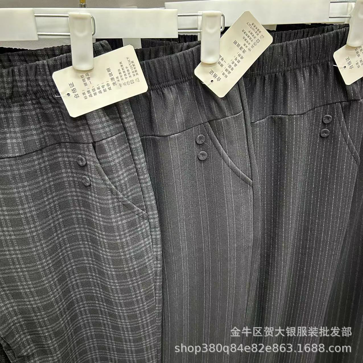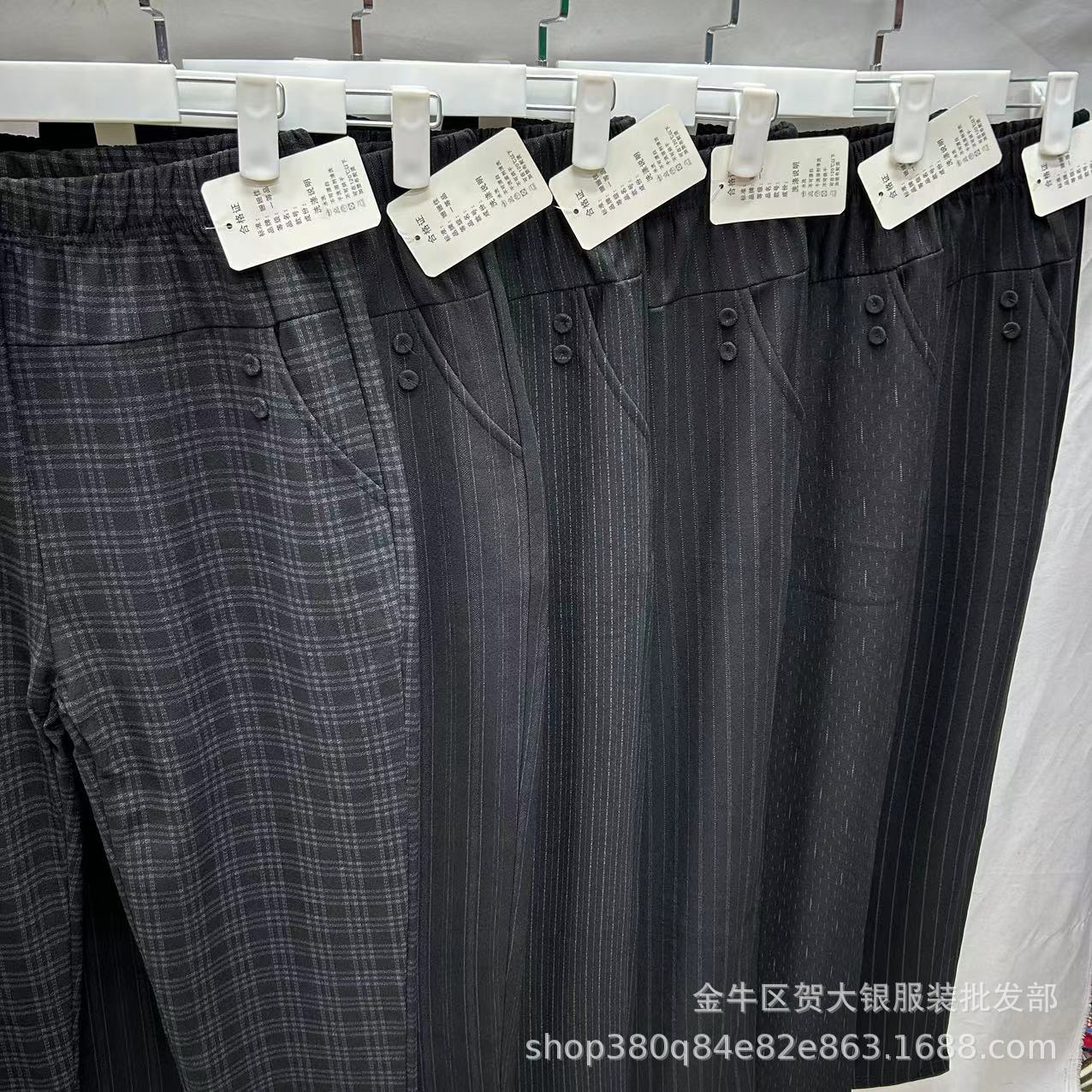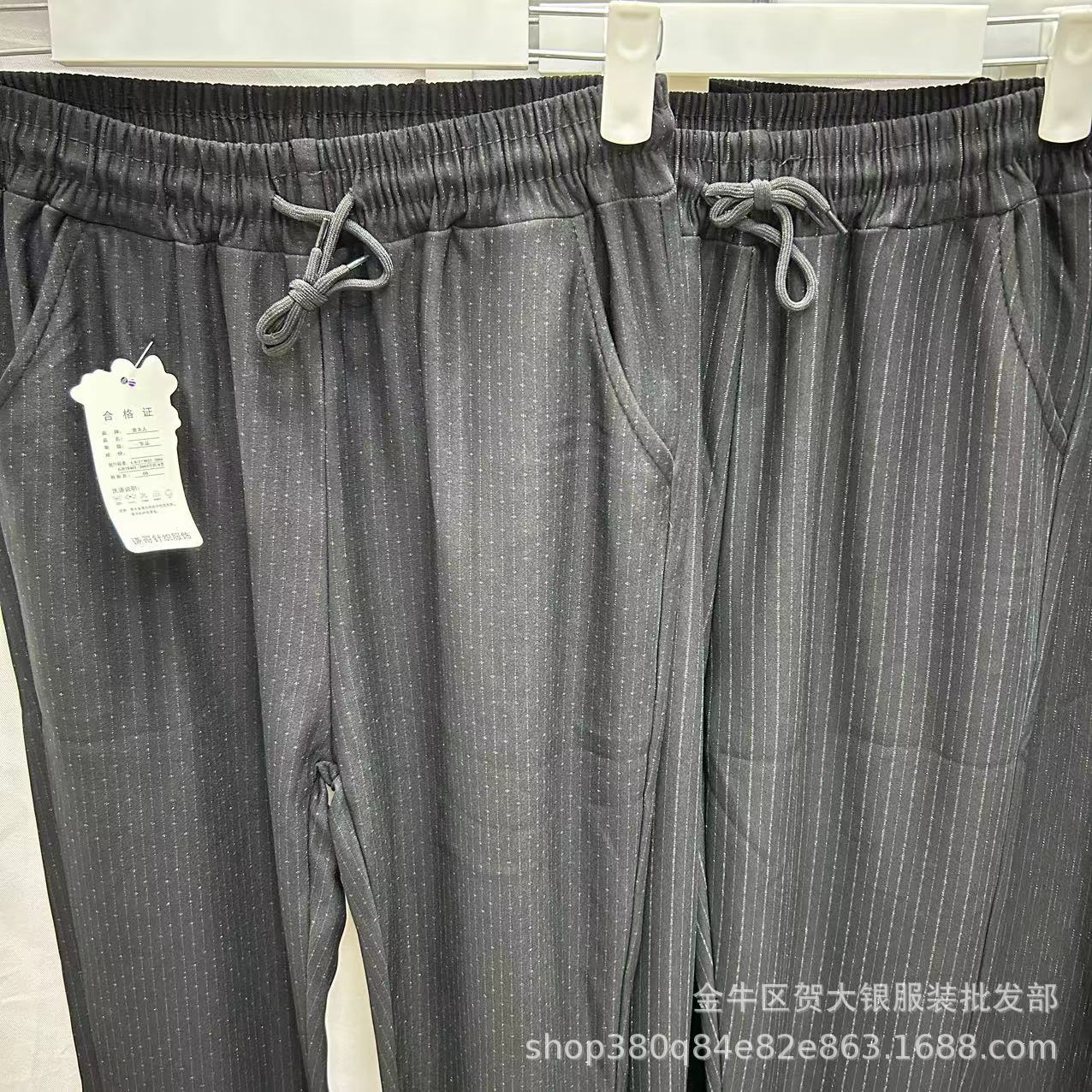 25 весенних, осенних и зимних повседневных брюк с неопрятной веревкой для мам, верхние брюки большого размера с высокой талией, стойки с женской одеждой среднего и пожилого возраста.