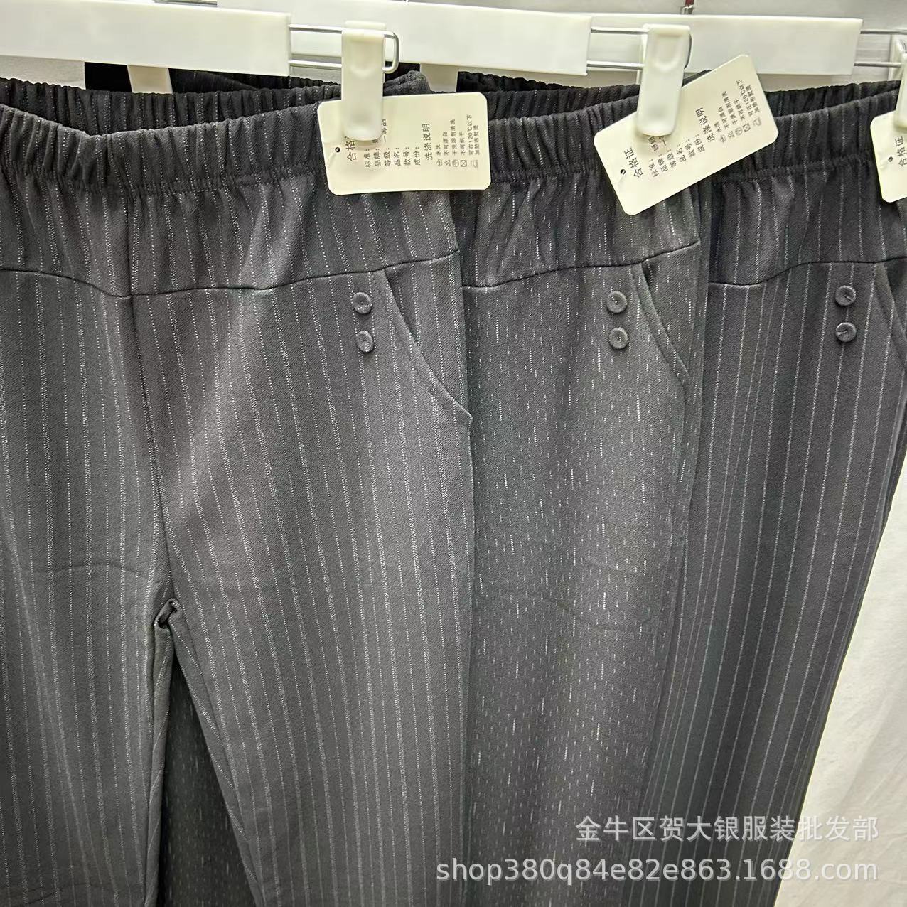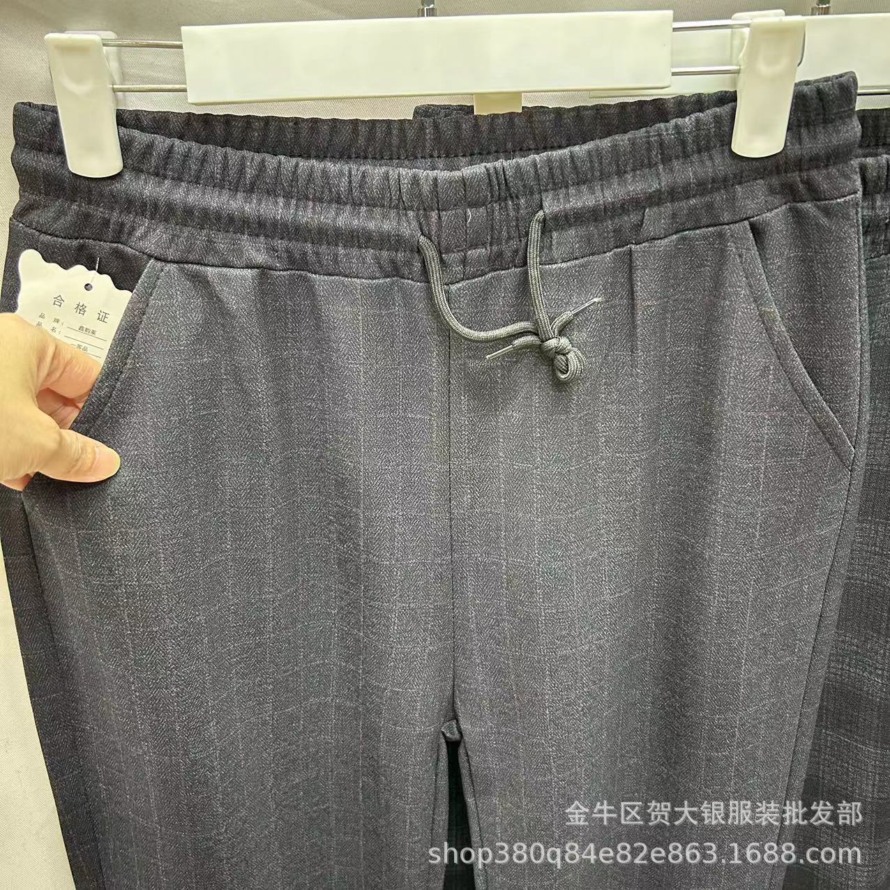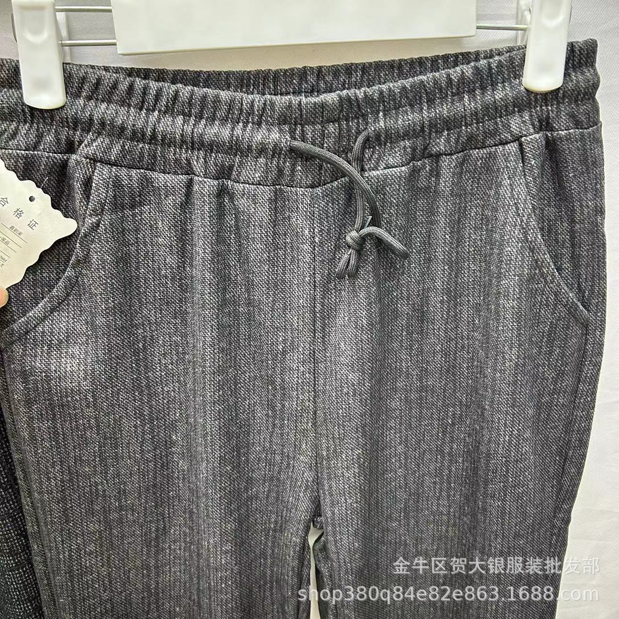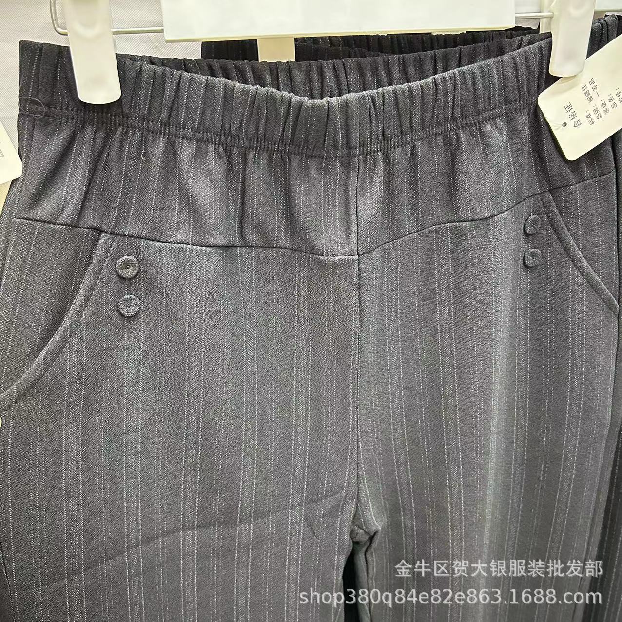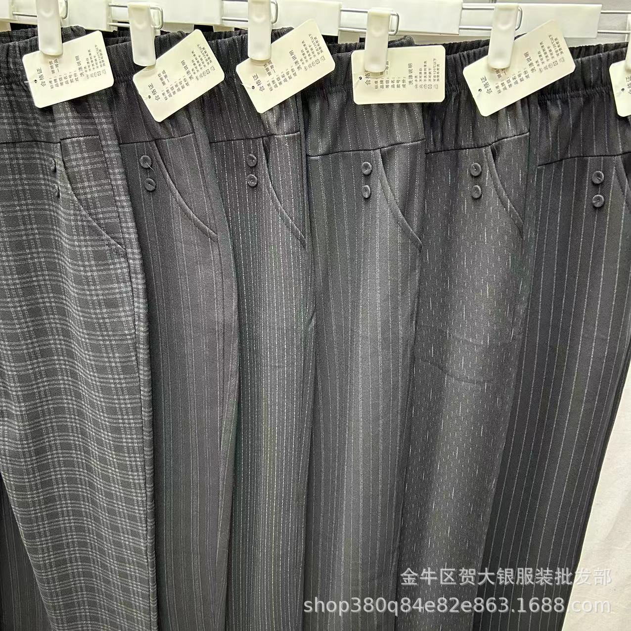 25 весенних, осенних и зимних повседневных брюк с неопрятной веревкой для мам, верхние брюки большого размера с высокой талией, стойки с женской одеждой среднего и пожилого возраста.