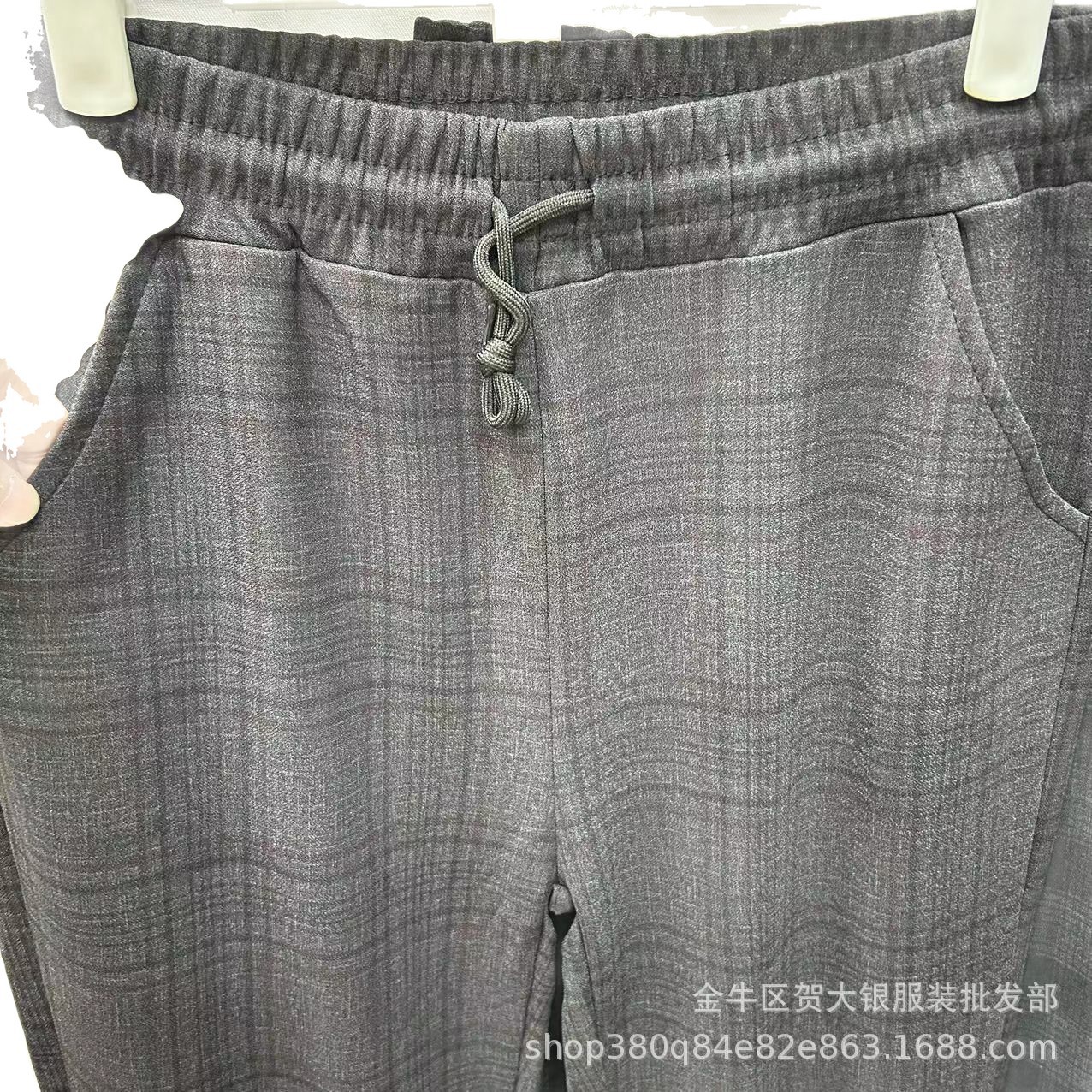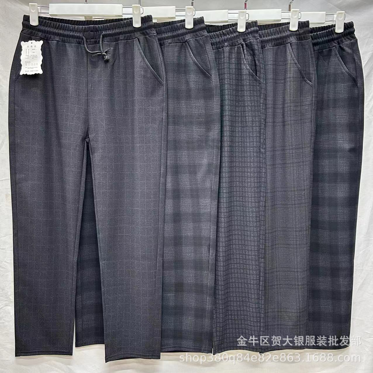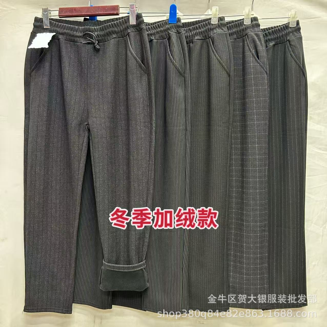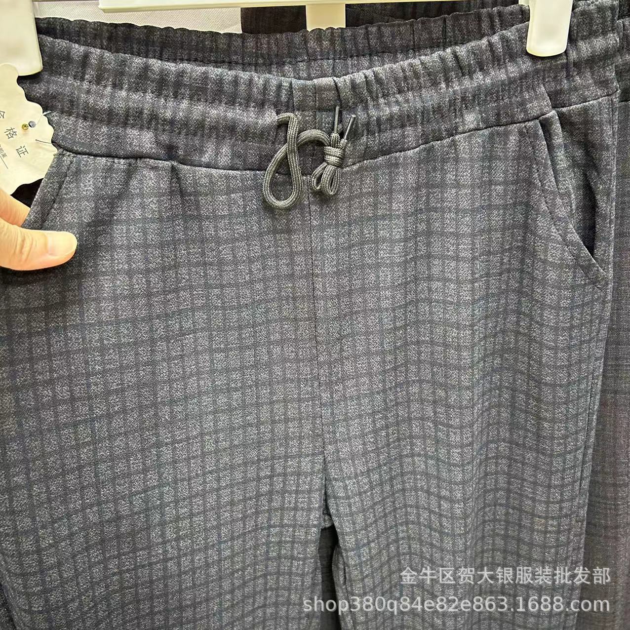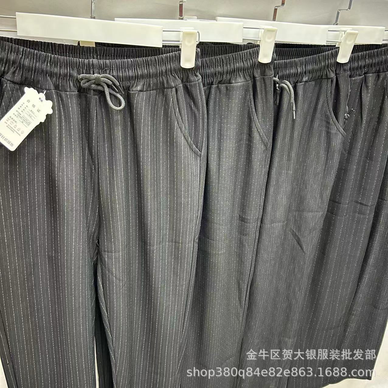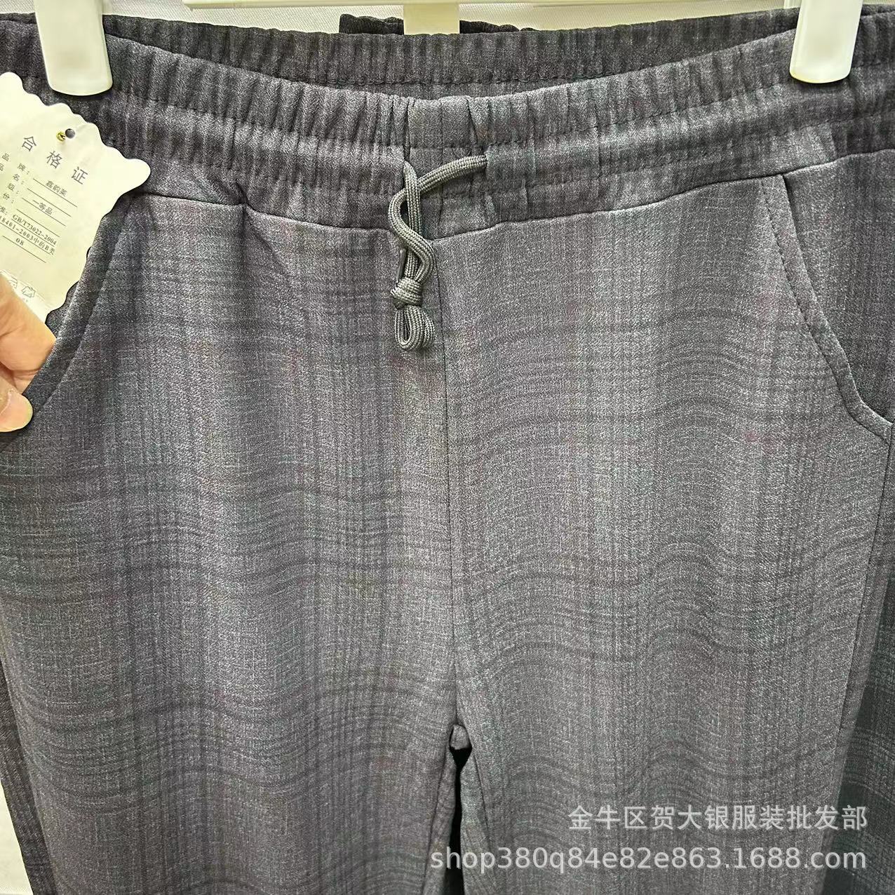 25 весенних, осенних и зимних повседневных брюк с неопрятной веревкой для мам, верхние брюки большого размера с высокой талией, стойки с женской одеждой среднего и пожилого возраста.