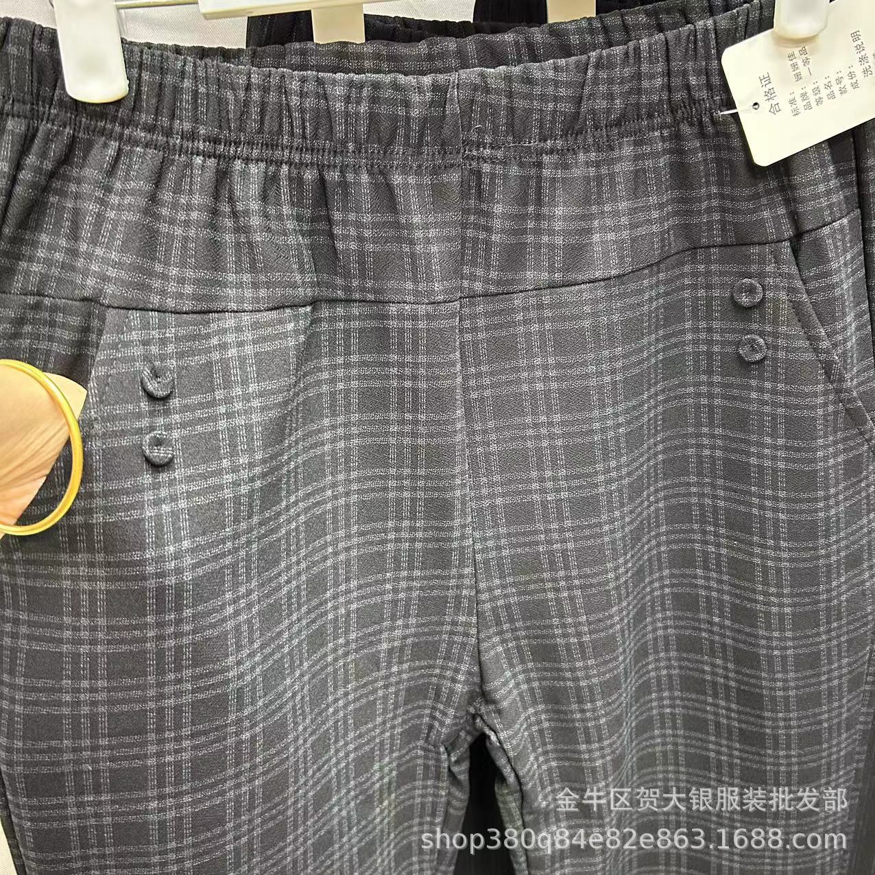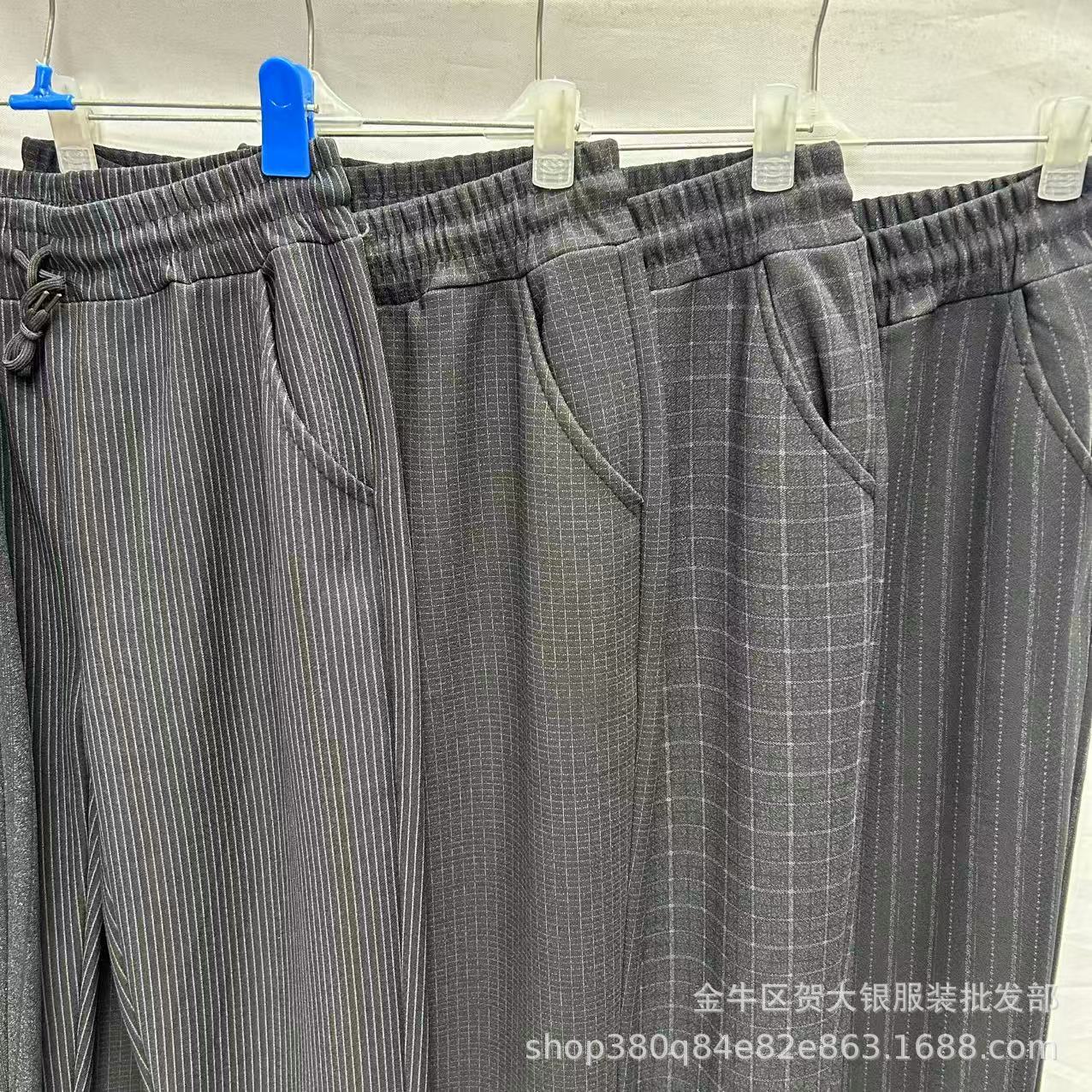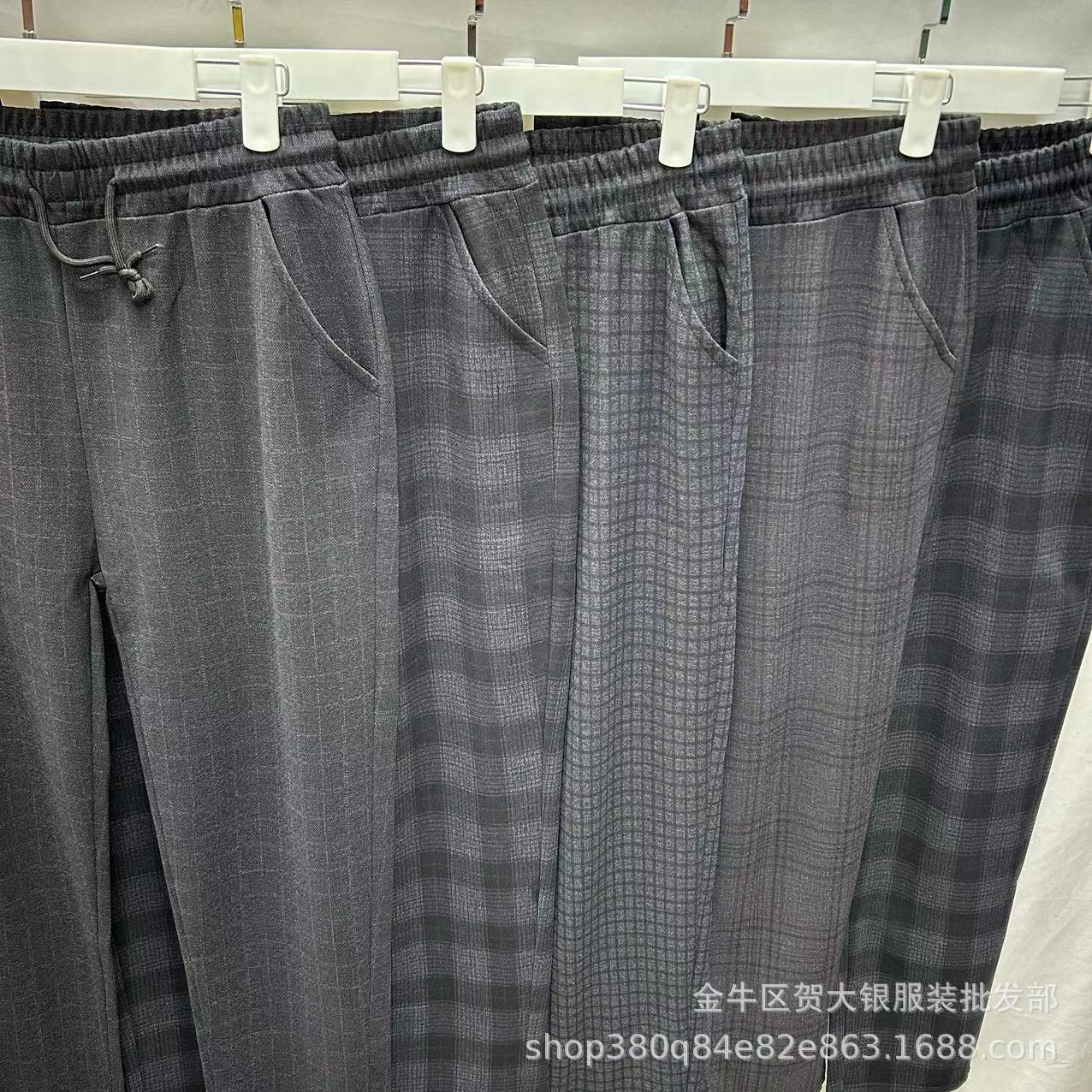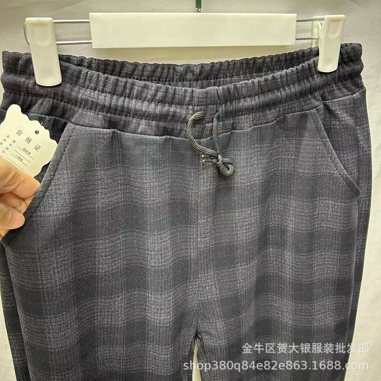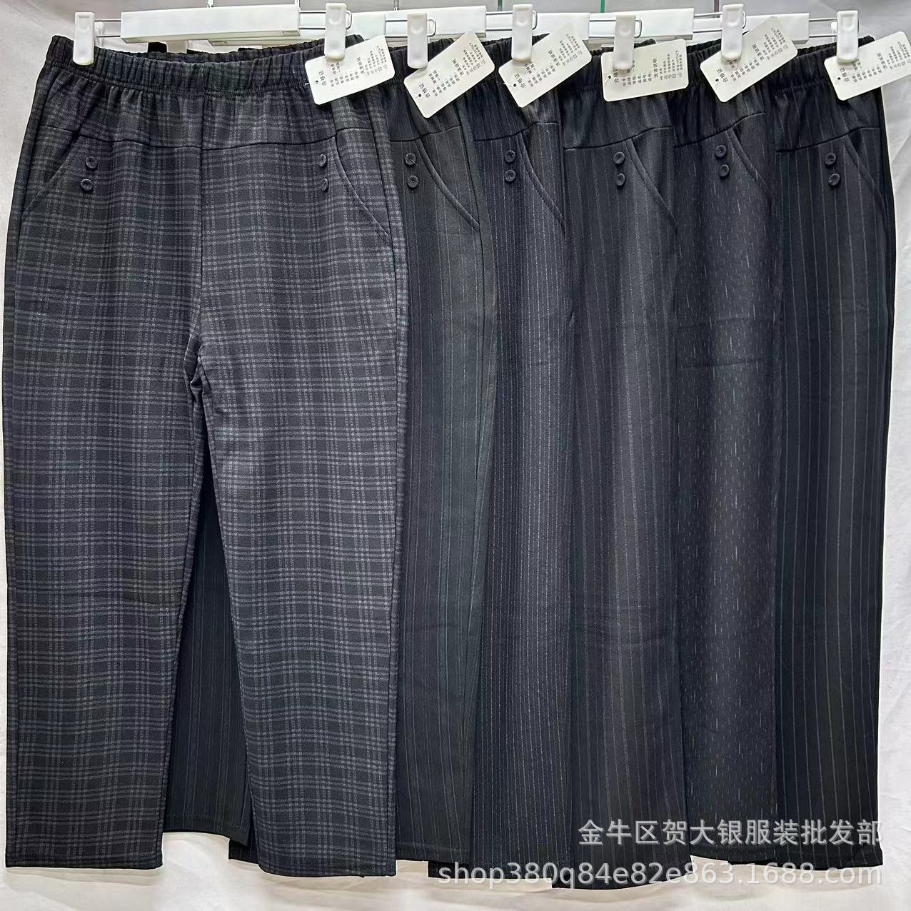 25 весенних, осенних и зимних повседневных брюк с неопрятной веревкой для мам, верхние брюки большого размера с высокой талией, стойки с женской одеждой среднего и пожилого возраста.